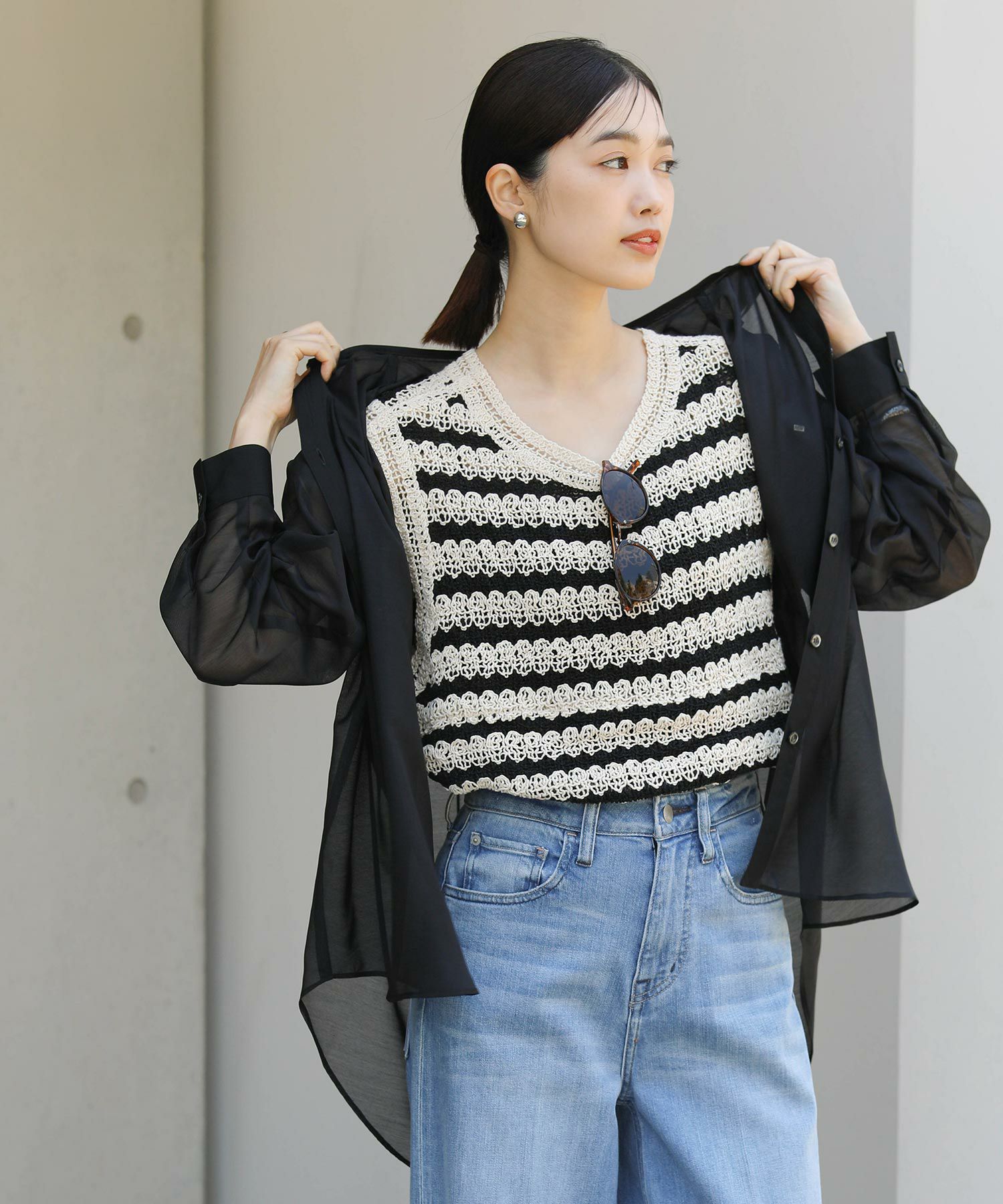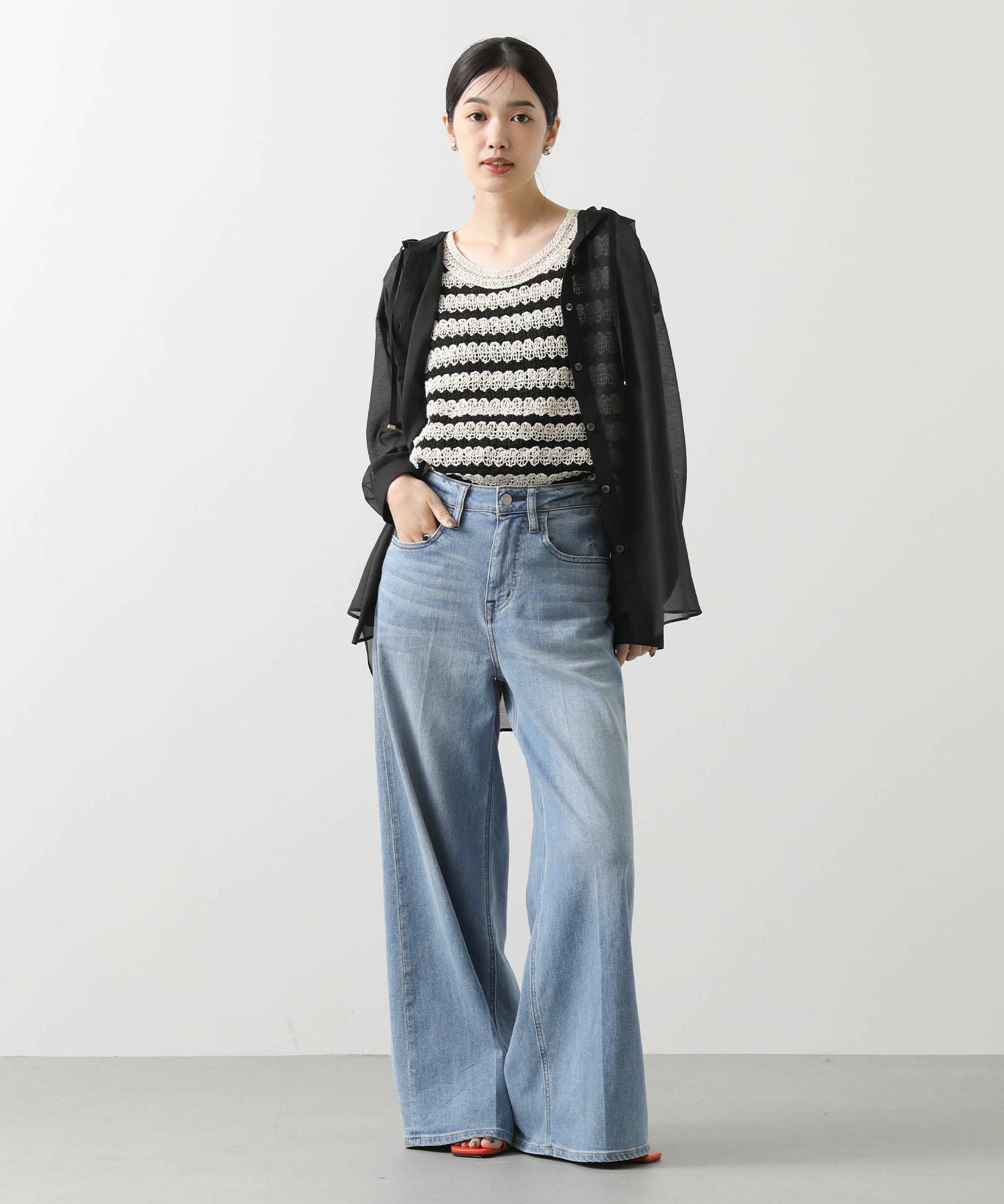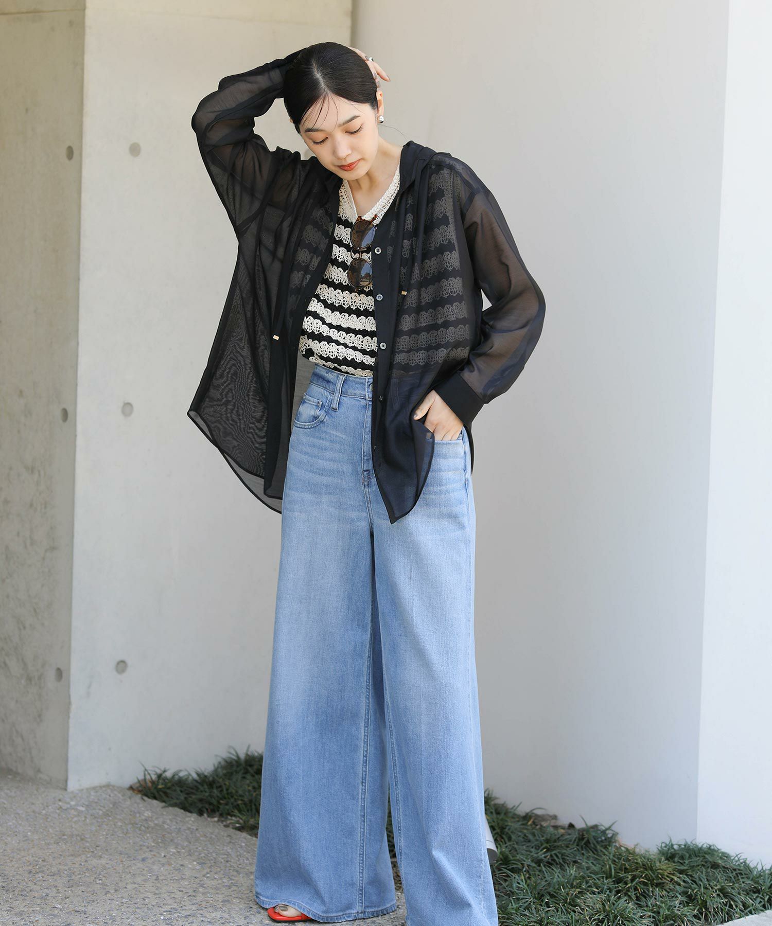 ※着用画像は撮影状況、光の当たり具合で色みが違って見える場合がございます。実際の色みについては、画像一覧の最後に掲載している詳細画像をご参照ください。
