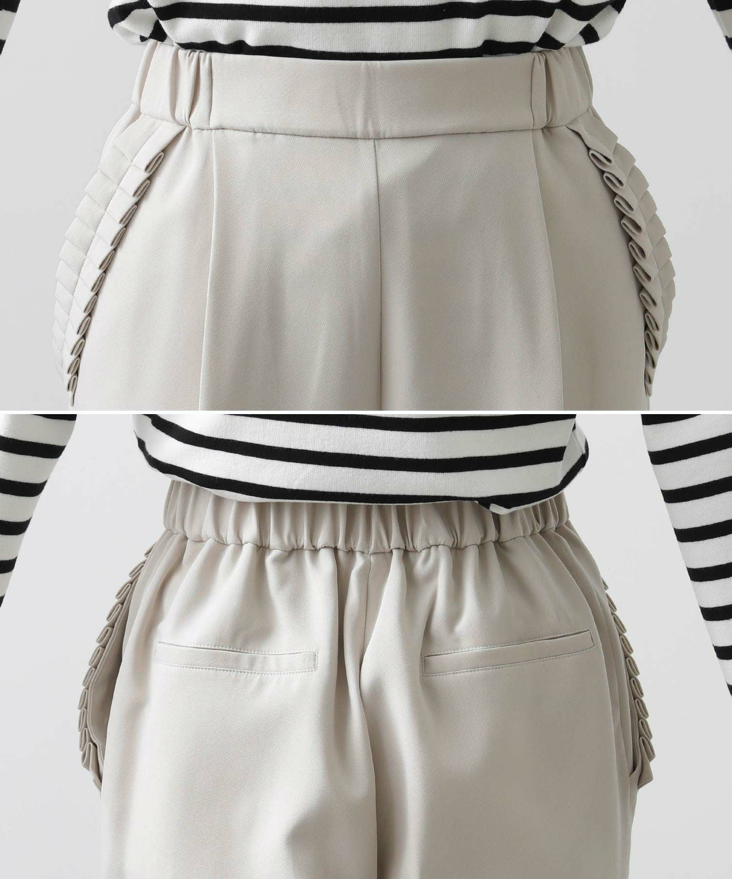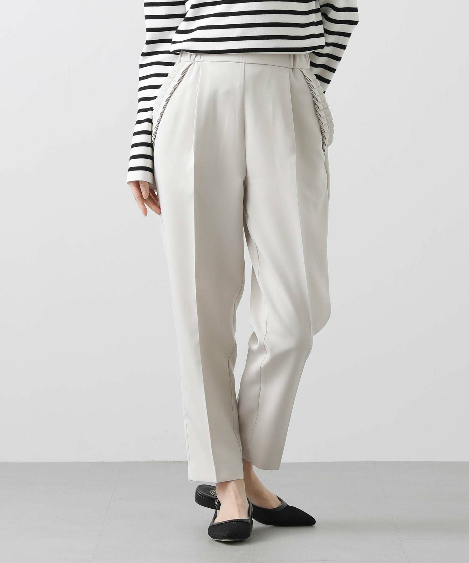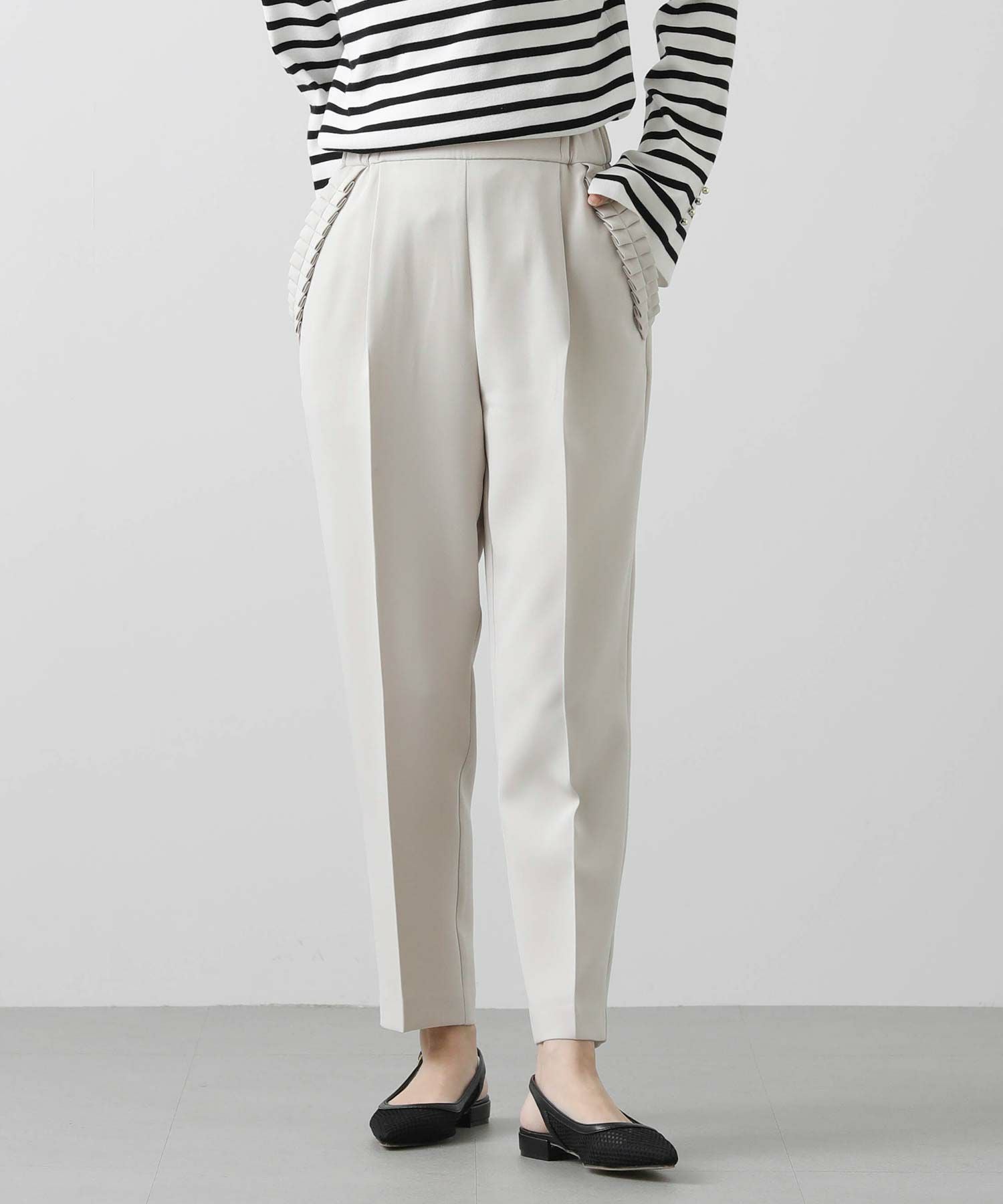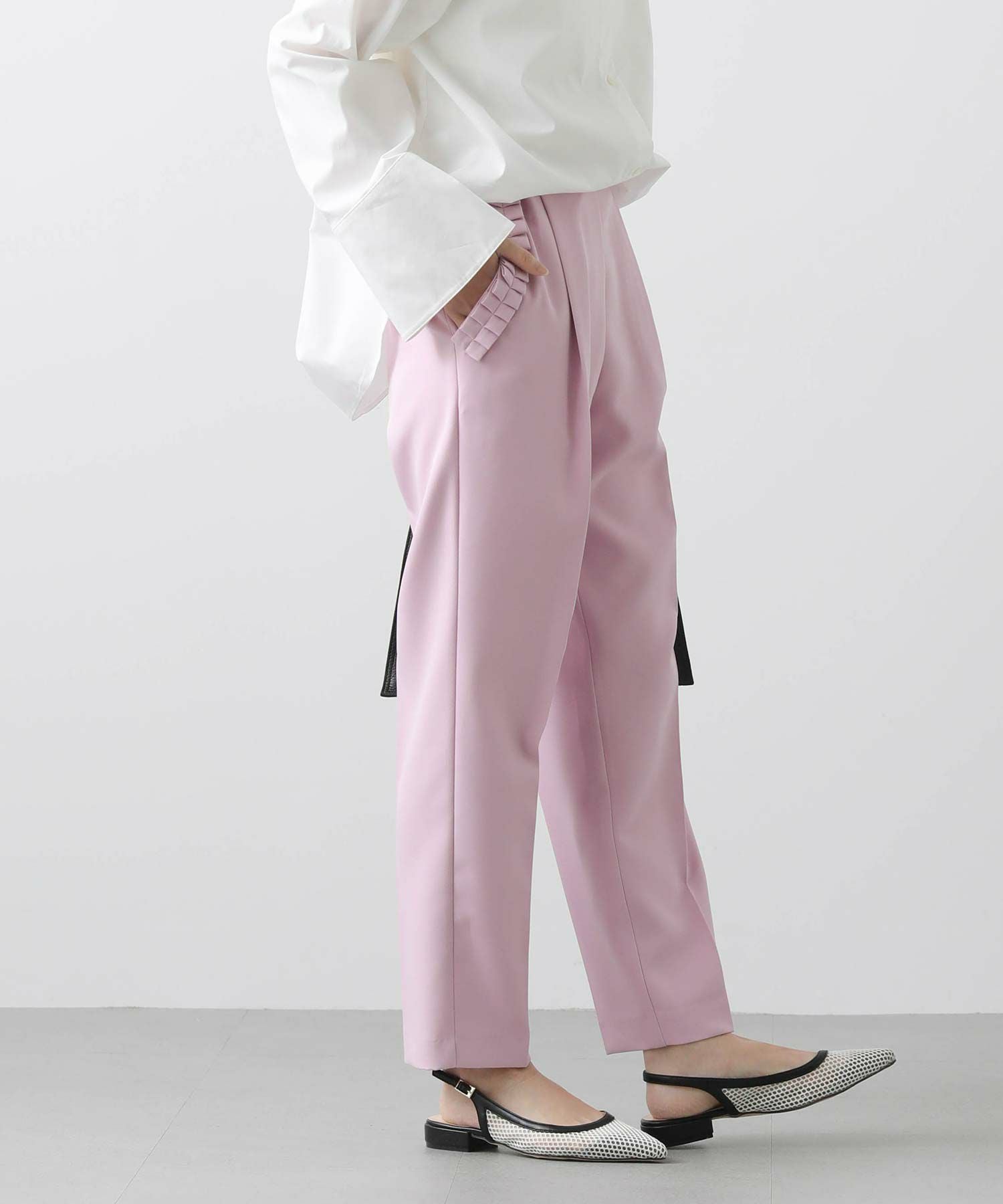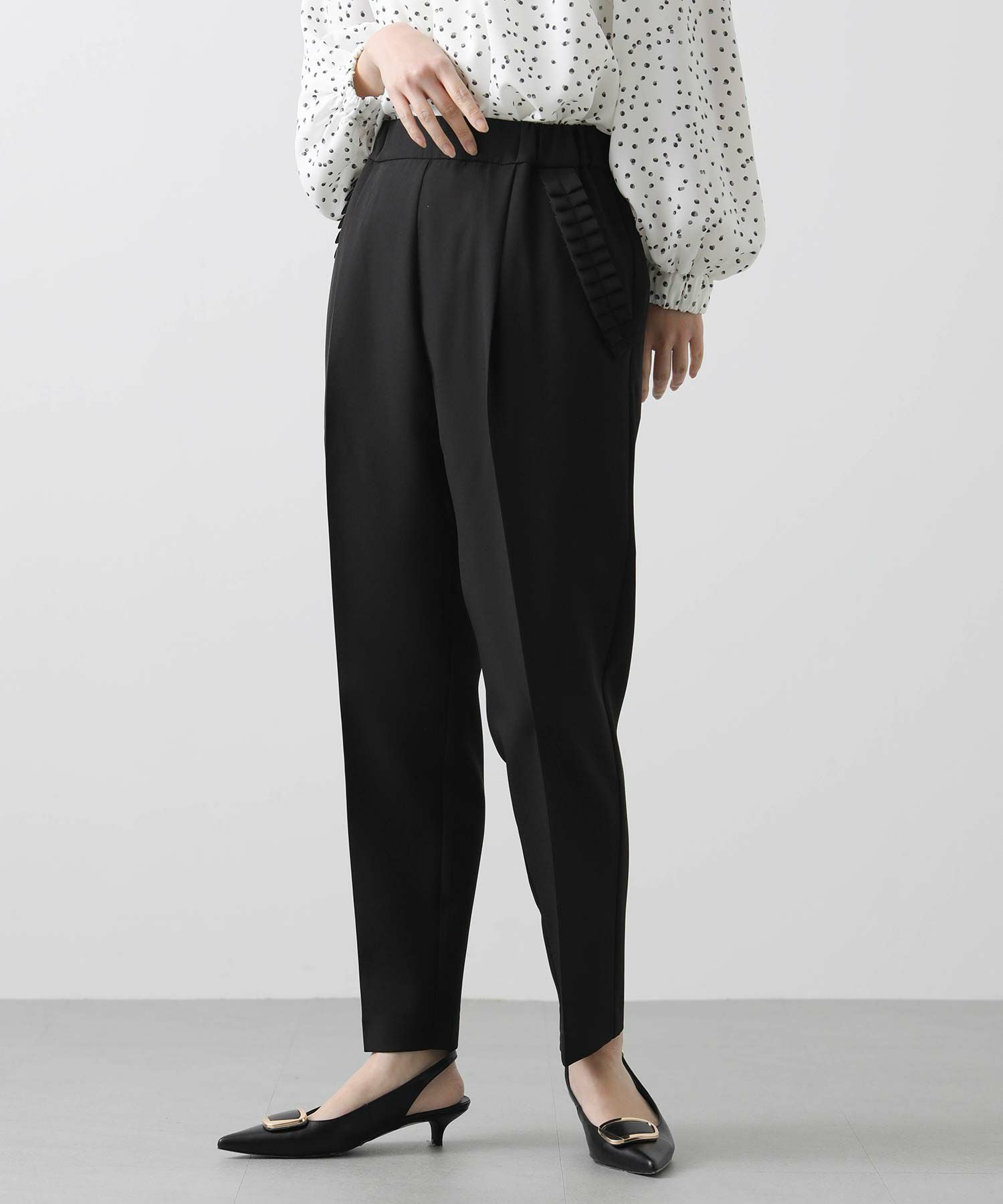 【minkchair(ミンクチェアー)】から、ポケット口のタックフリルが可愛いテーパードパンツをセレクト。