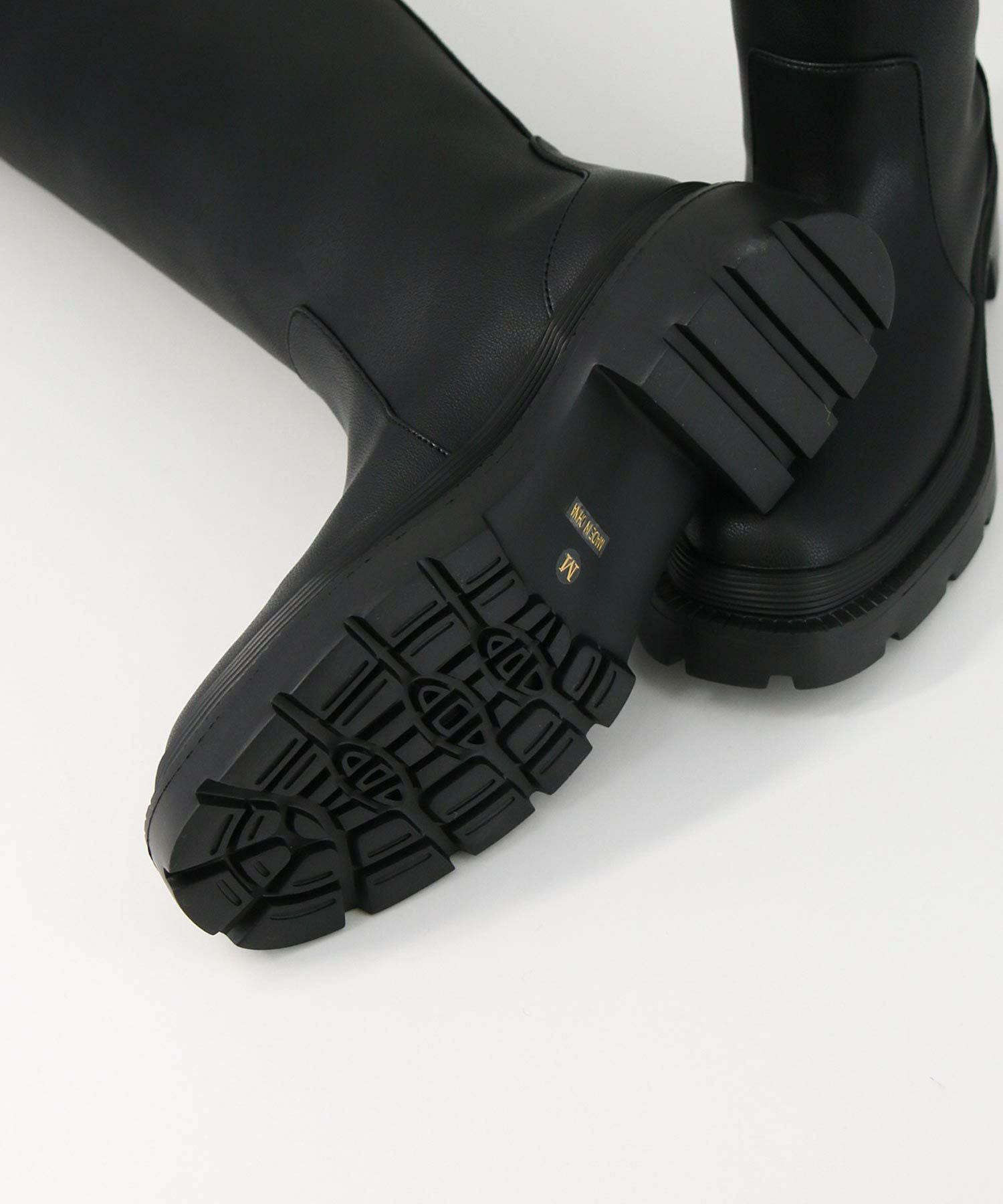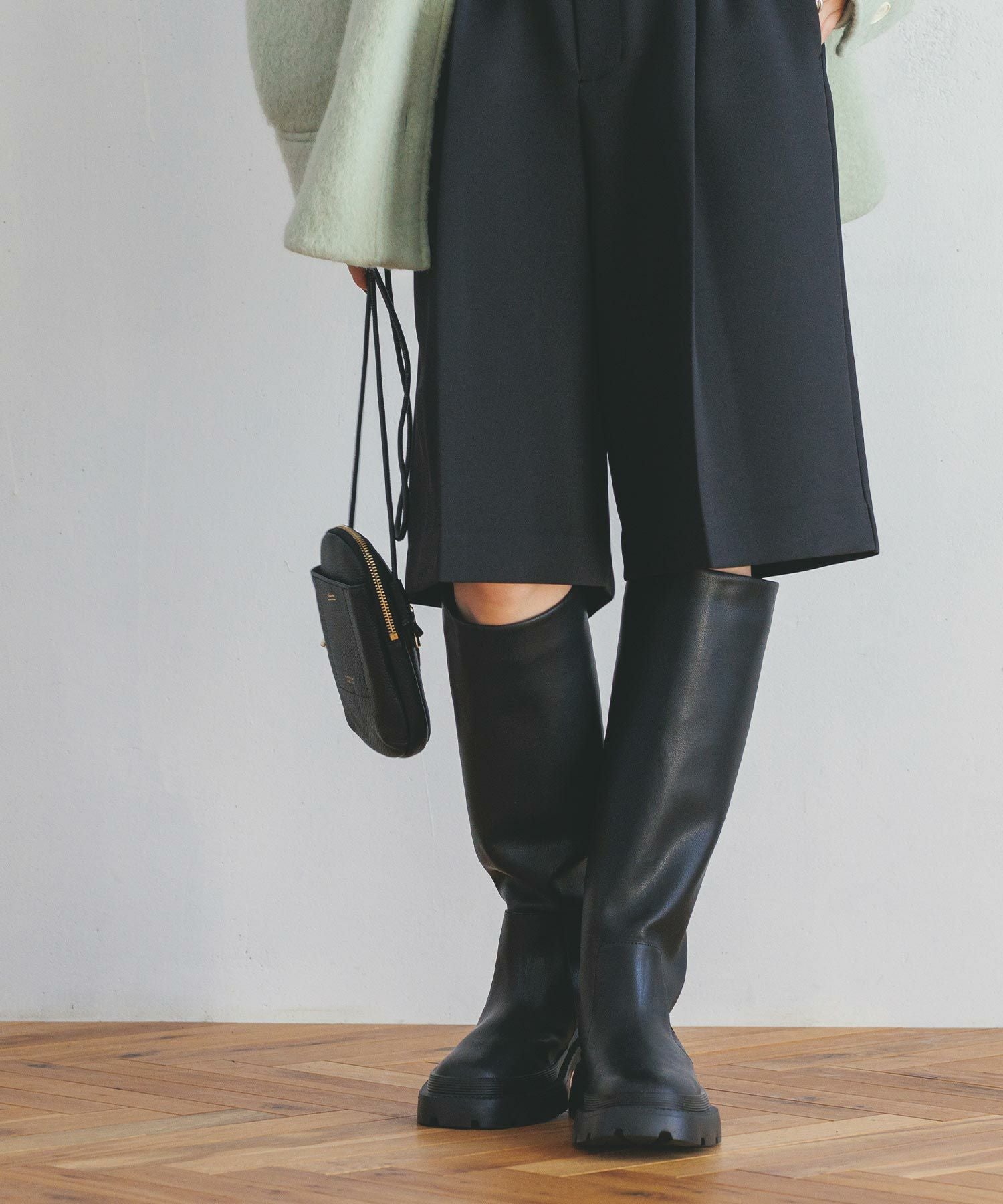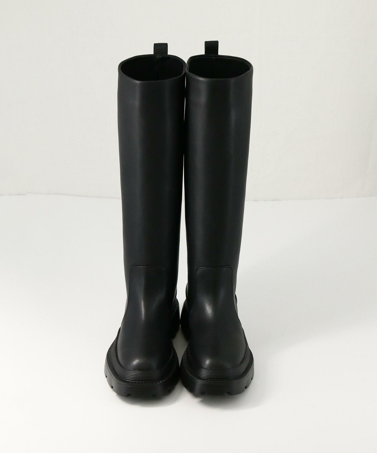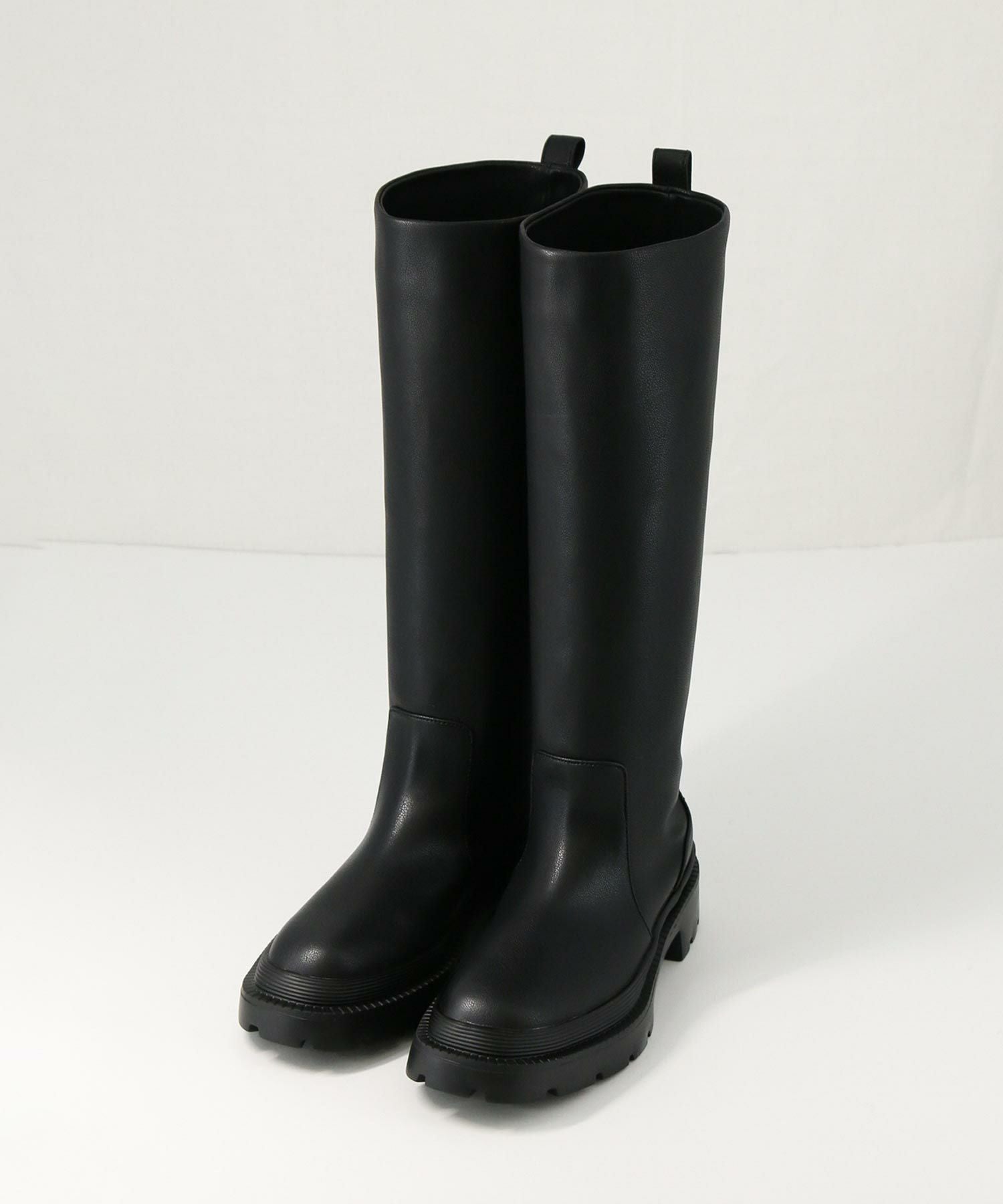 アトリエブルージュよりトレンド感のあるタンクソールのロングブーツをセレクト。