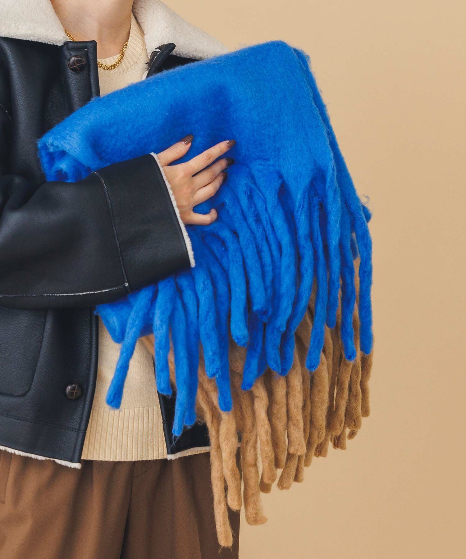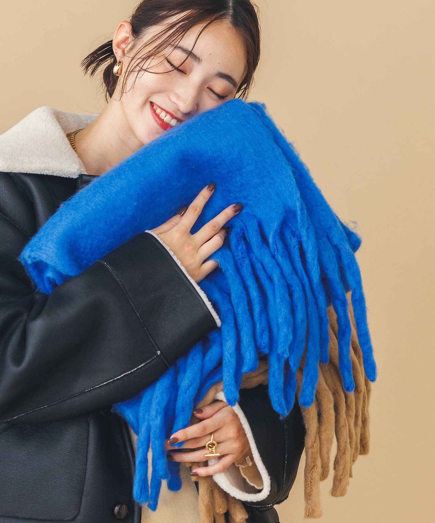 ふわっとした質感で巻くだけで程よいボリューム感が冬のスタイリングに映えます。肌ざわりの良さも魅力です。