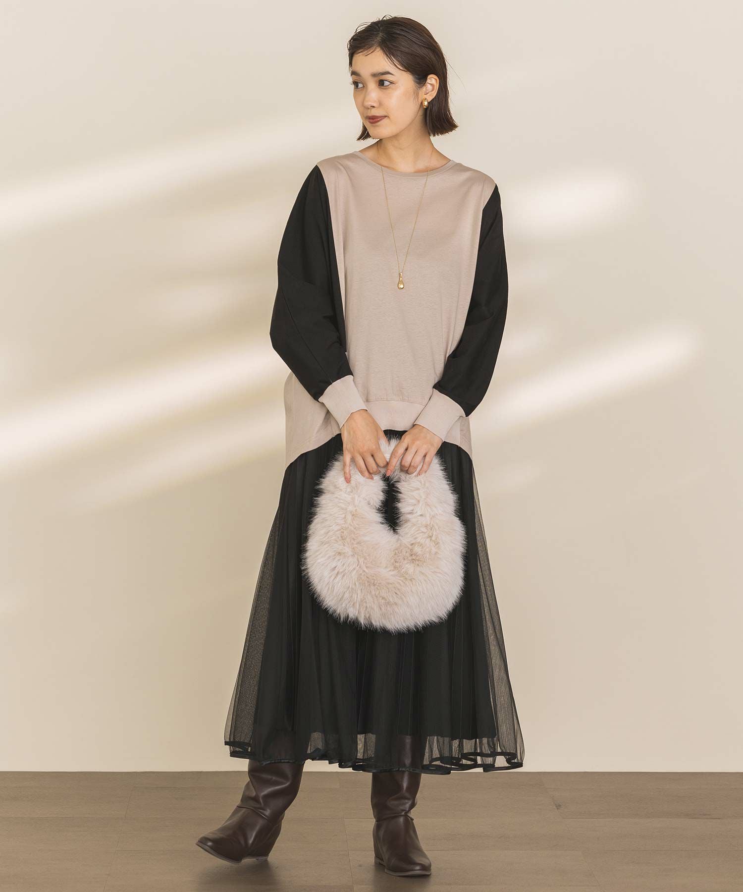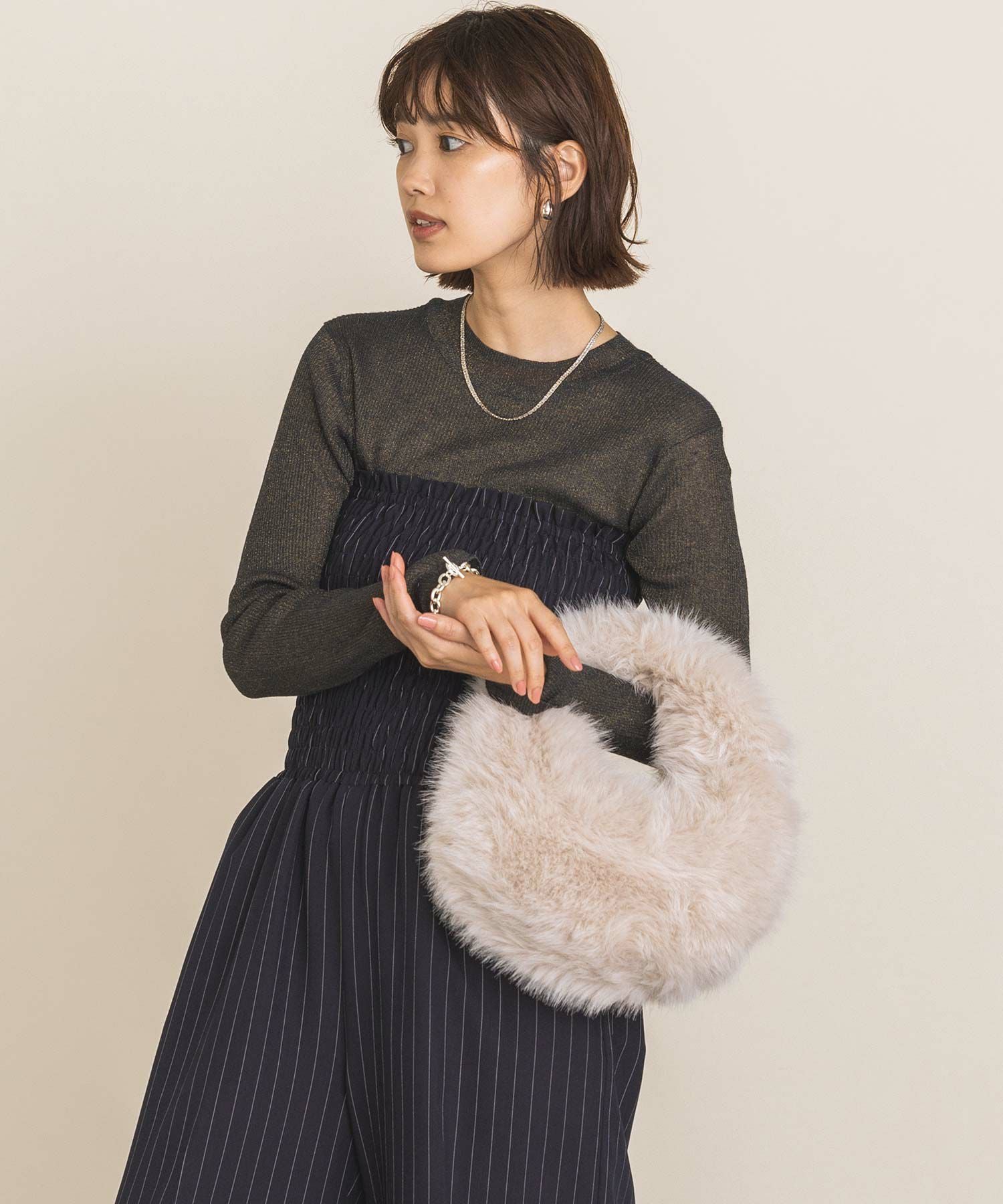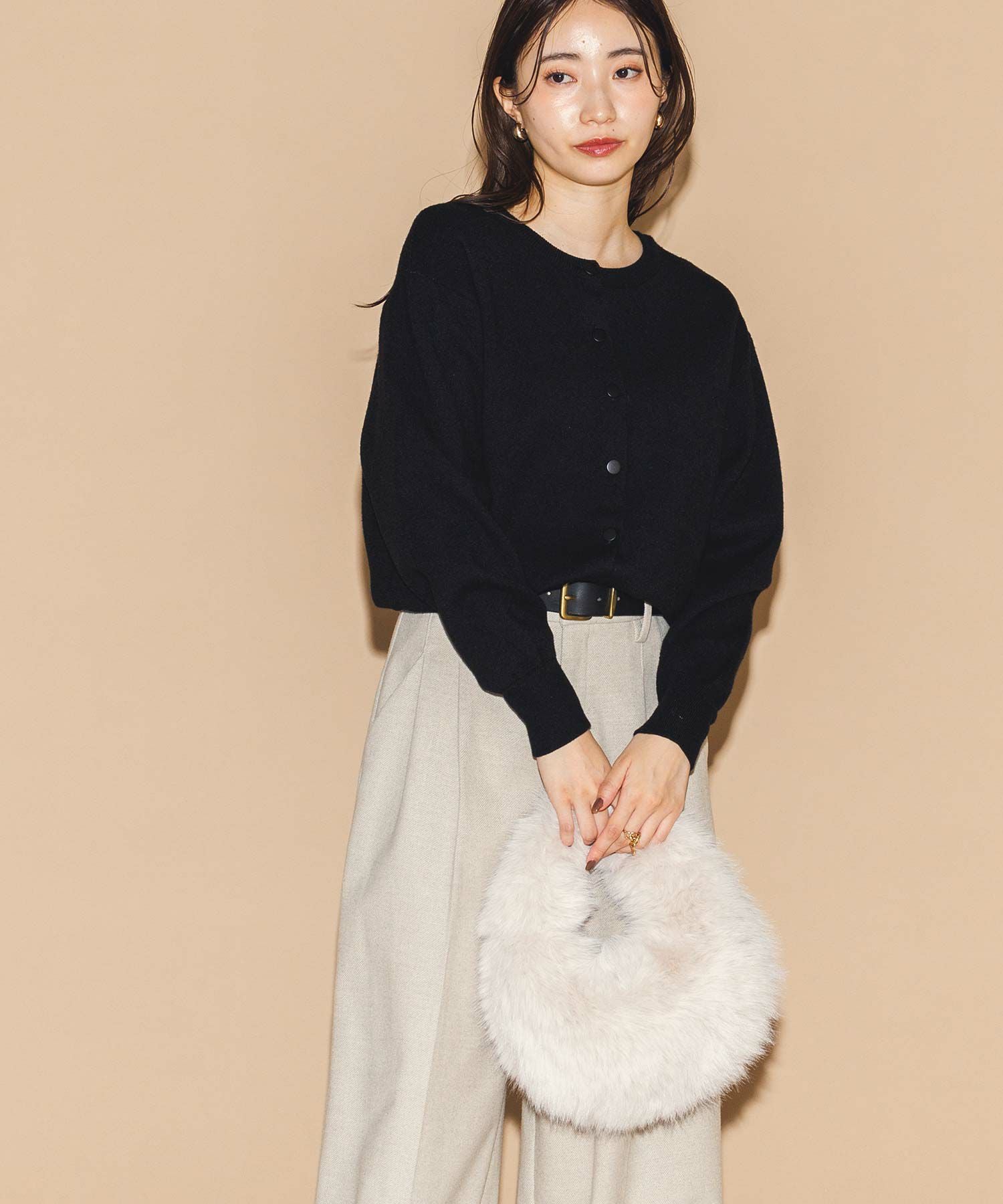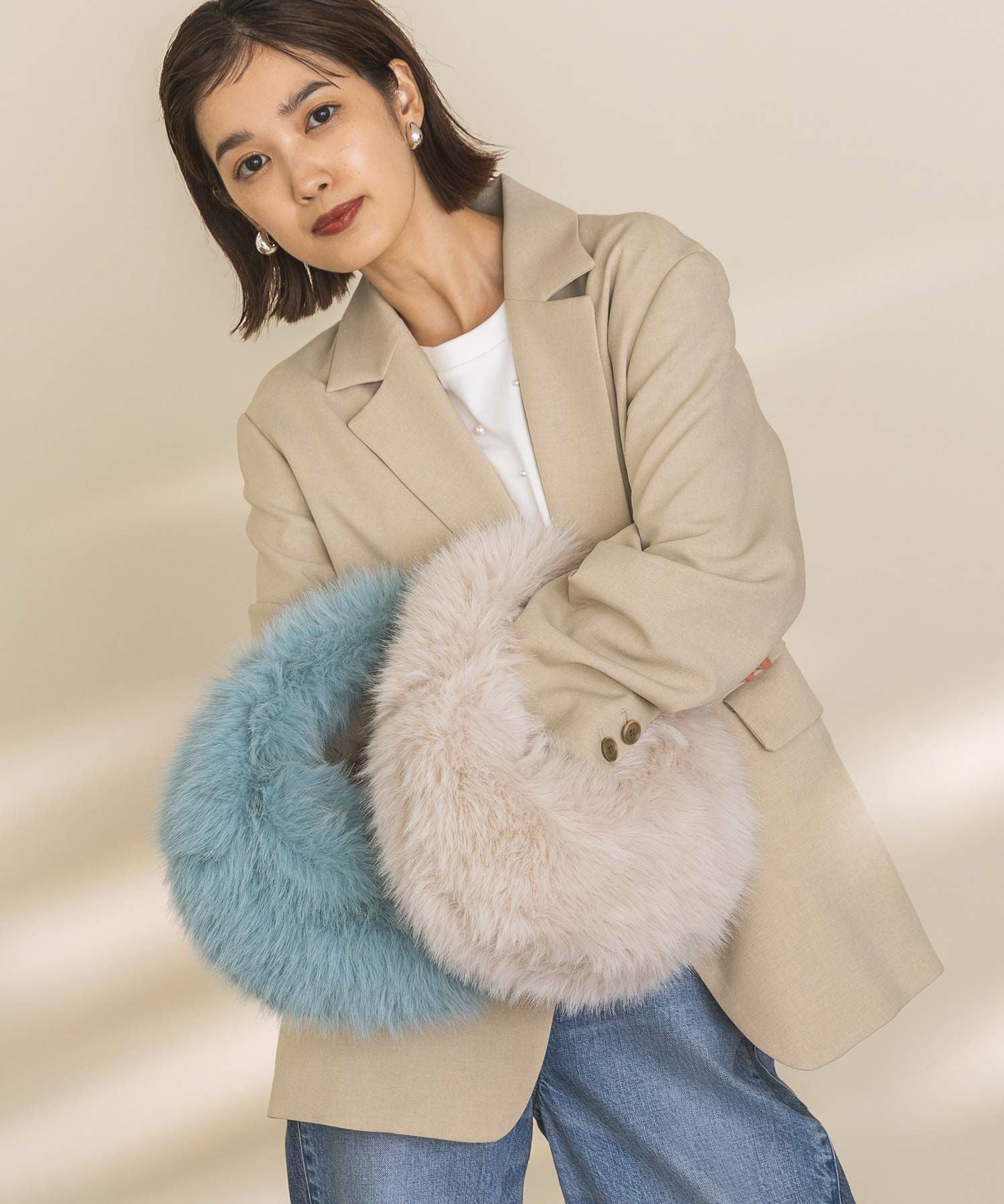 思わず触りたくなる肌ざわりで、持つだけで気分も上がります。冬のスタイリングのポイントに取り入れていただきたいアイテムです。