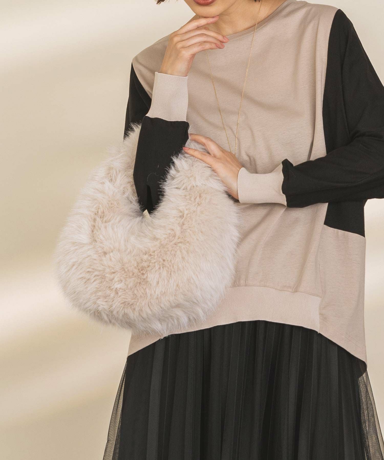 ふわふわのファーが可愛いトレンドのムーン型バッグ。