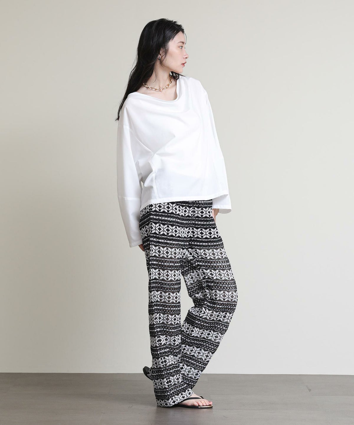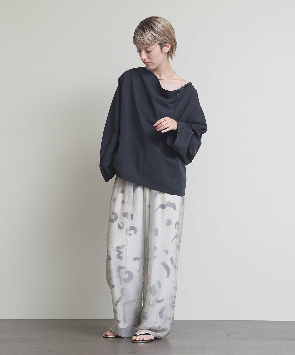 割繊ギャザーイージーワイドパンツ