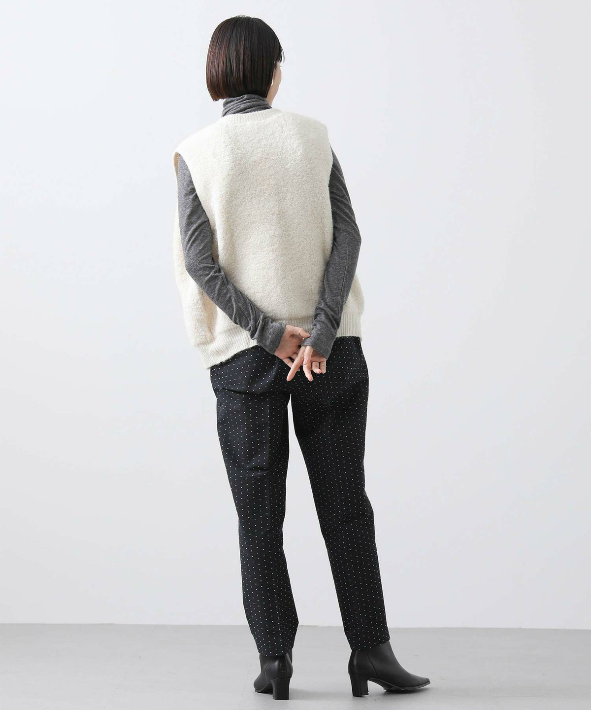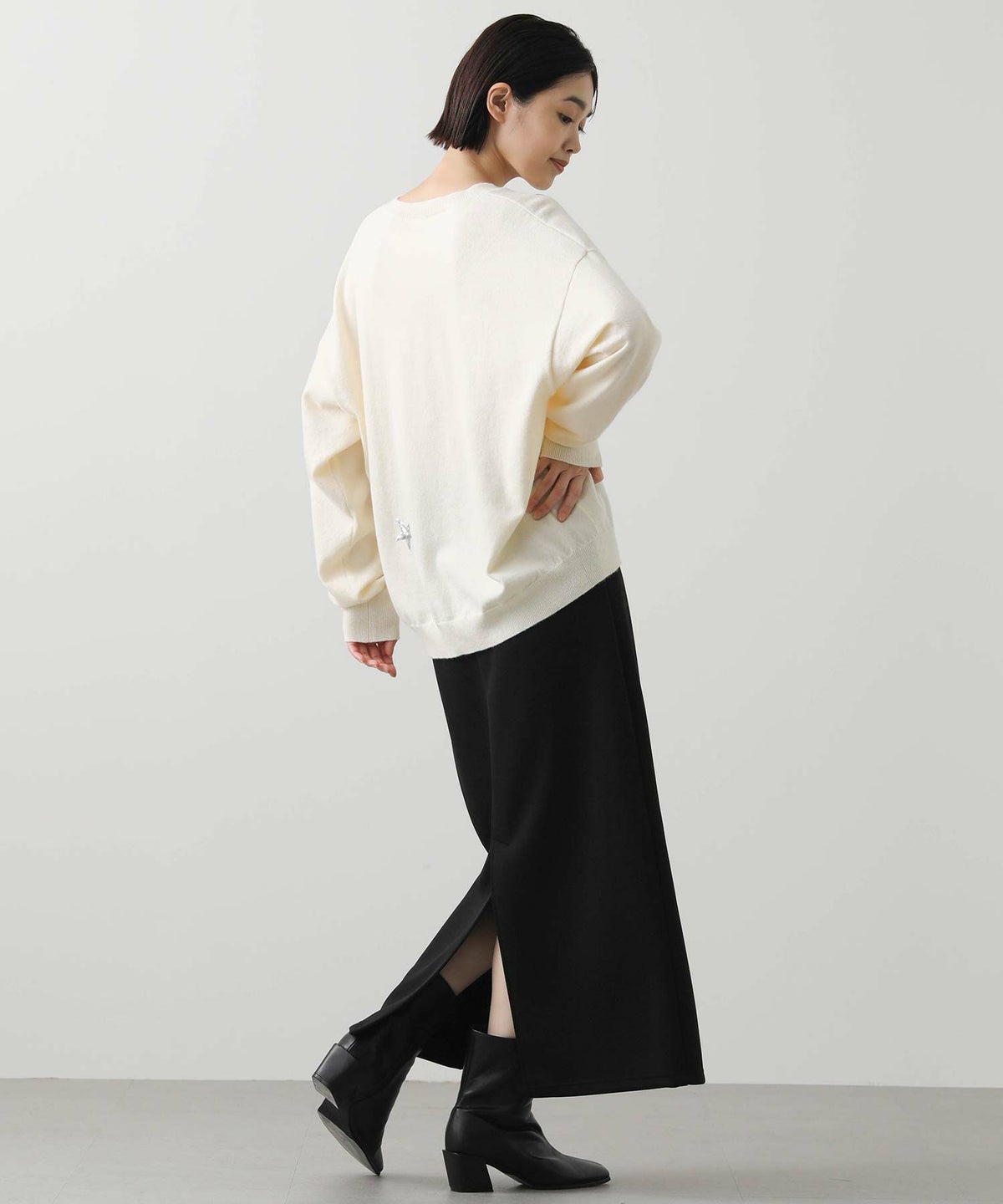 カシミア混背中開きニット
