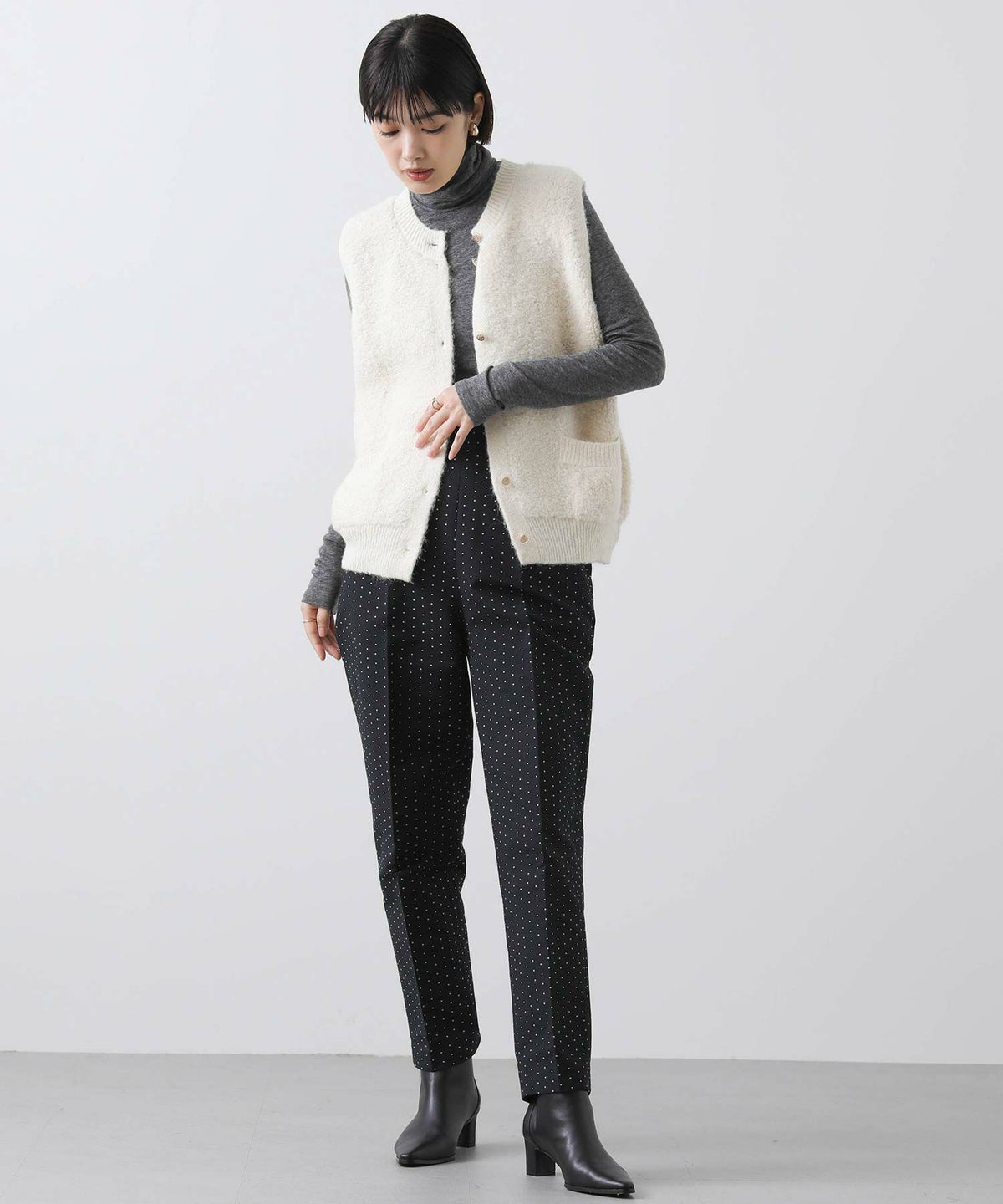 LUドットジャガードテーパードパンツ
