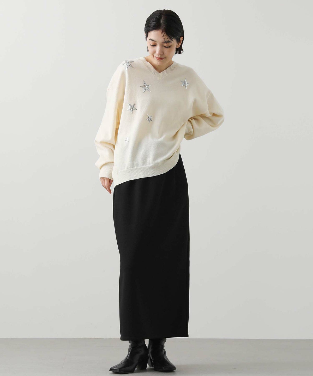 AcWスラブ深Vネックニット