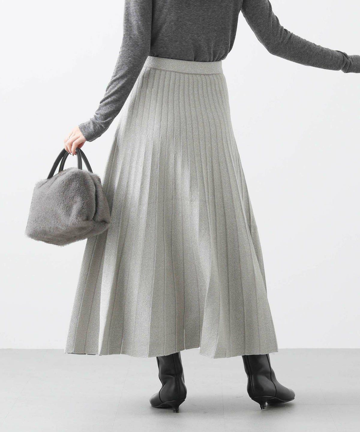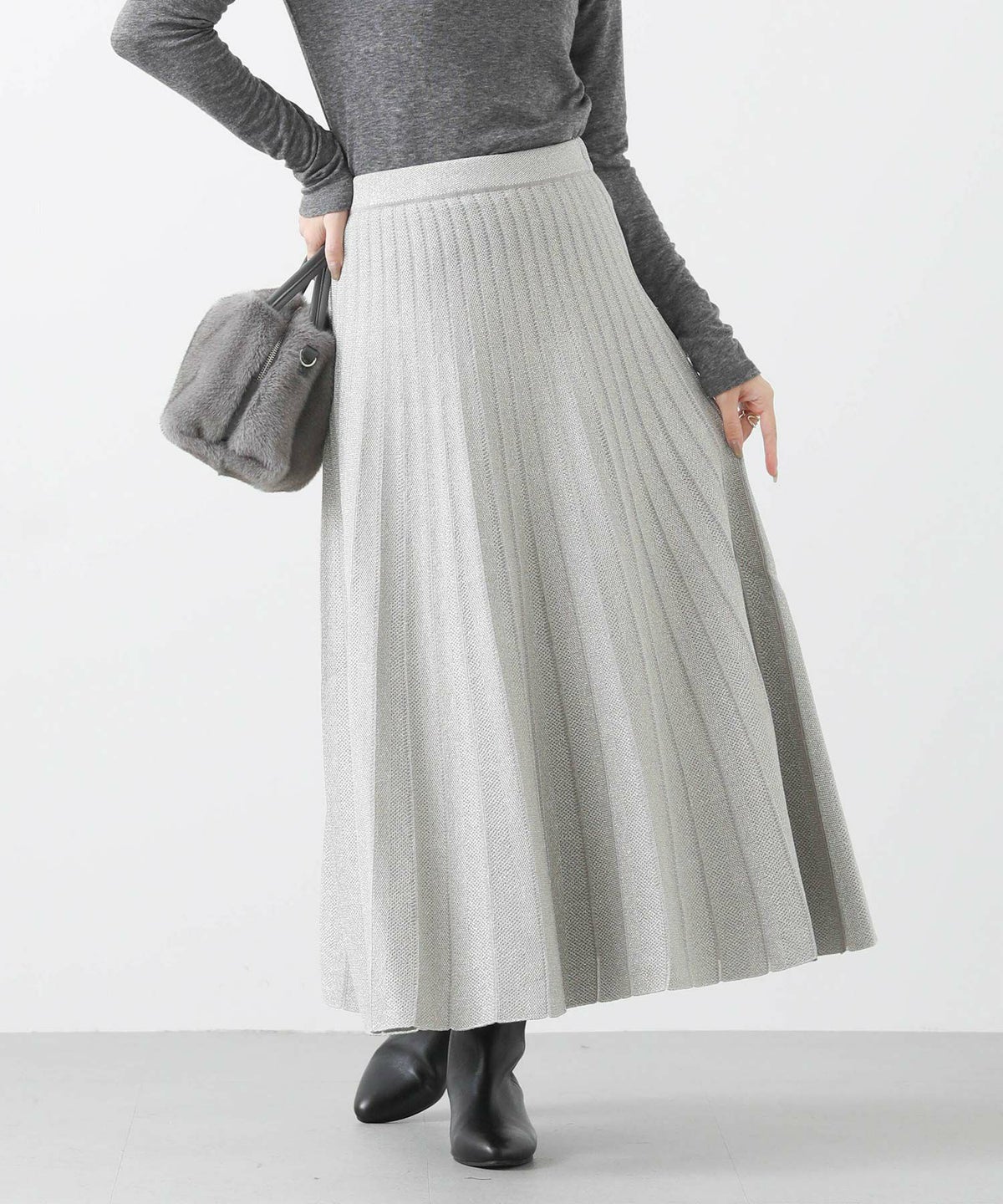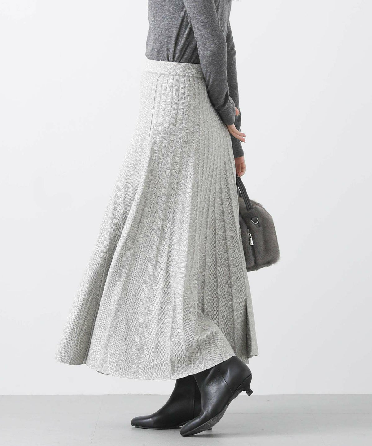 ラメニットプリーツリバースカート