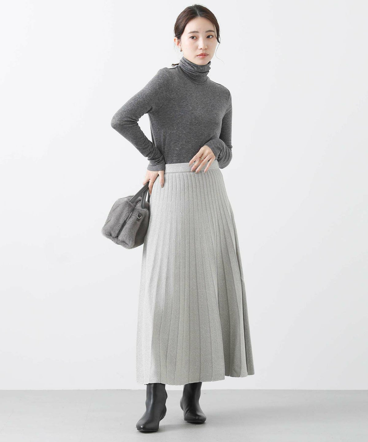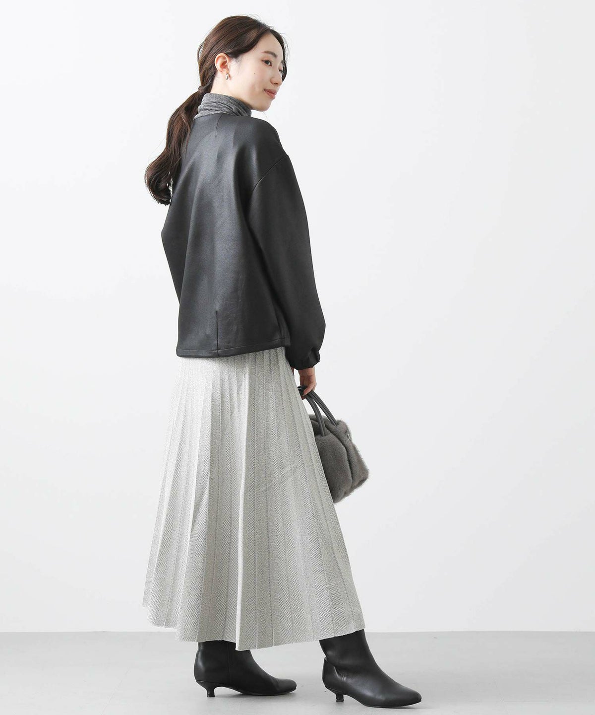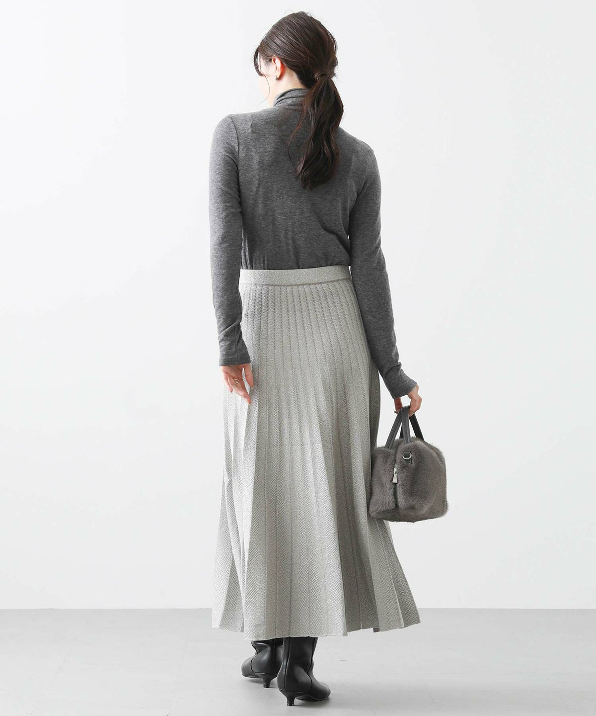 ラメニットプリーツリバースカート