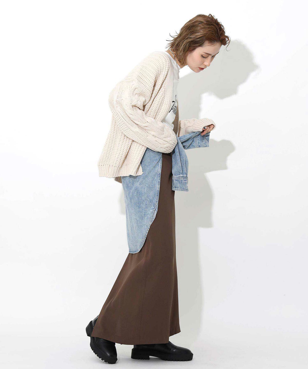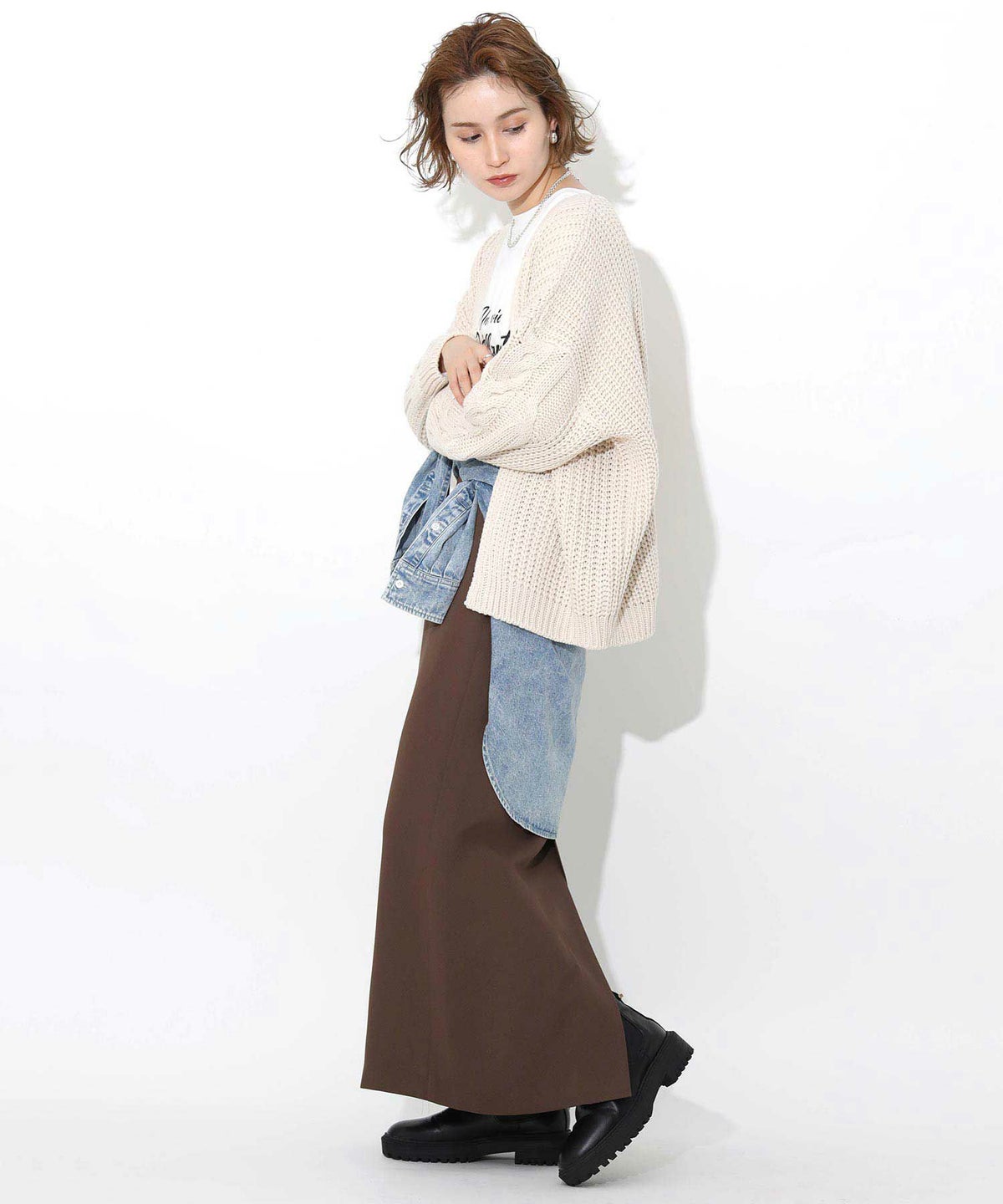 裏起毛カットタイトスカート