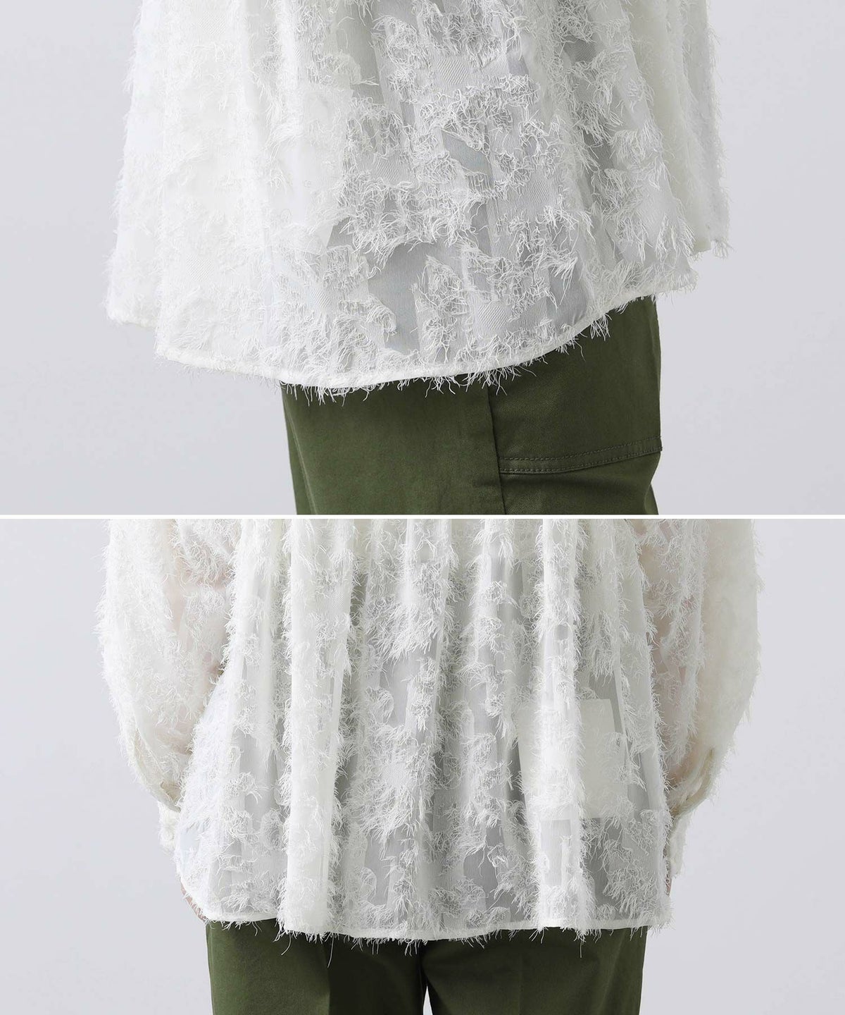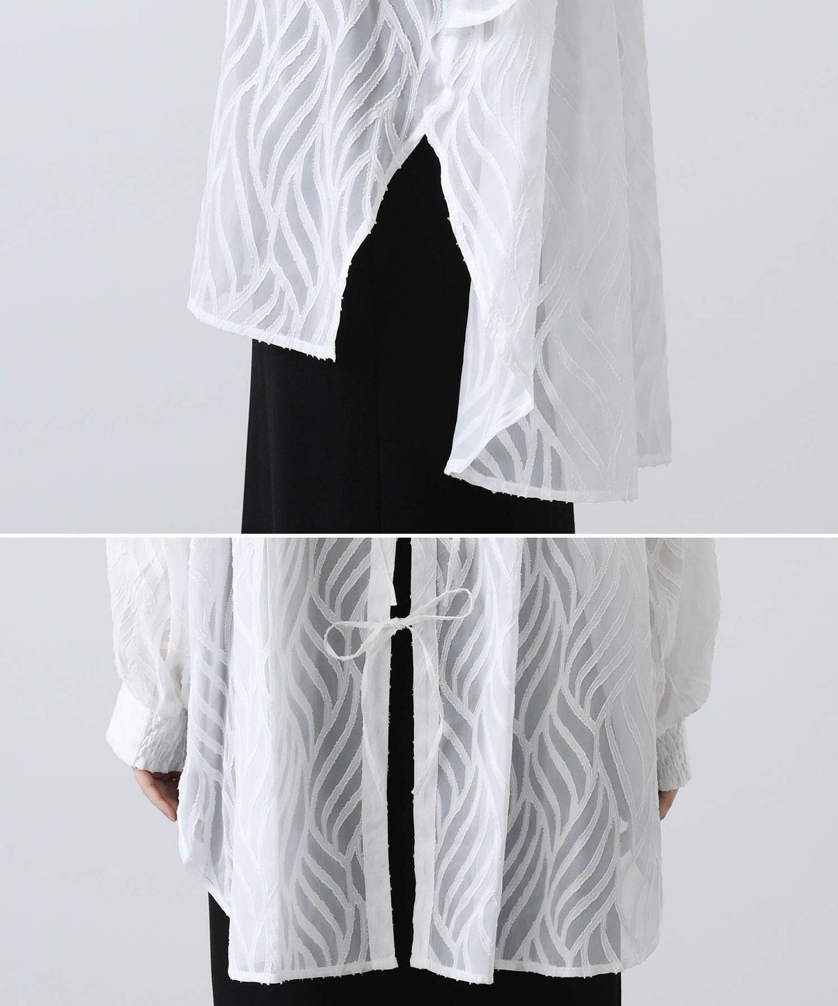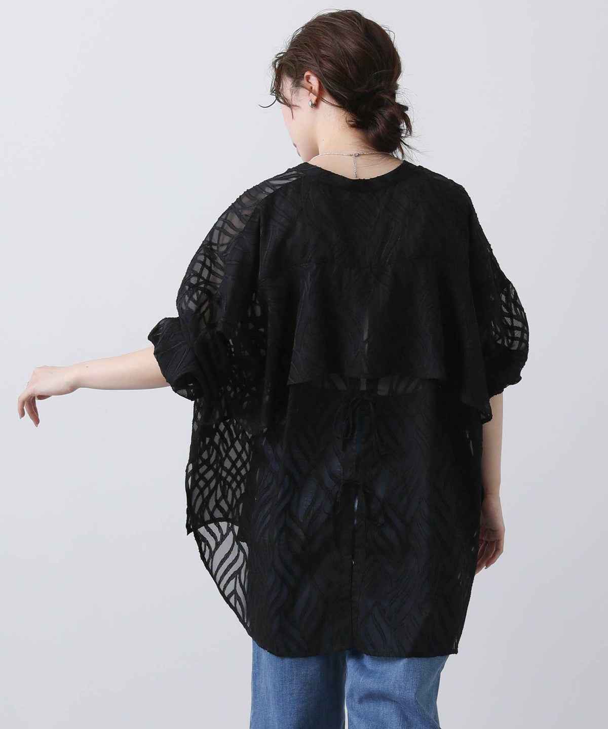 シフォンジャガード後フリルシャツ