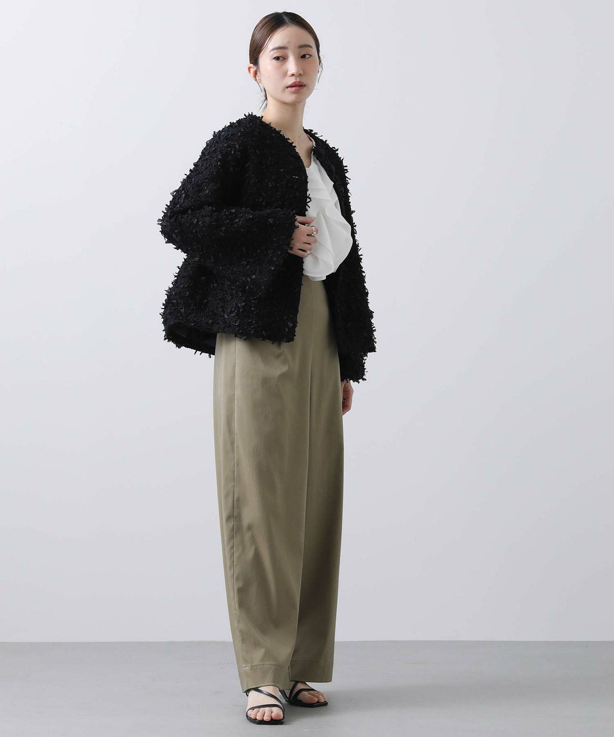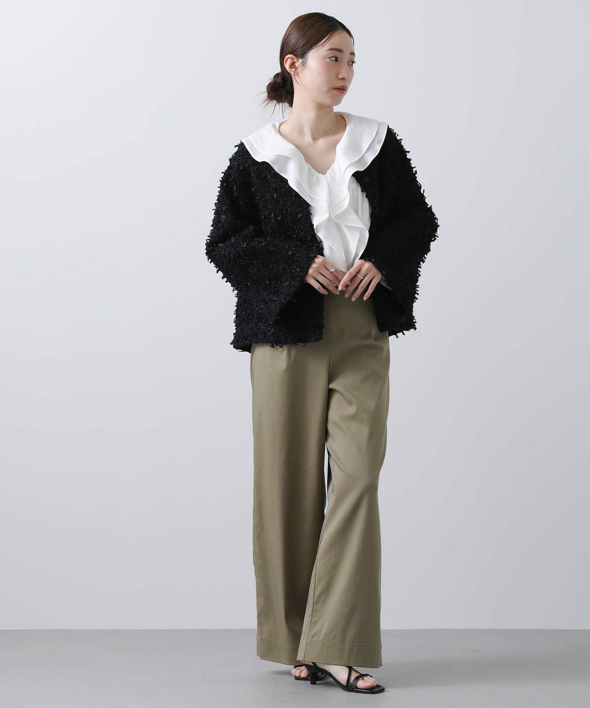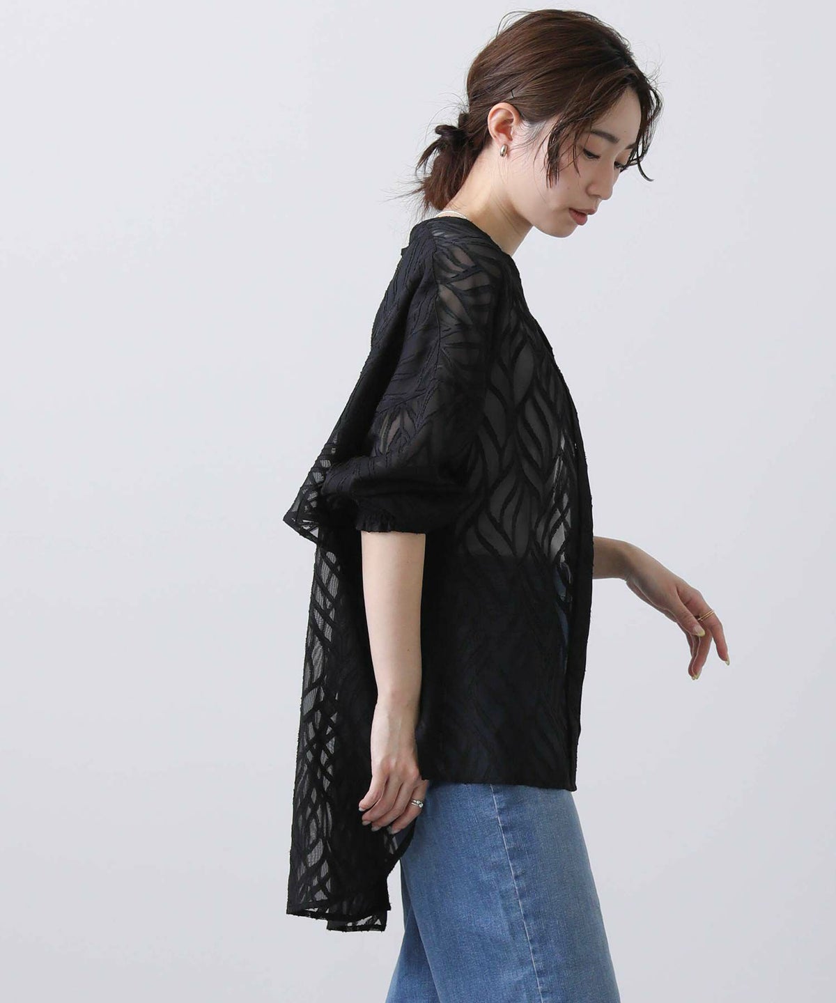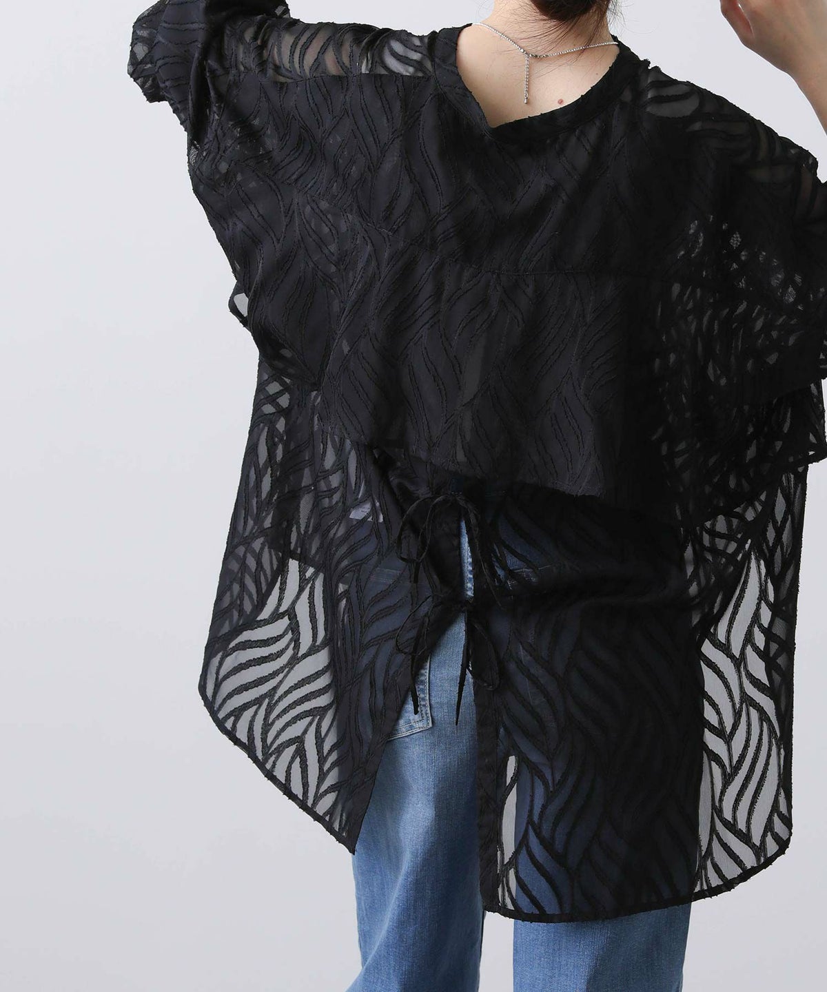 シフォンジャガード後フリルシャツ