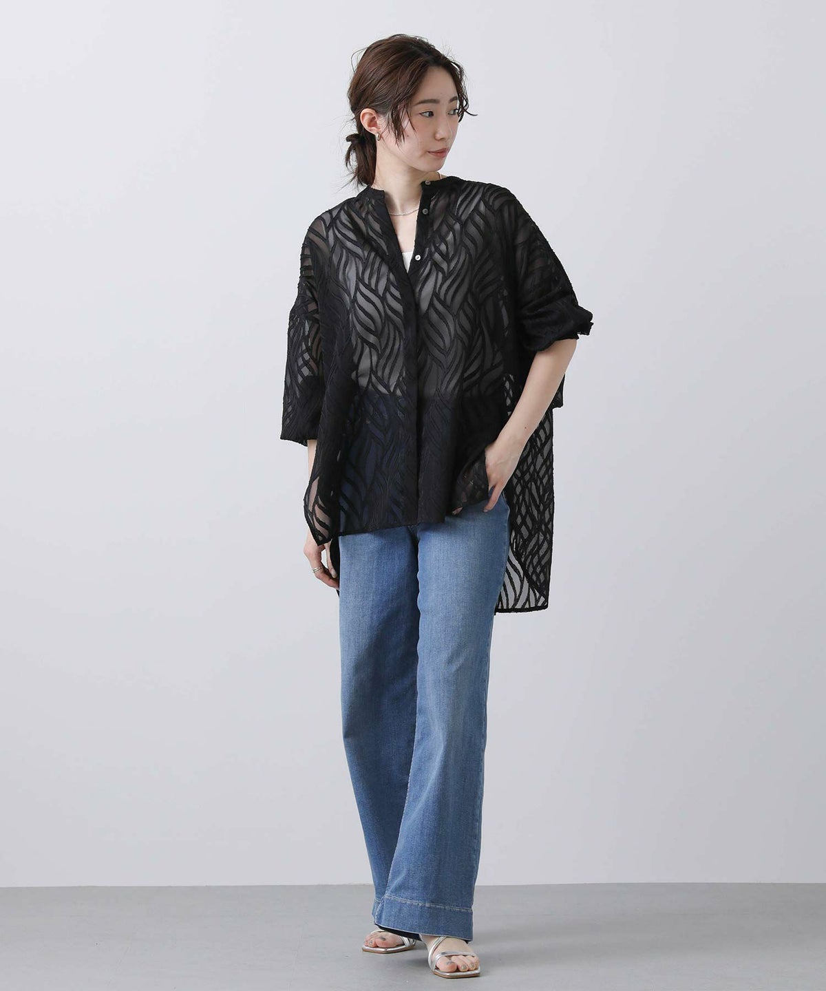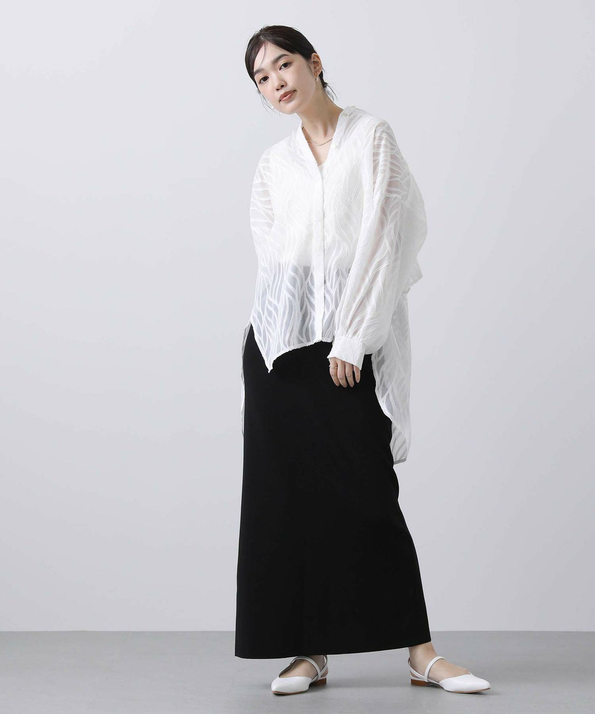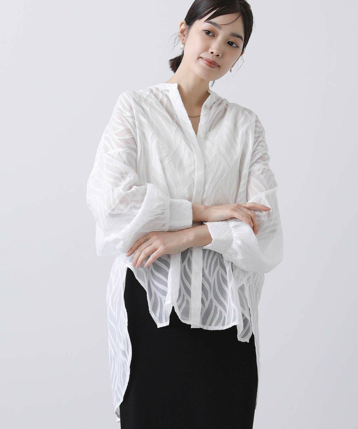バックプリーツシアーシャツ