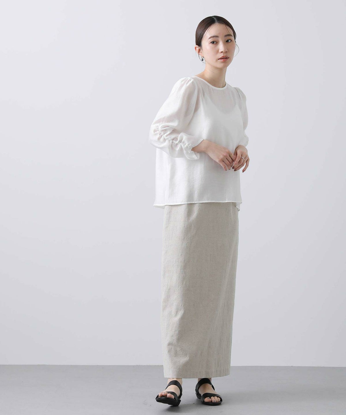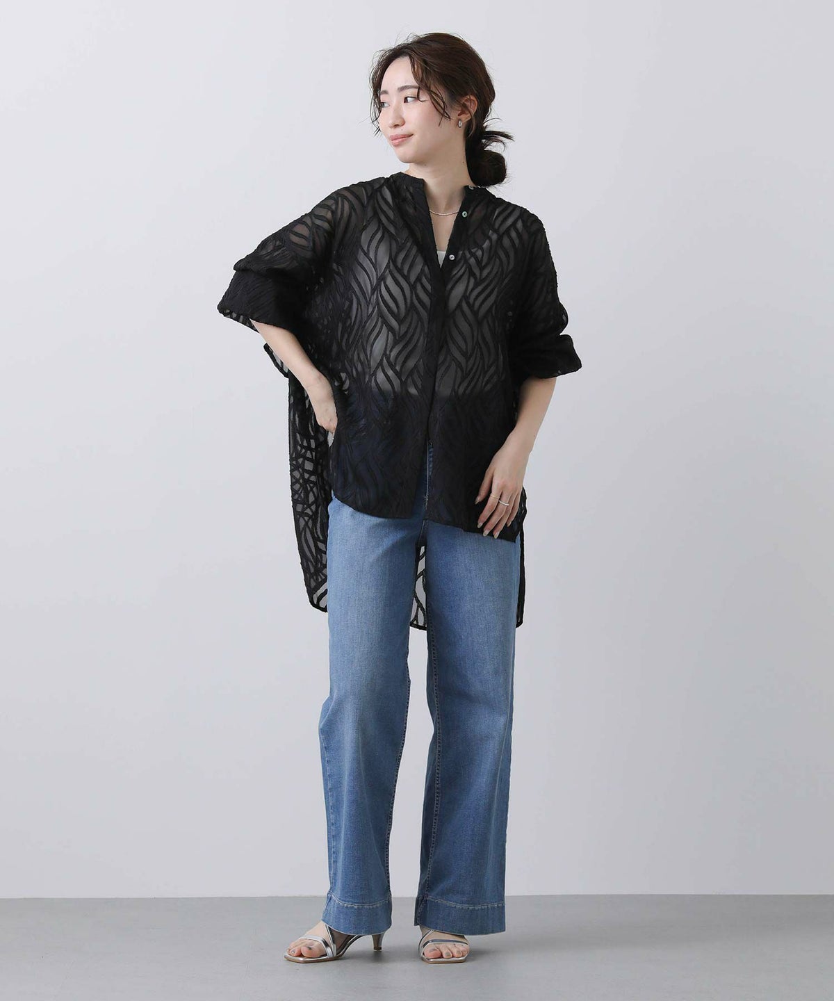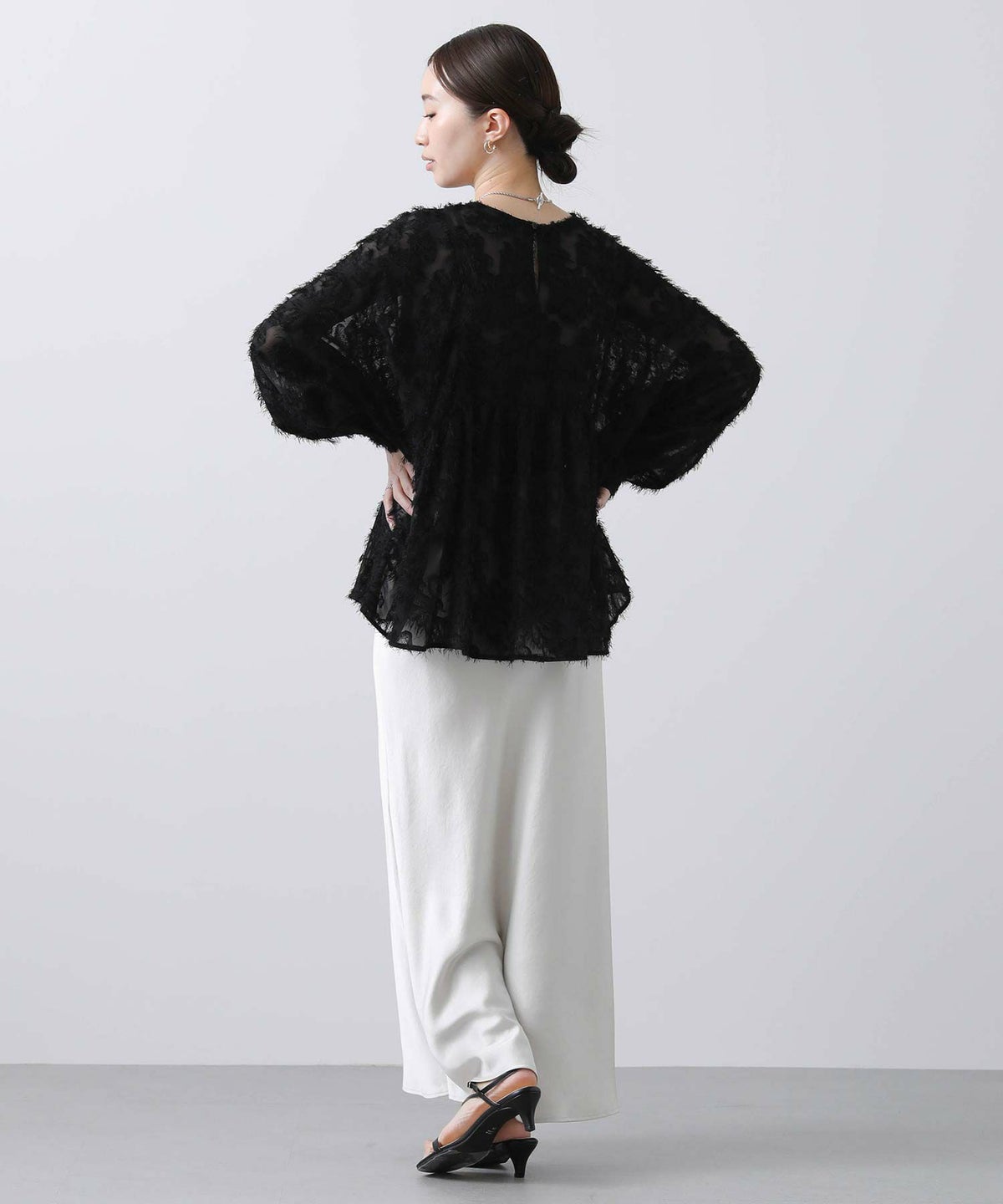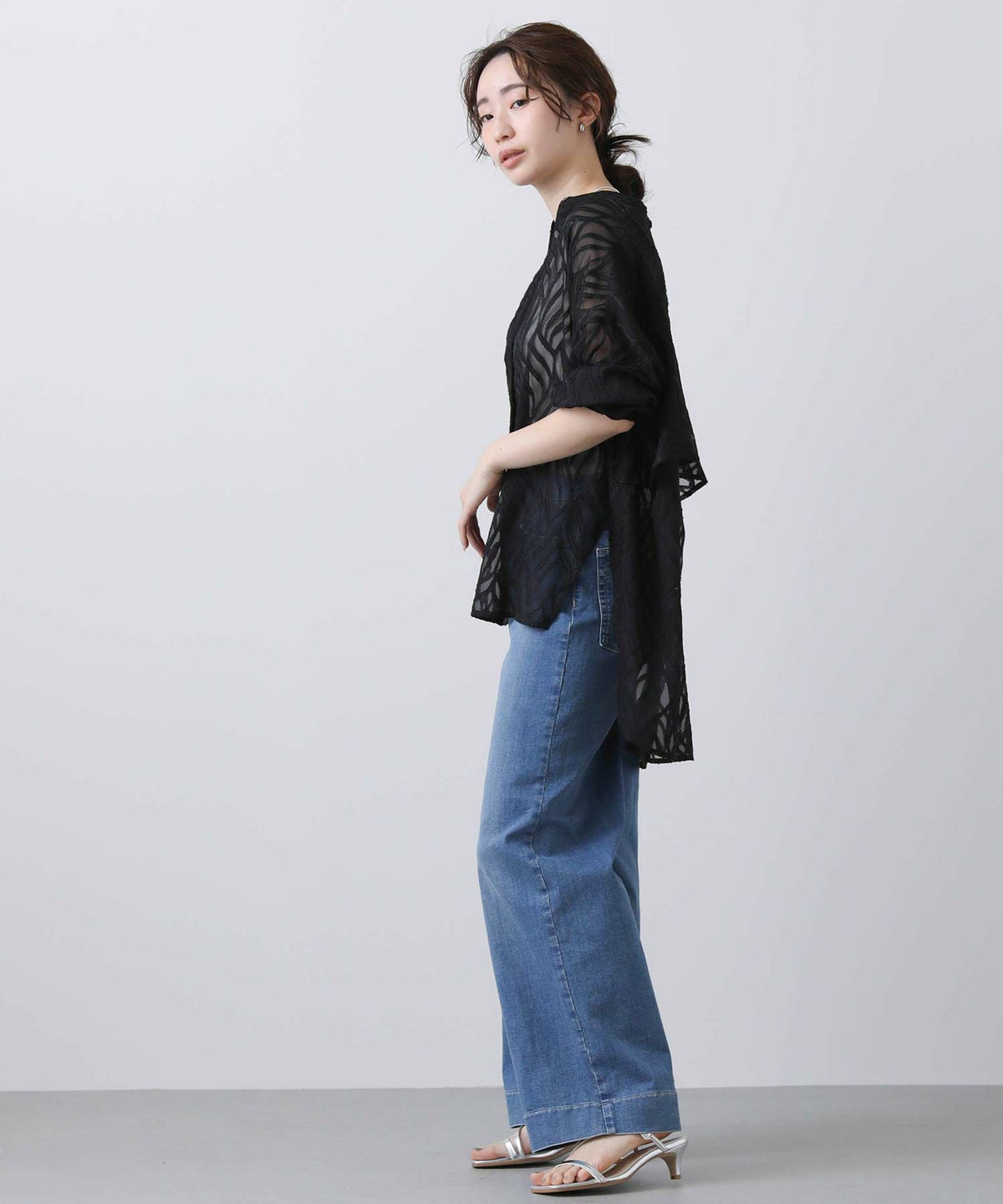 バックプリーツシアーシャツ
