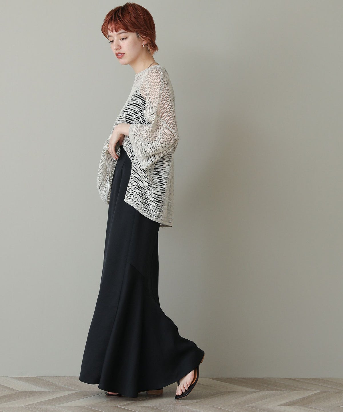 シアーオーバークルーネックニット
