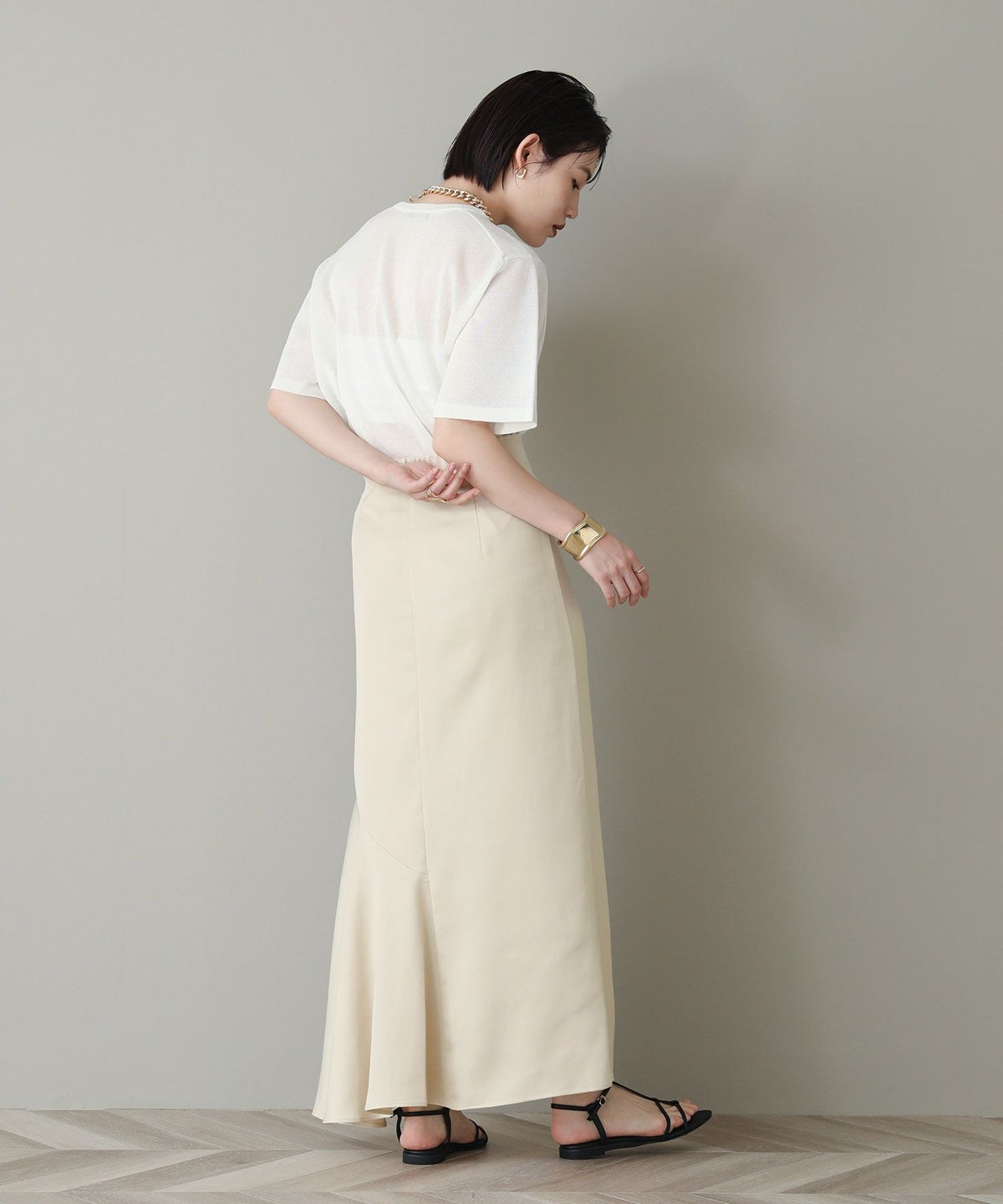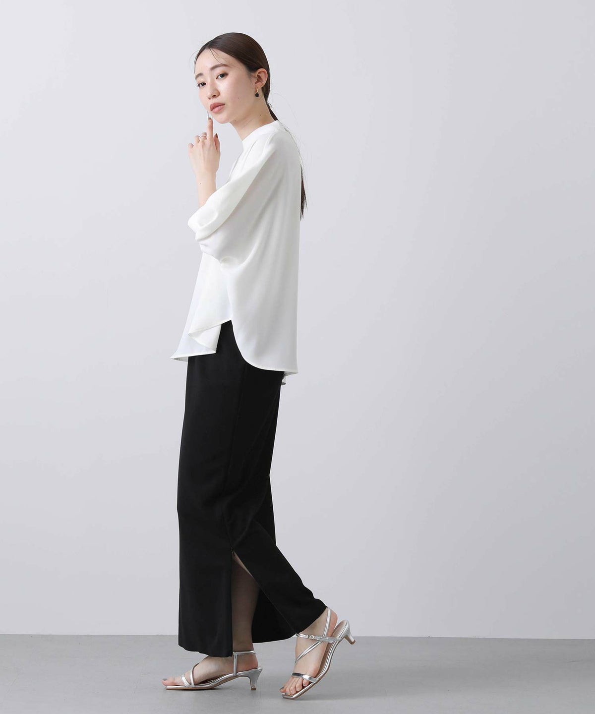 サテン切替ナロースカート