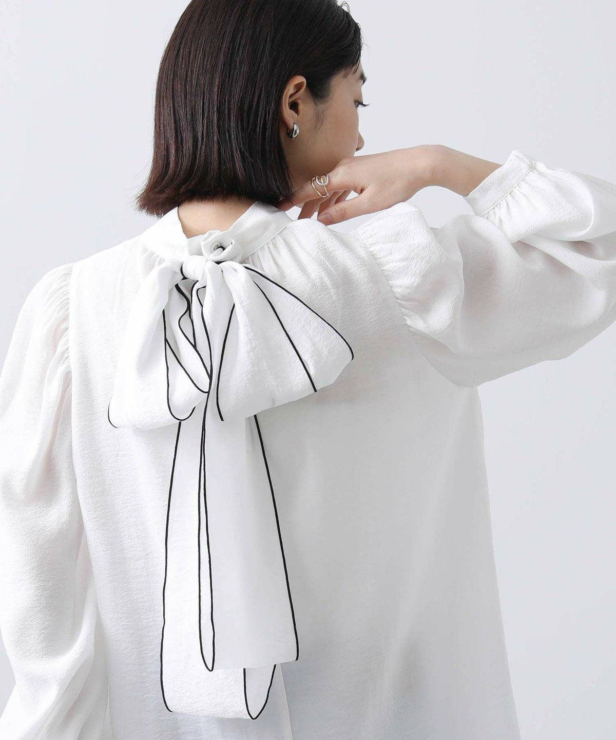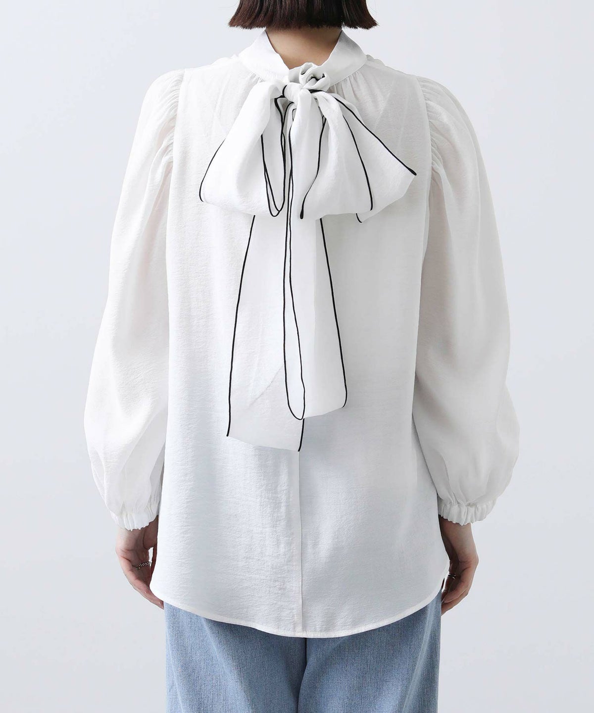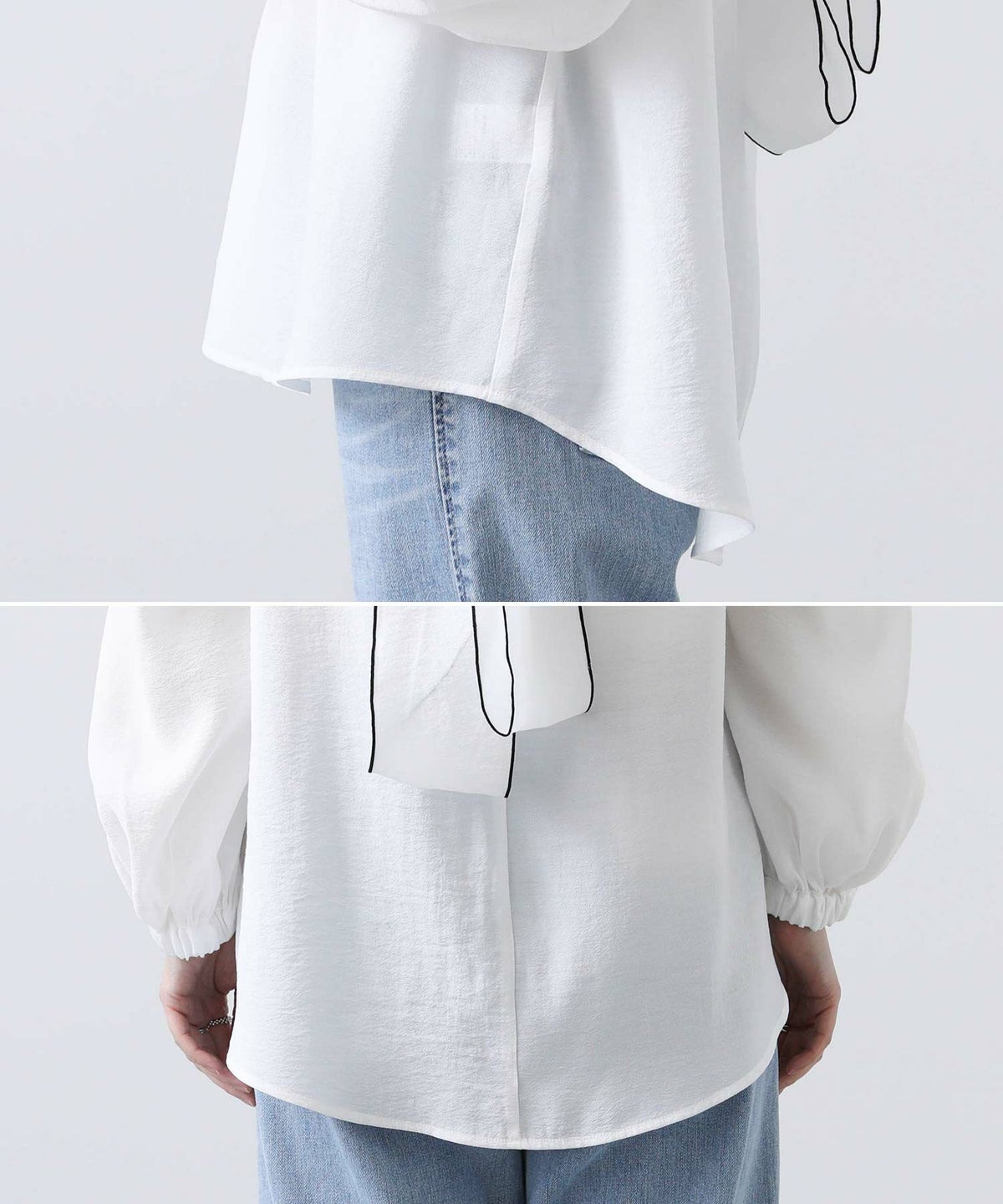 f.シアー配色リボンブラウス