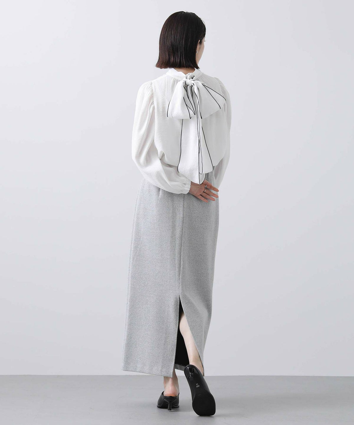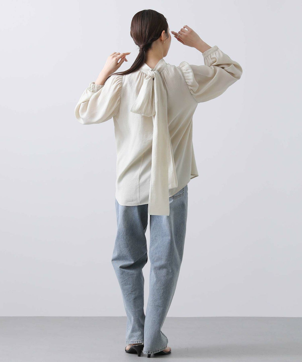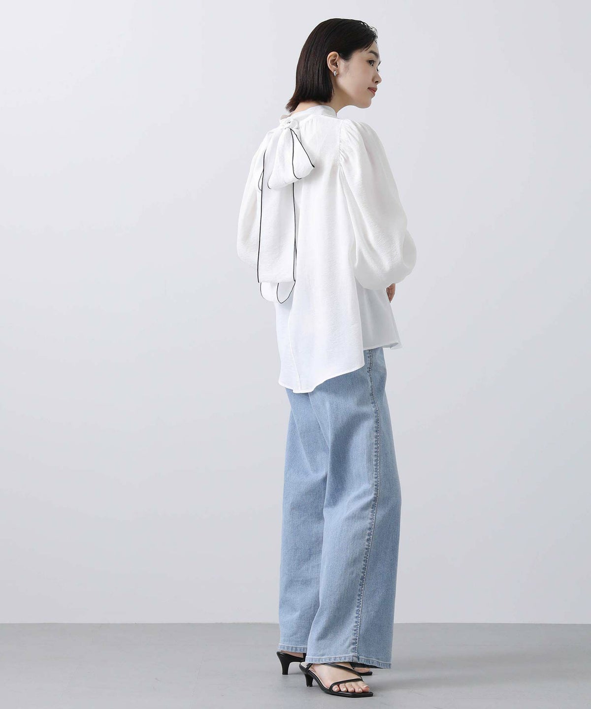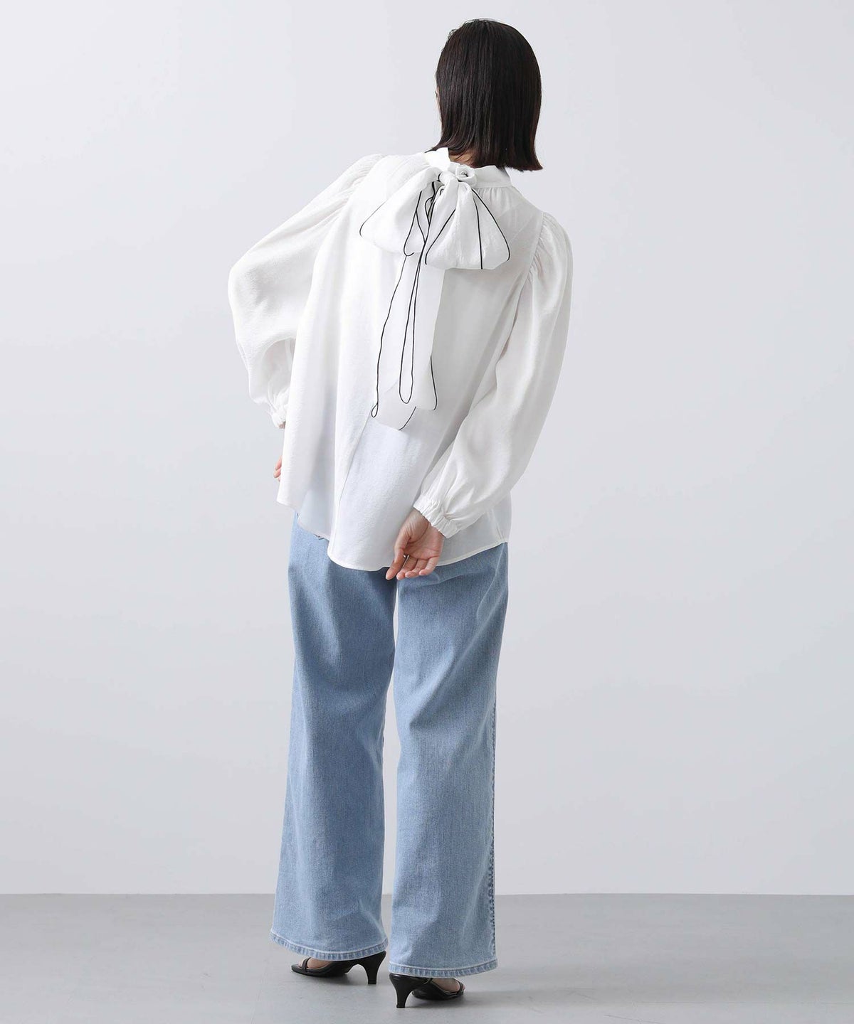 f.シアー配色リボンブラウス