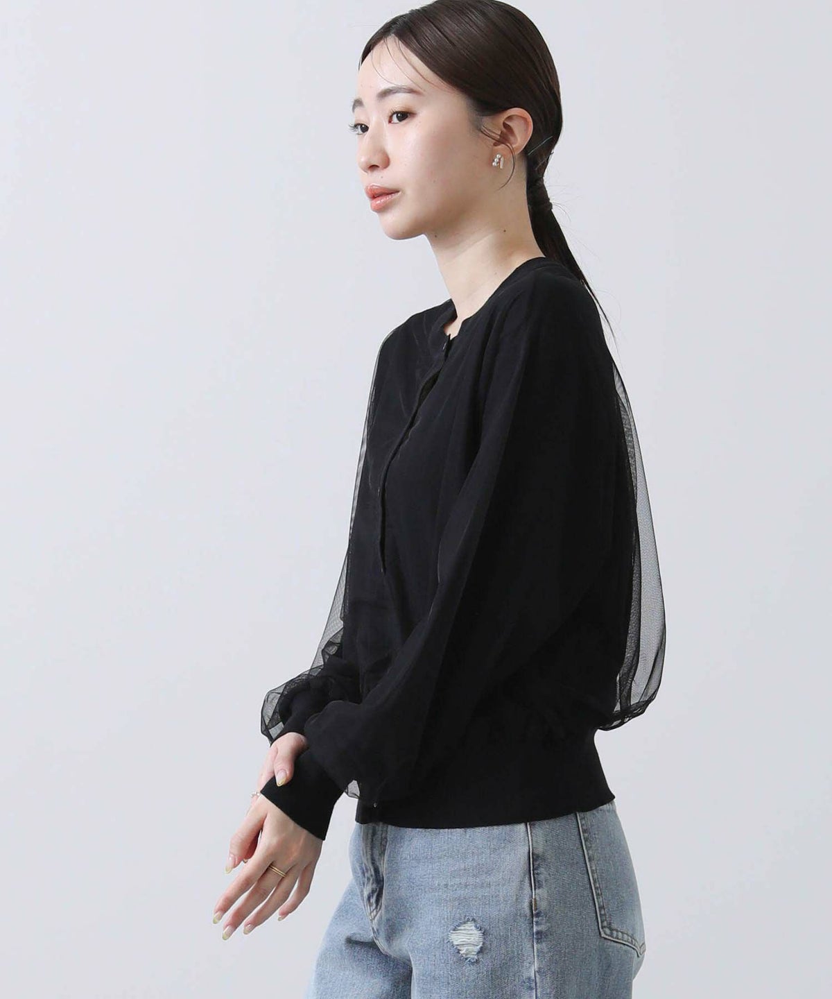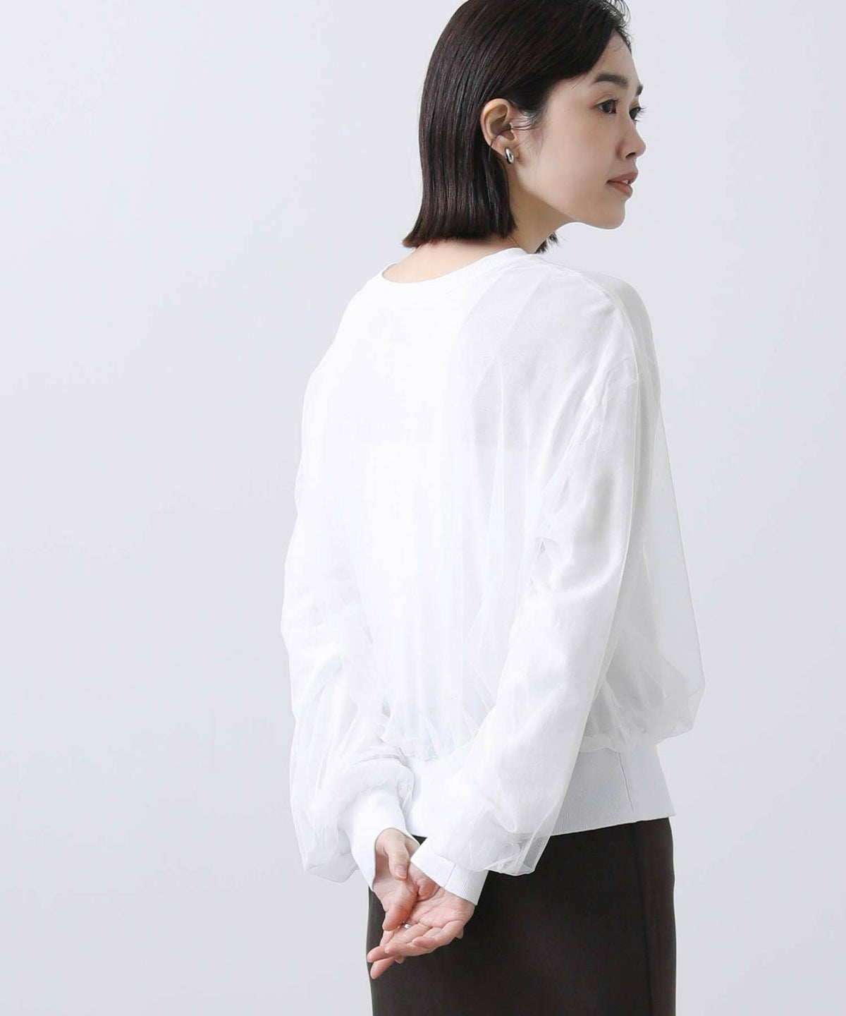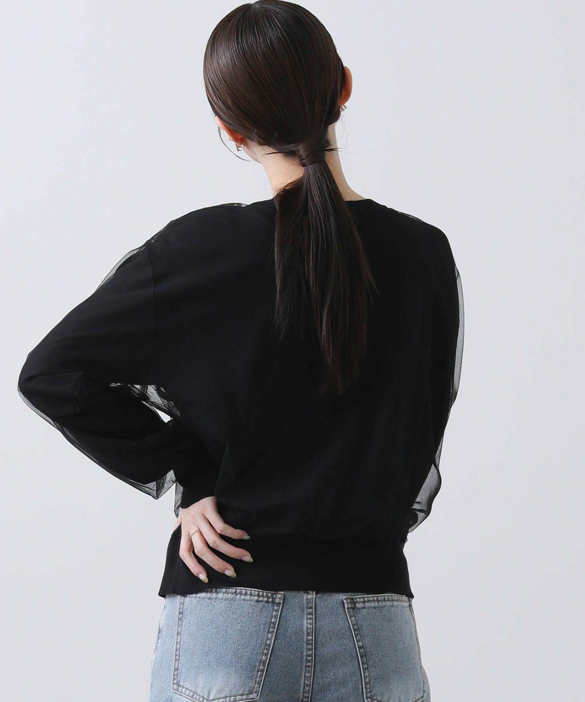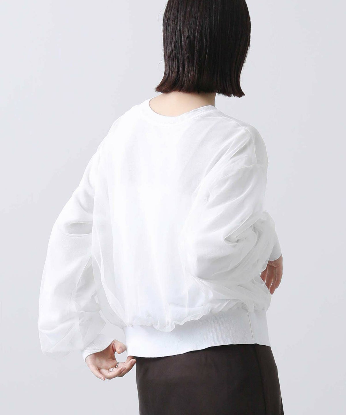 グログラン×チュール袖カットソー