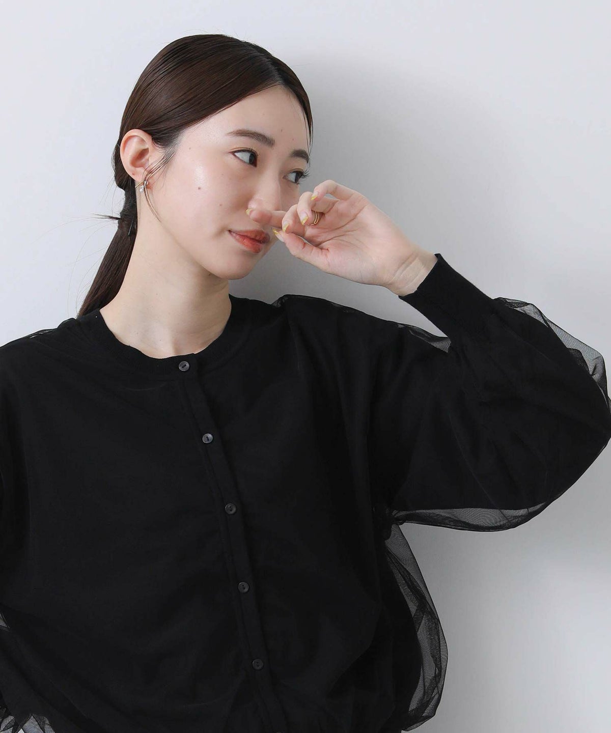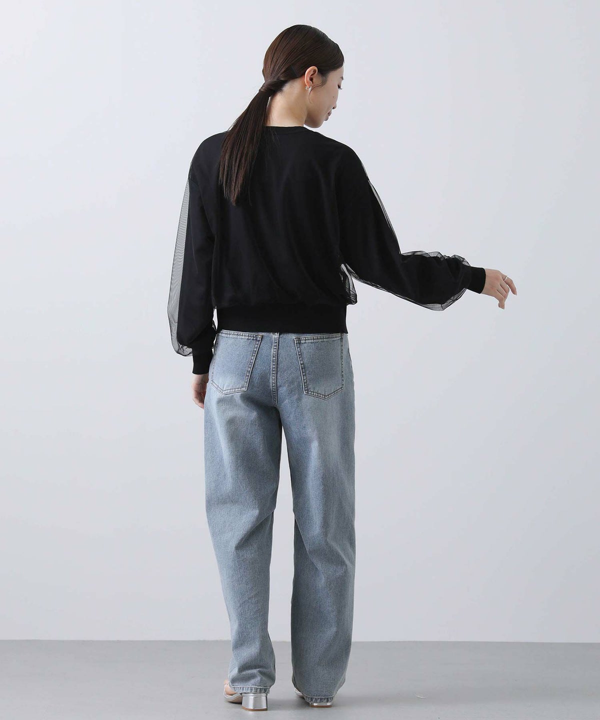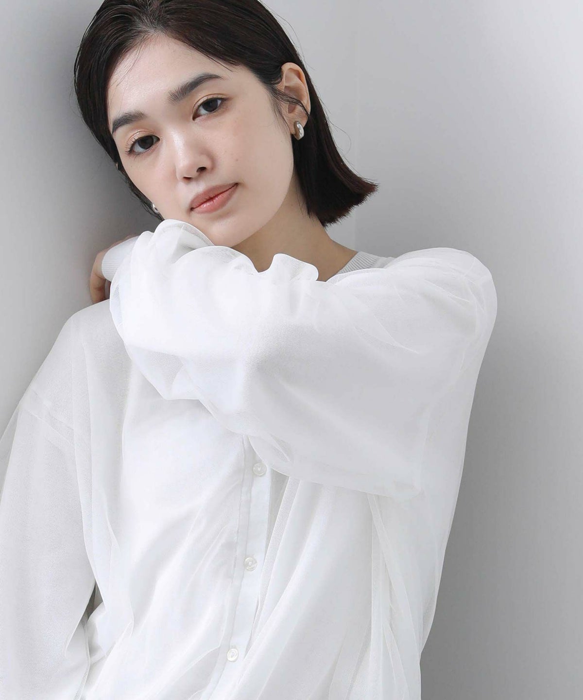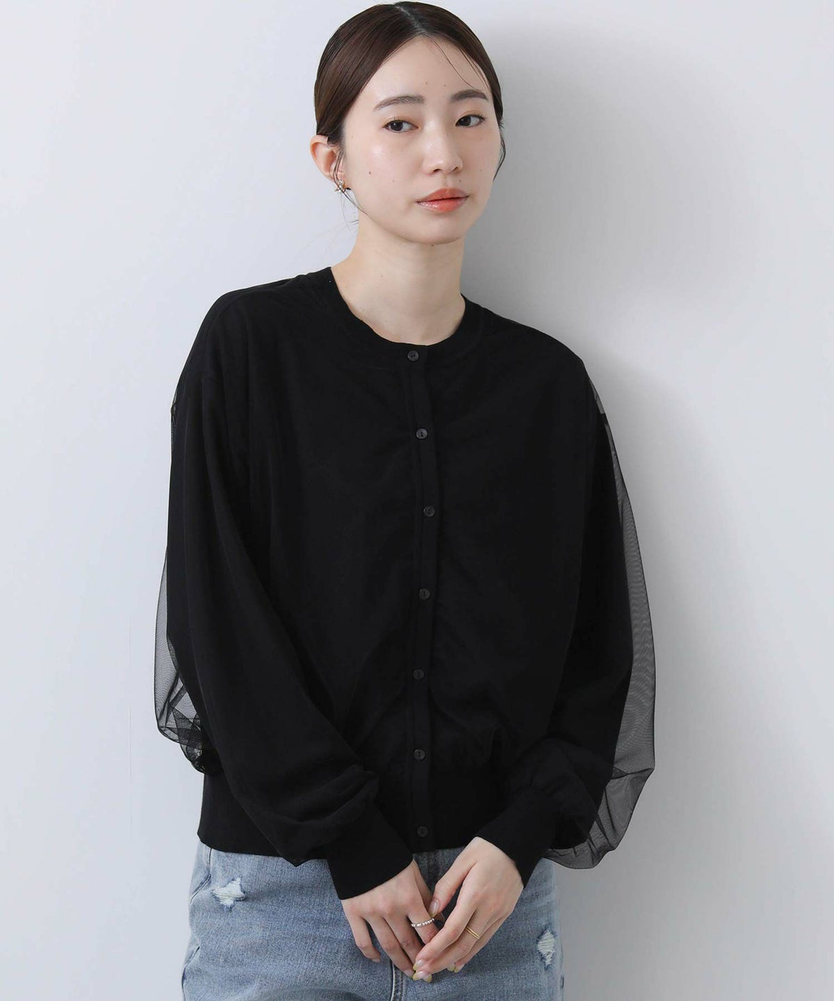 グログラン×チュール袖カットソー