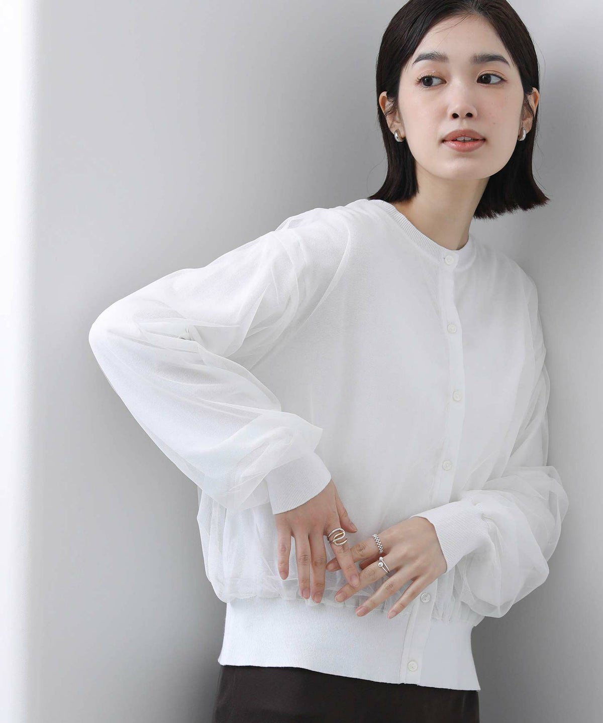 .チュール重ね2wayカーディガン