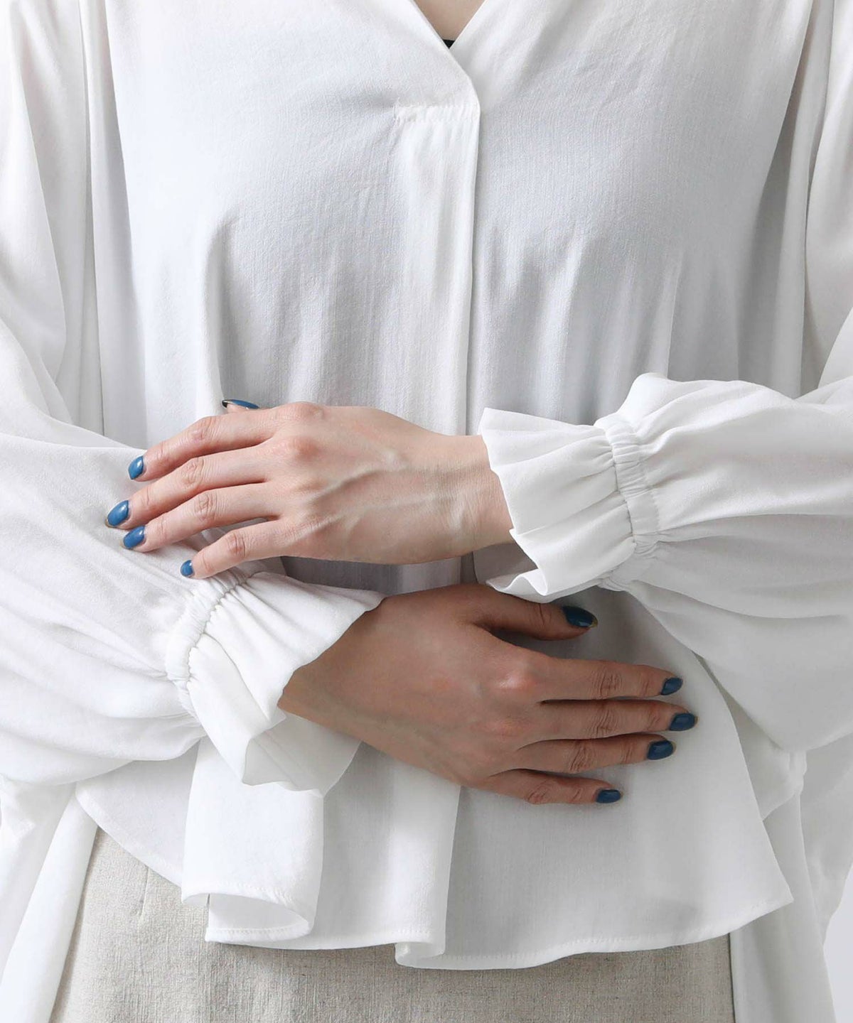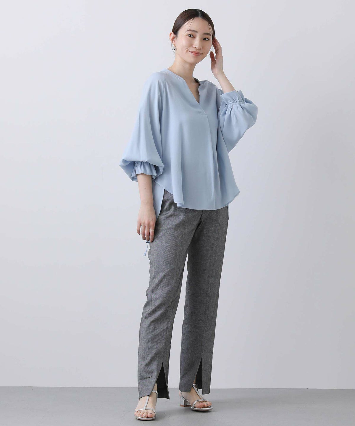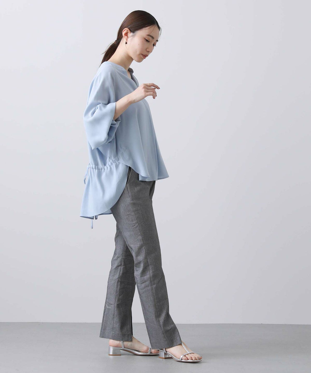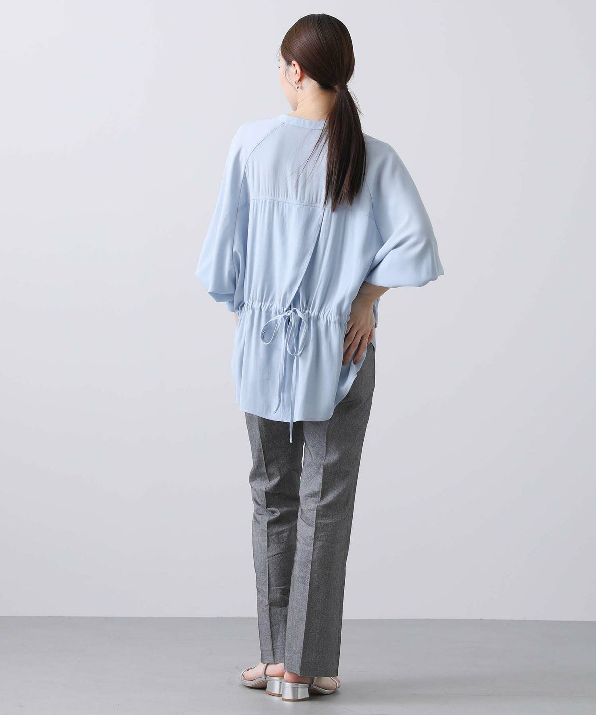 ギャザー7分袖クルーネックブラウス