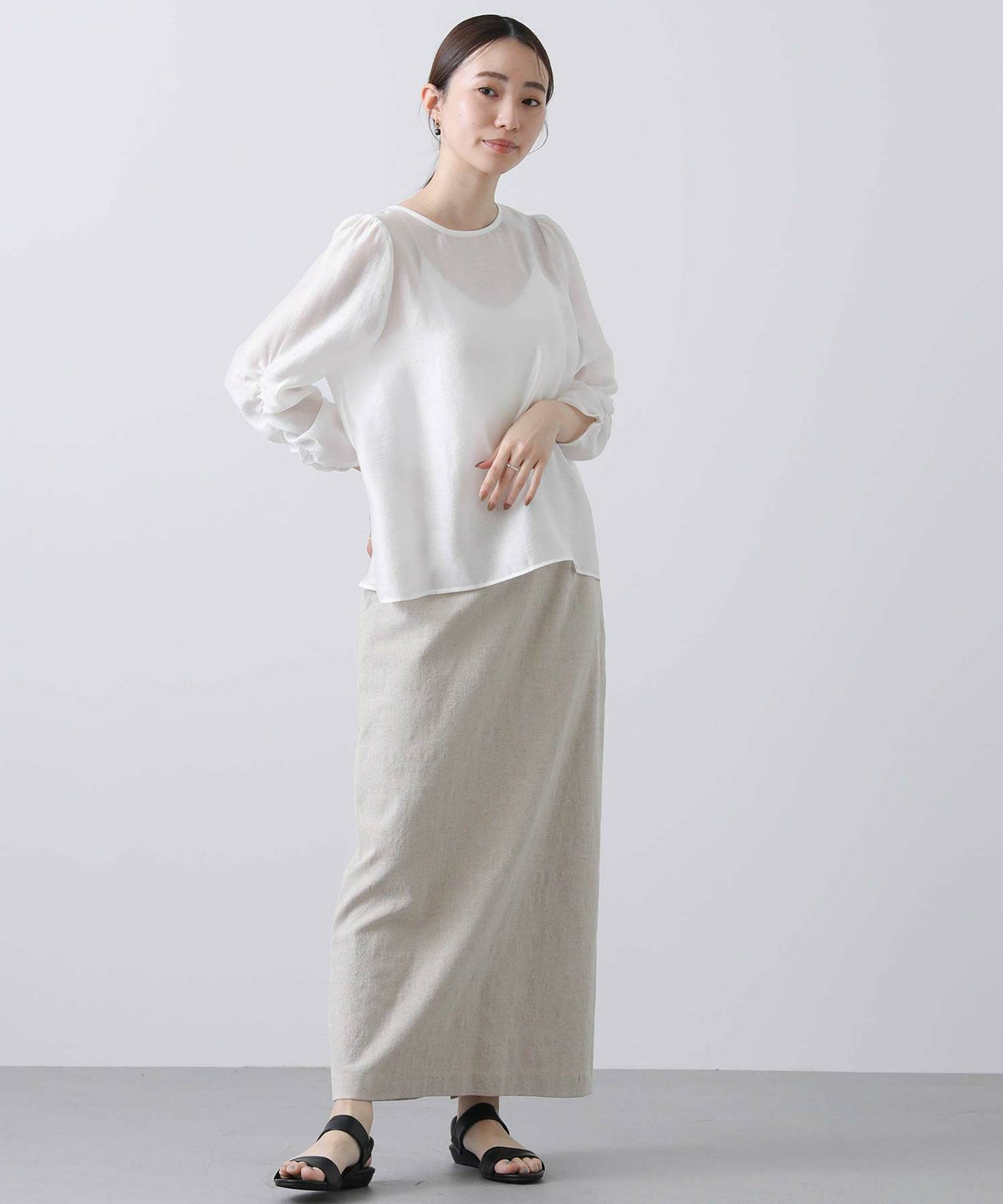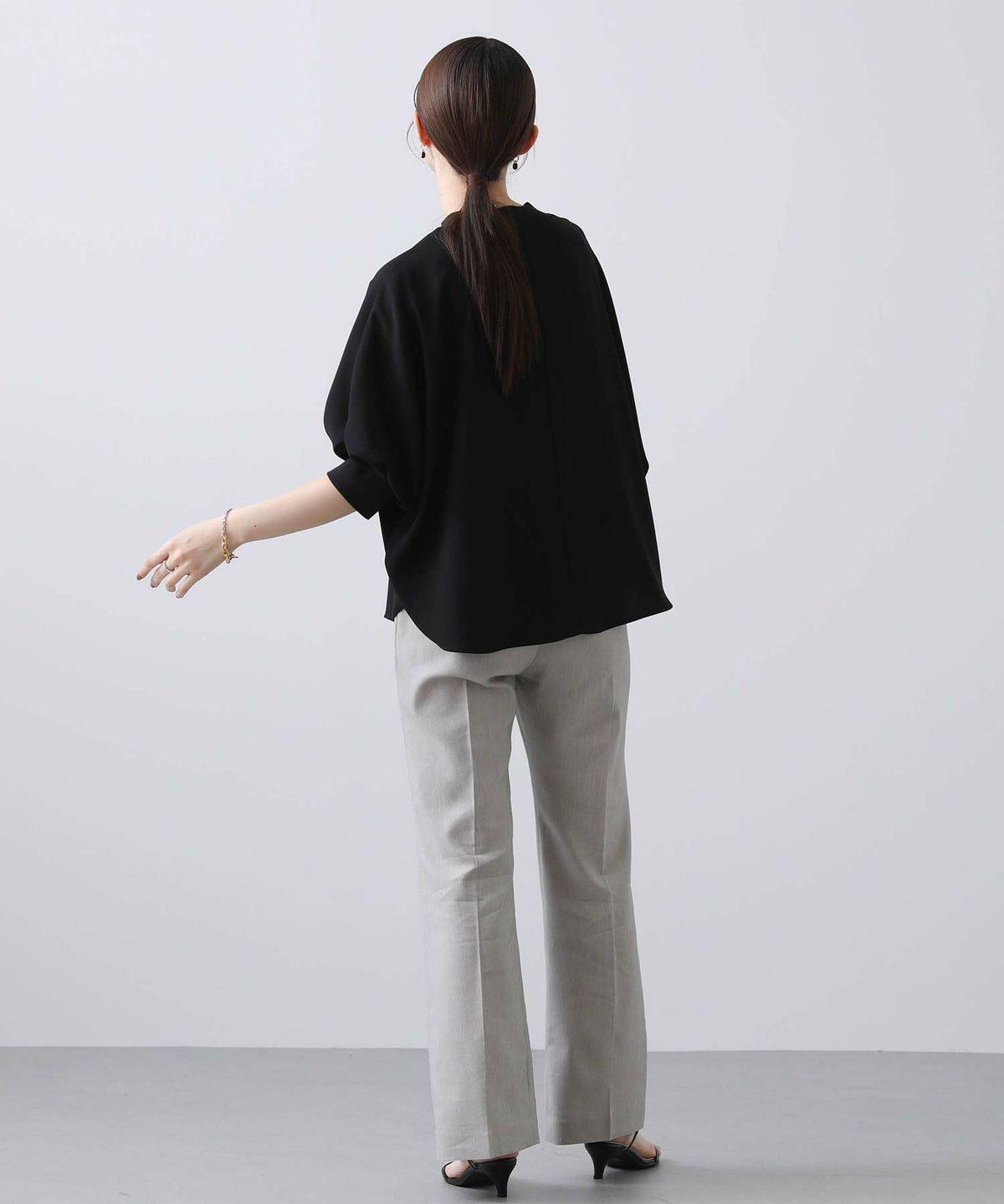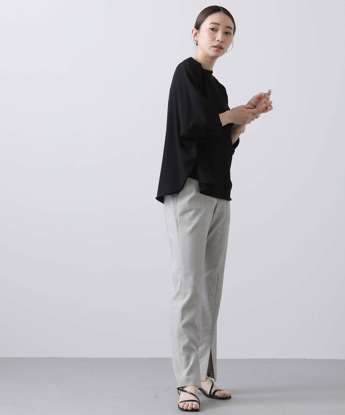 麻調ドルマンキーネックシャツ