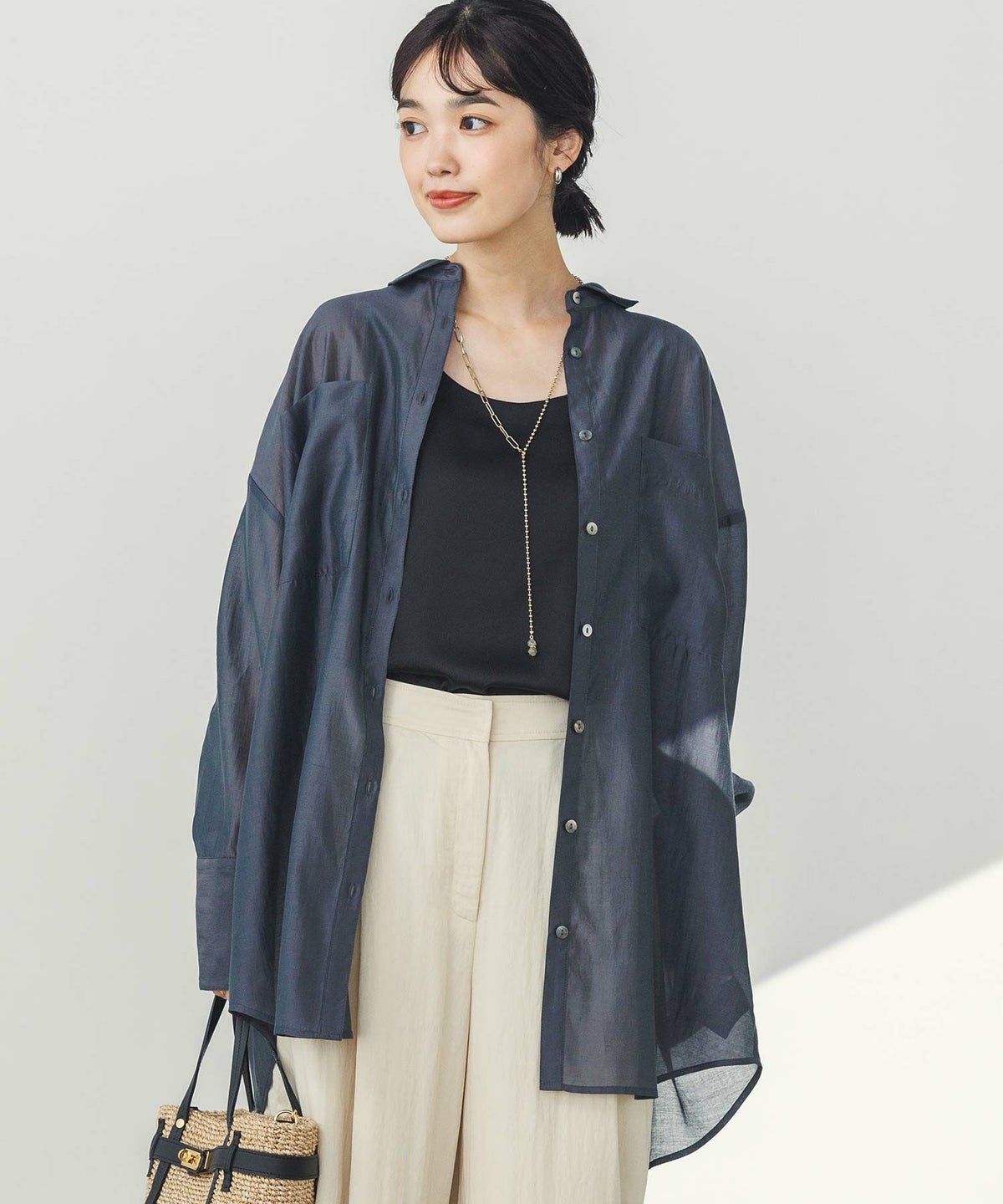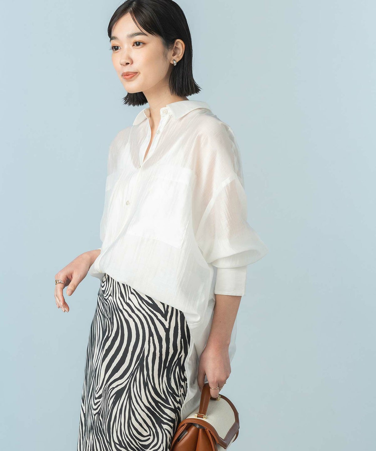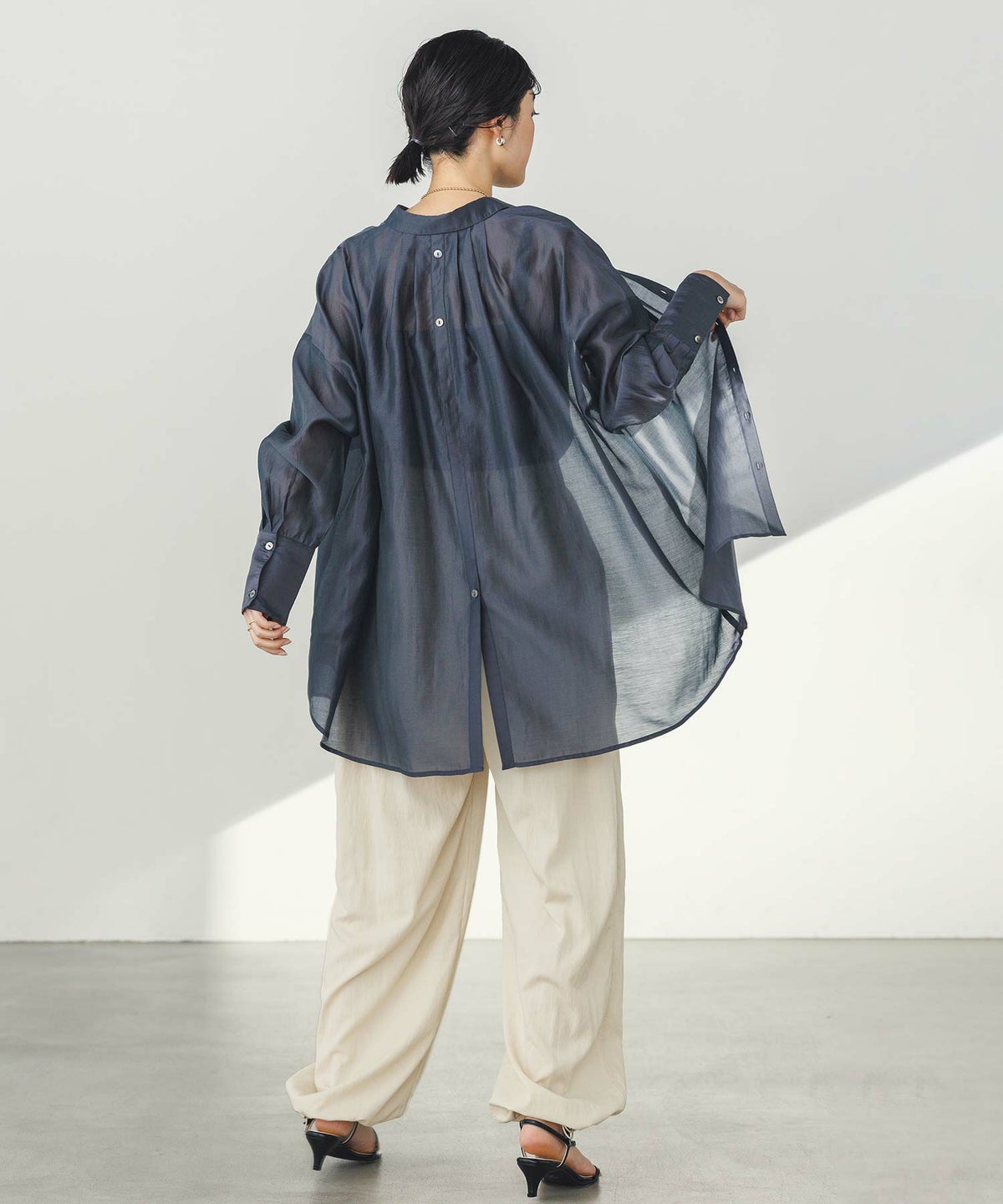 【2026年4月ファミリーセール対象商品】シアーシャツカラーワイドスリーブブラウス
