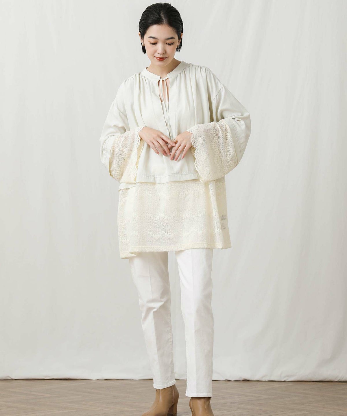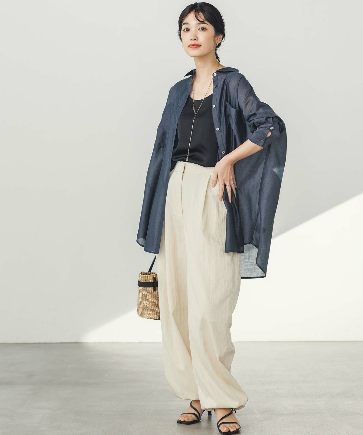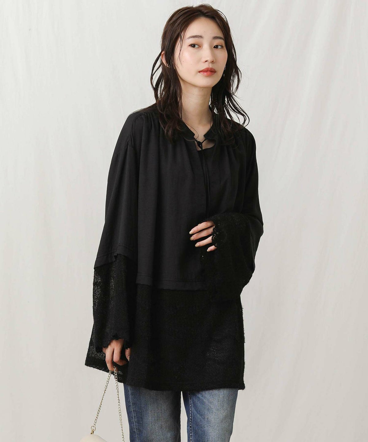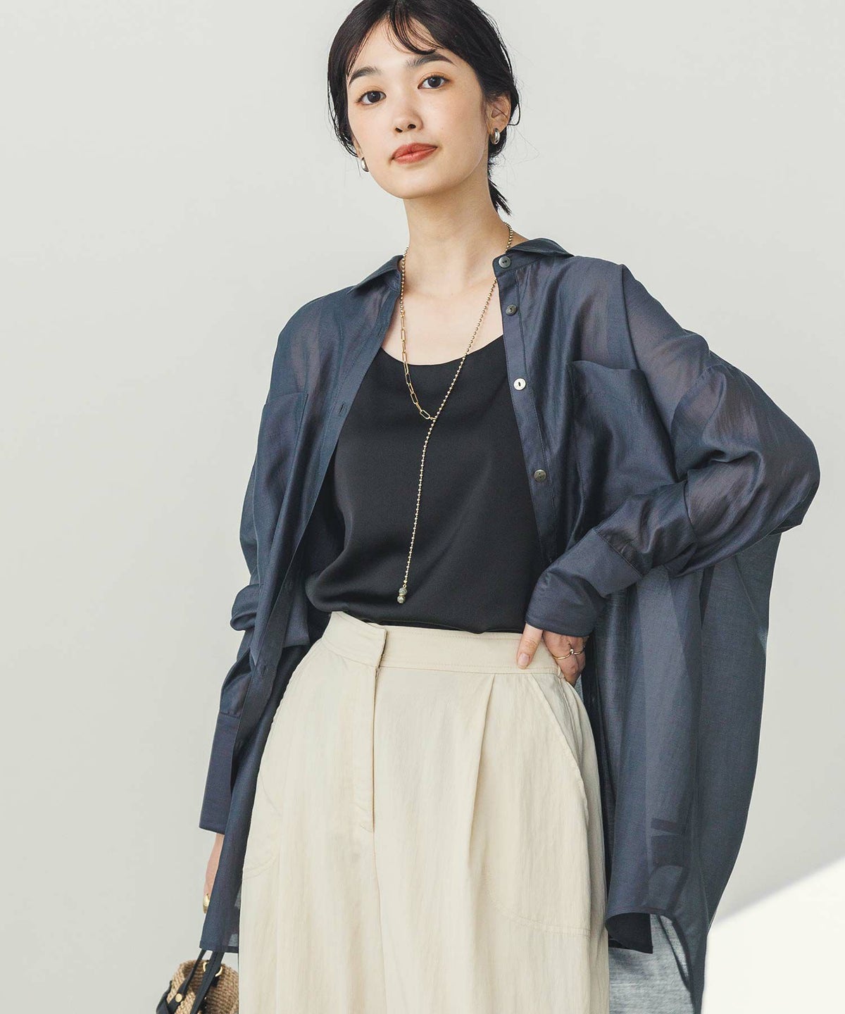 【2026年4月ファミリーセール対象商品】シアーシャツカラーワイドスリーブブラウス
