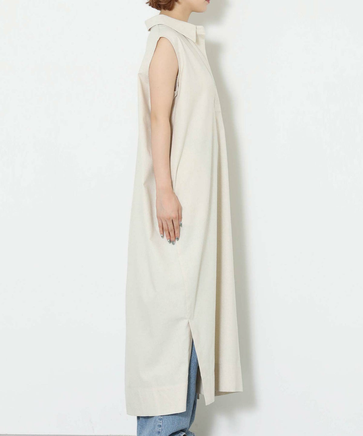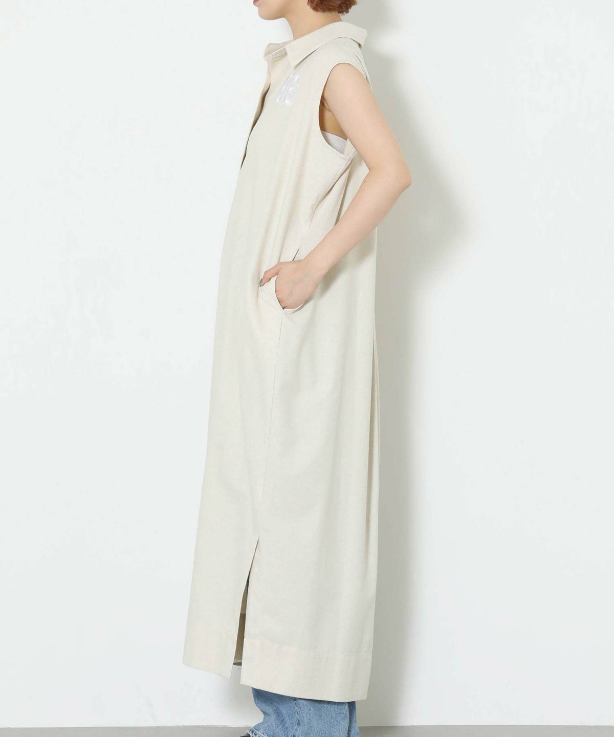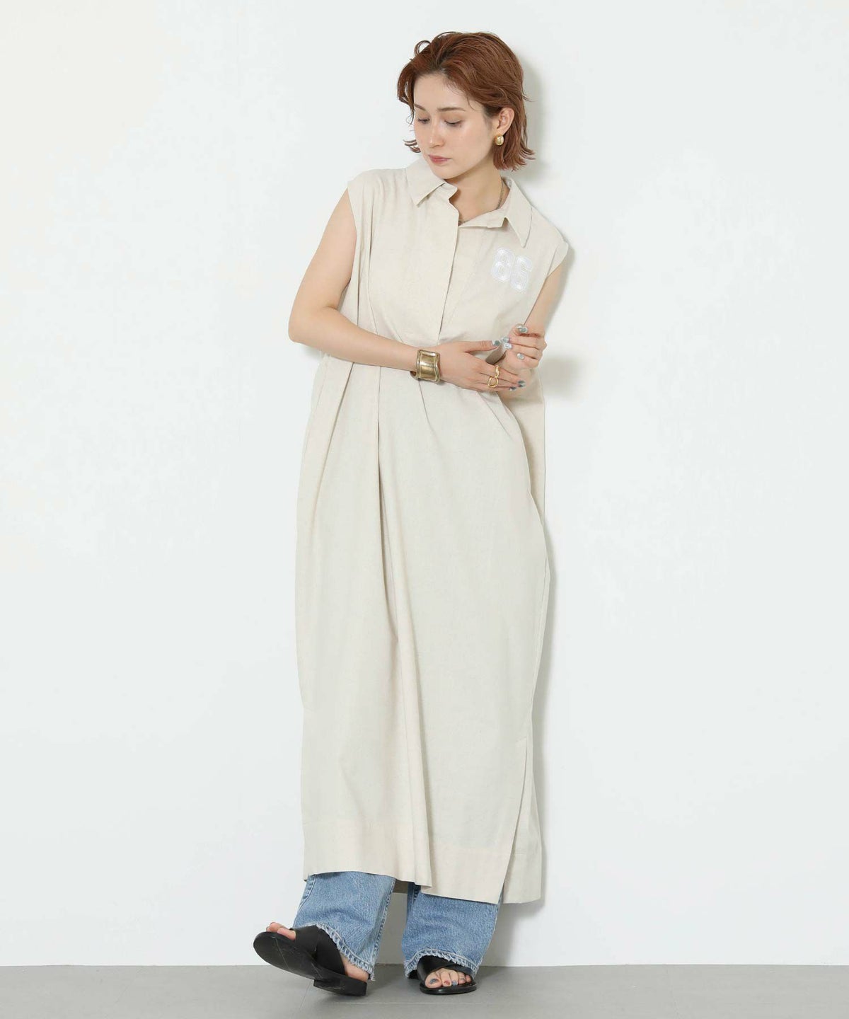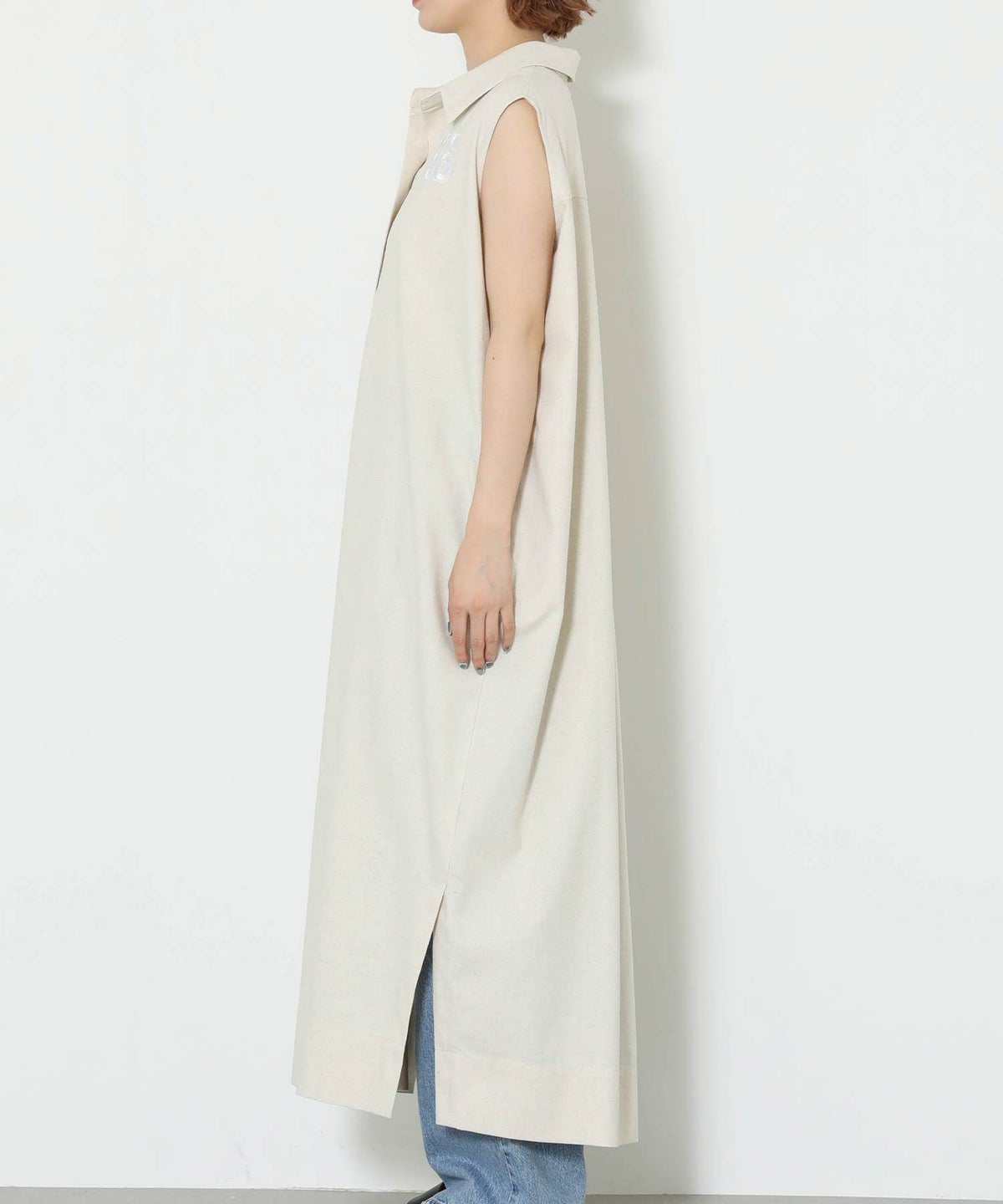 86刺繍リネン混シャツワンピース