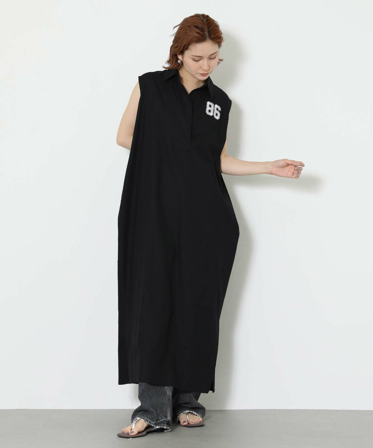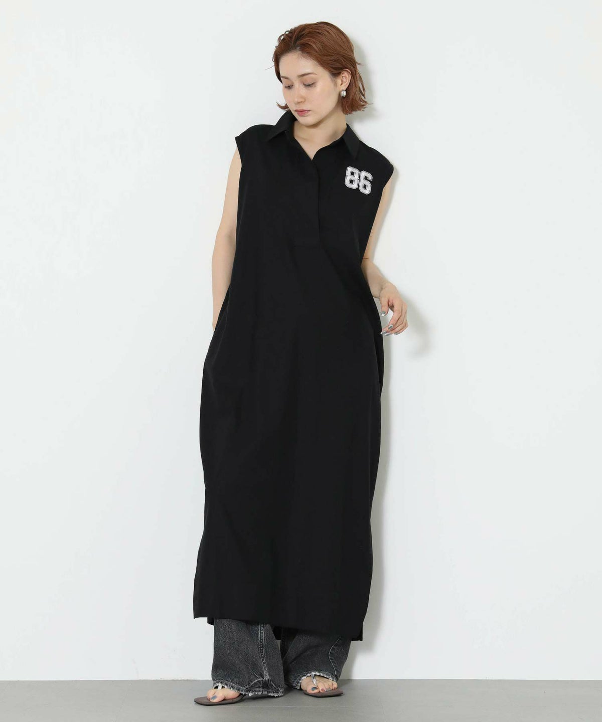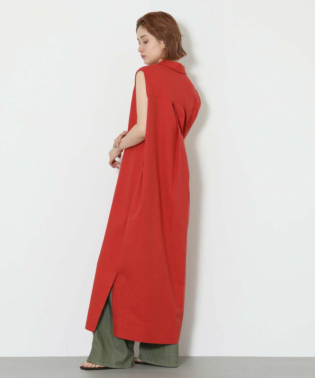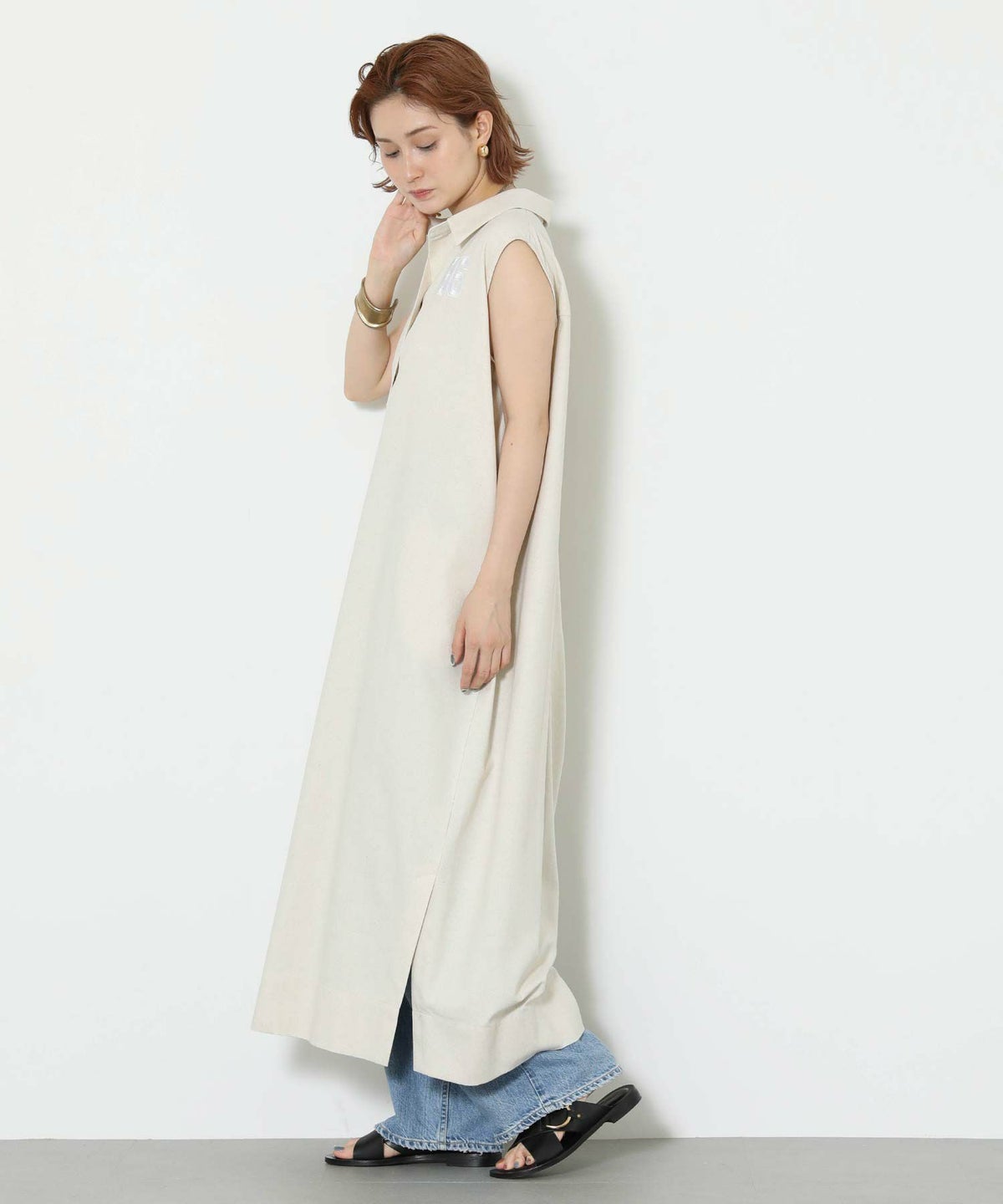 86刺繍リネン混シャツワンピース
