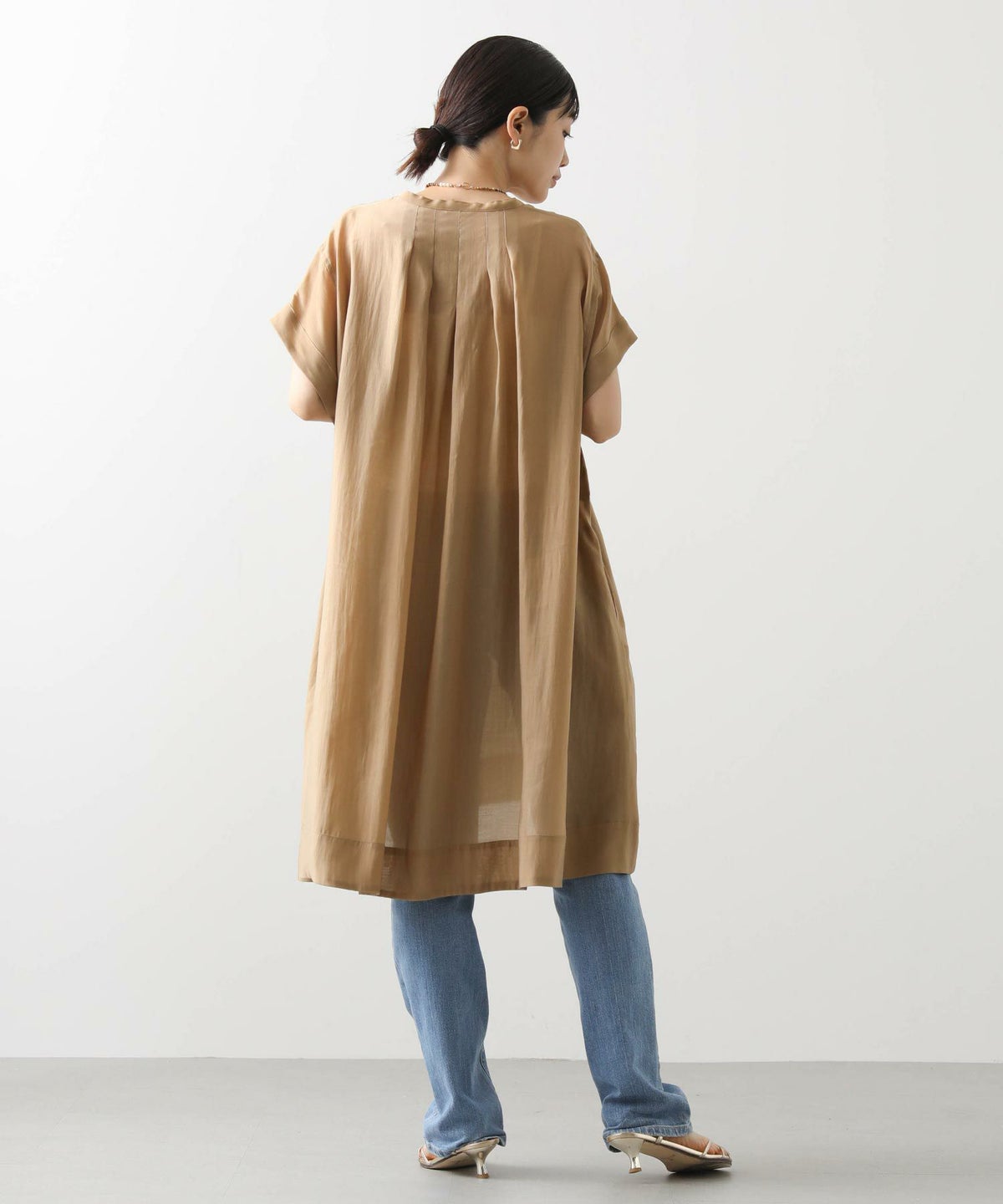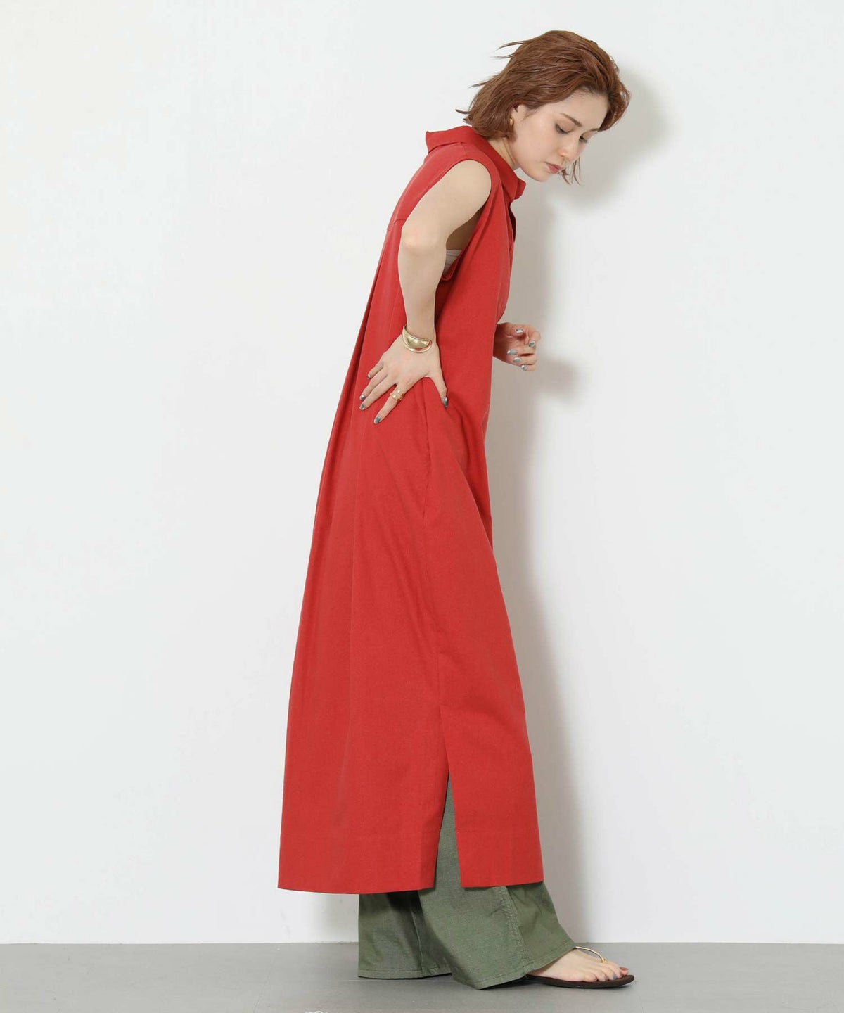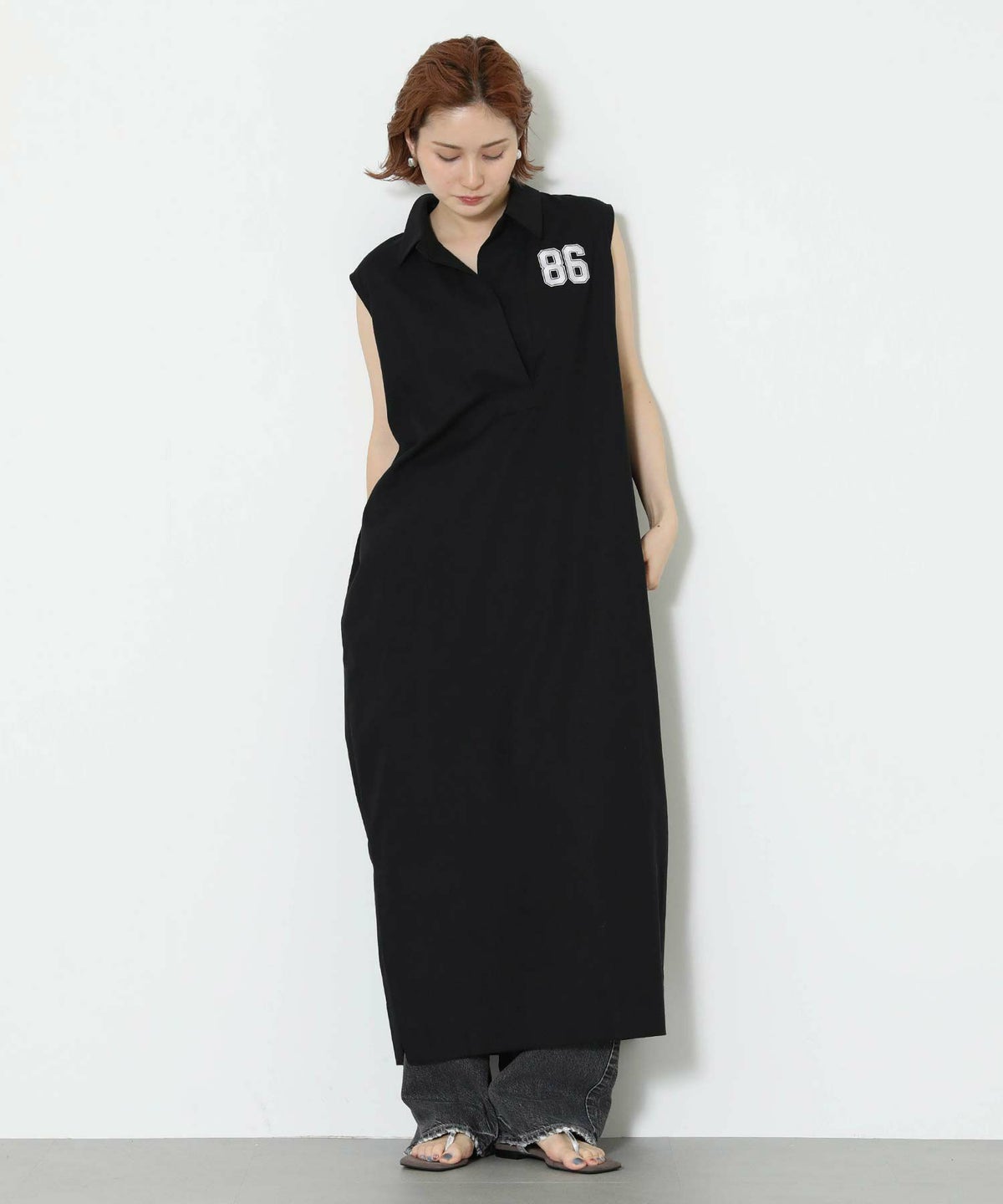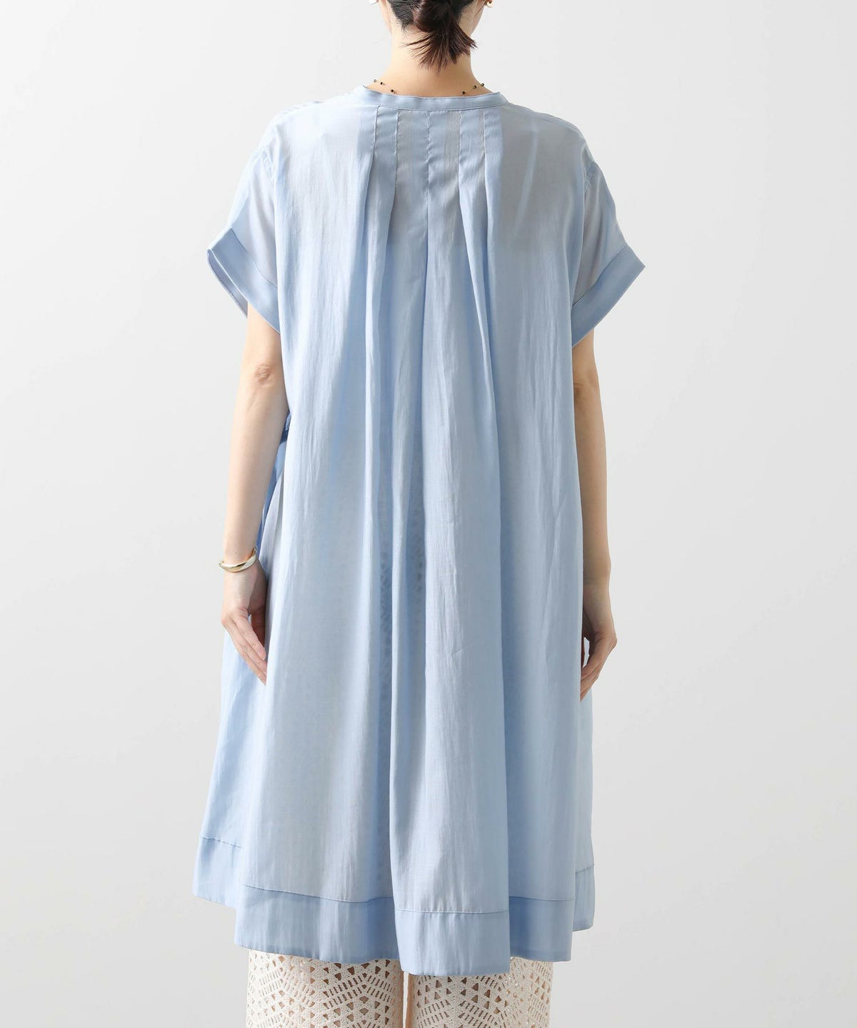86刺繍リネン混シャツワンピース