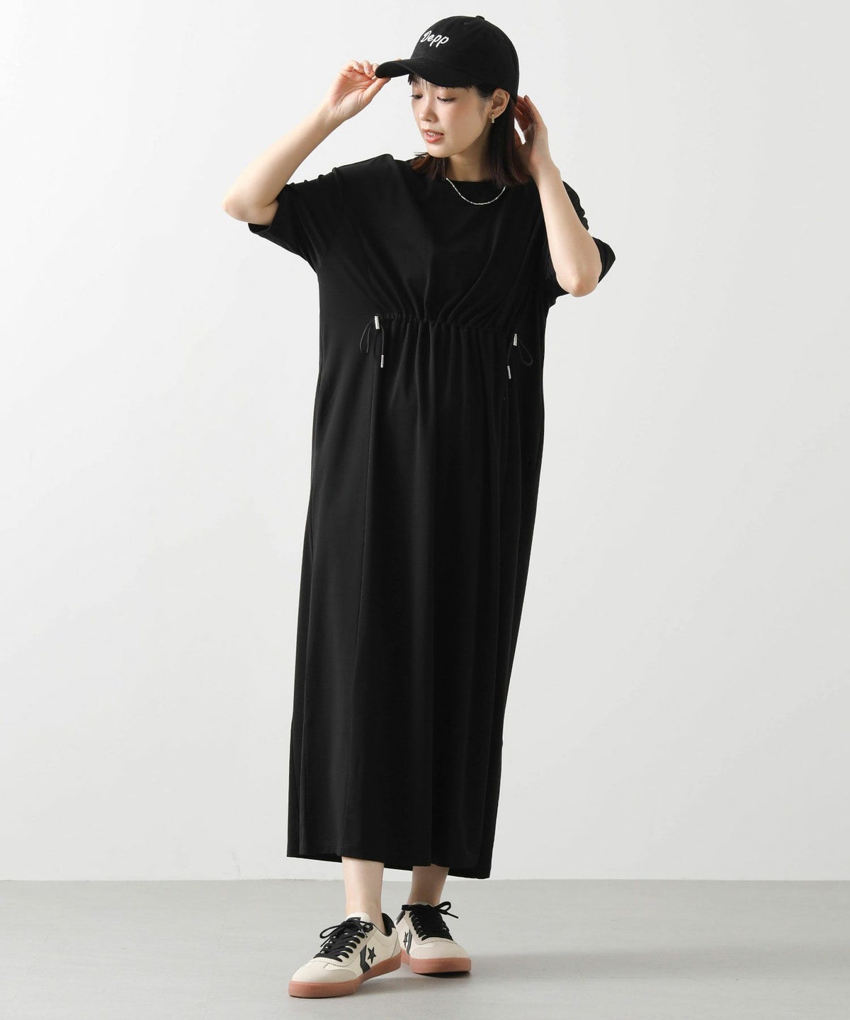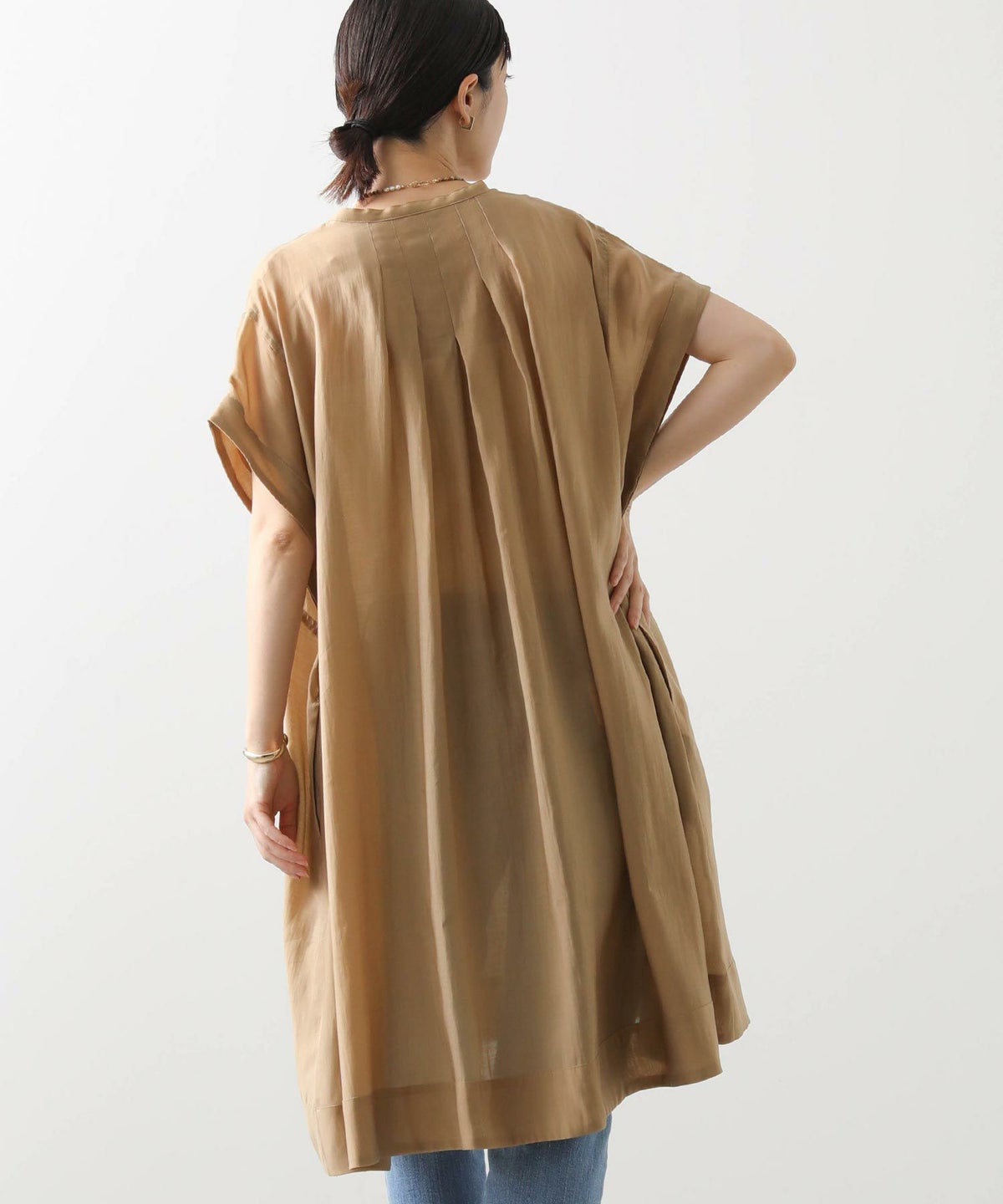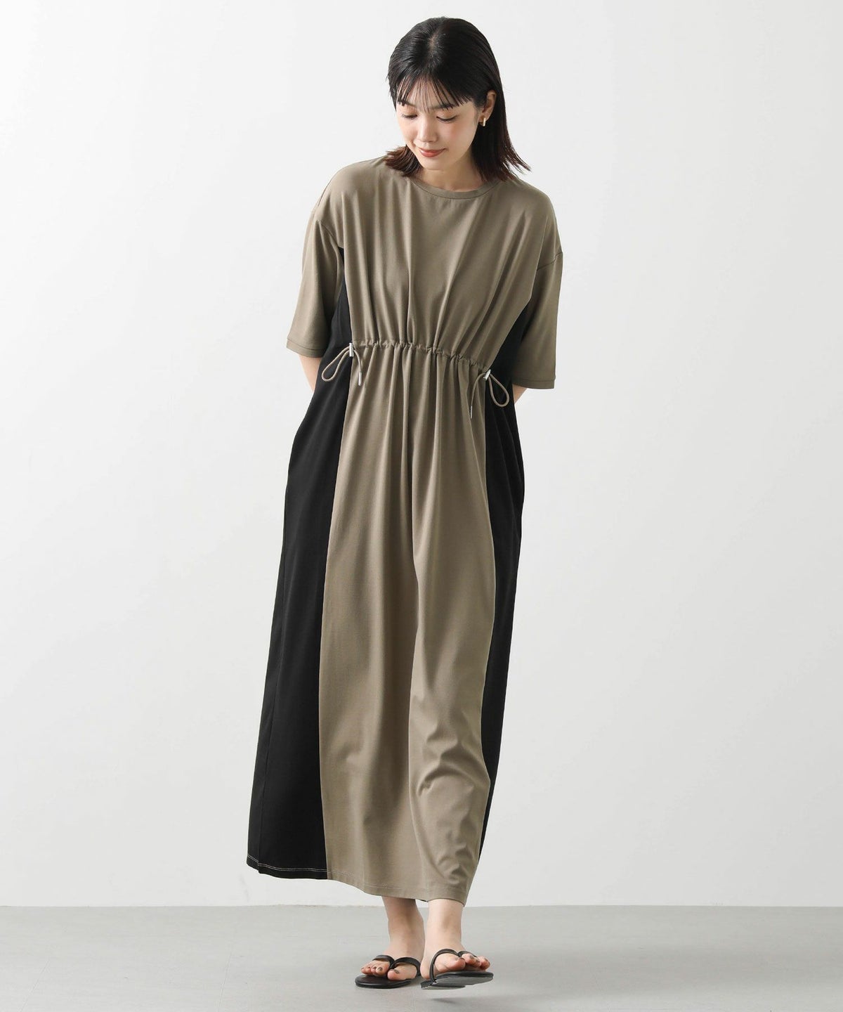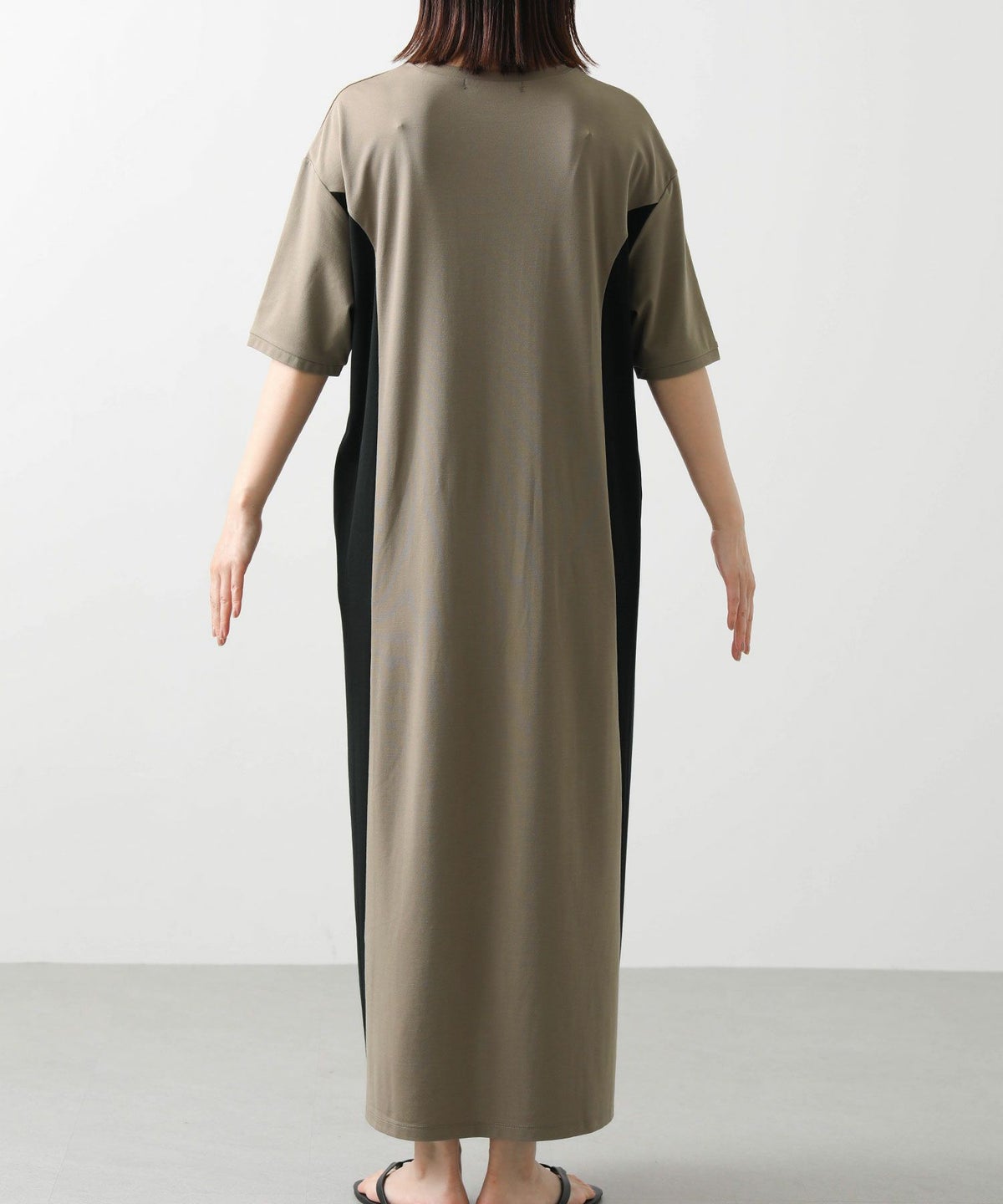 s.ドロストサイド切り替え5分袖ワンピース