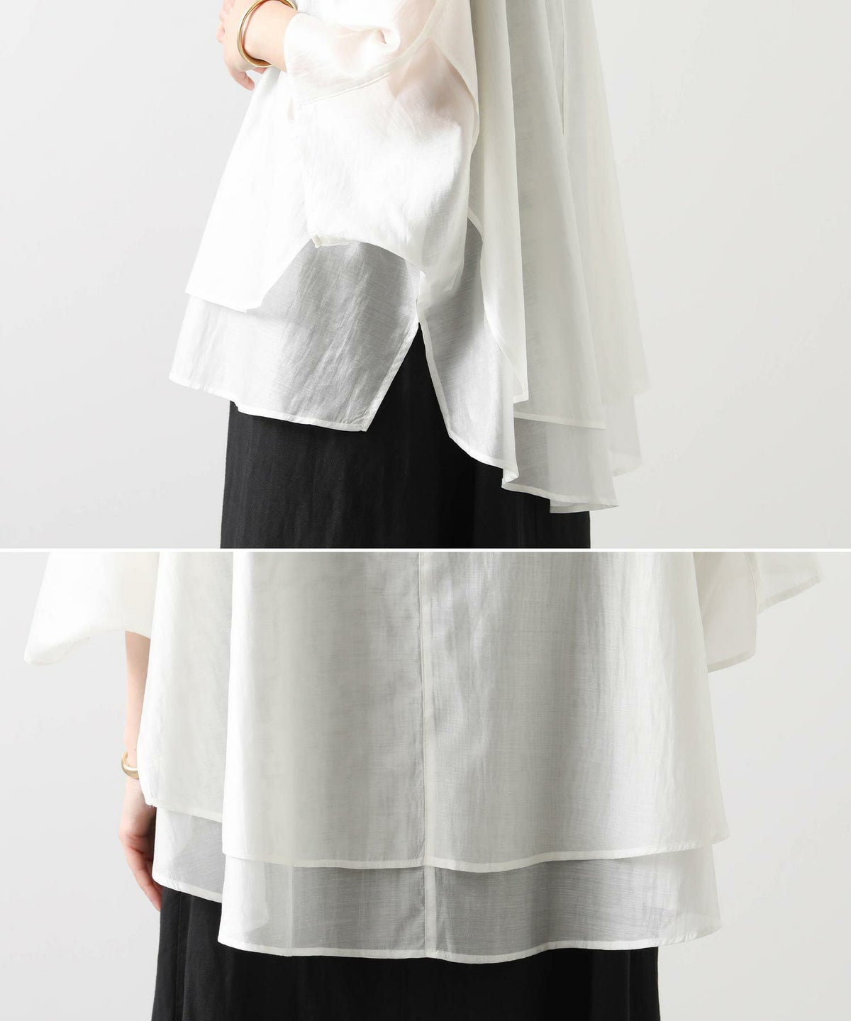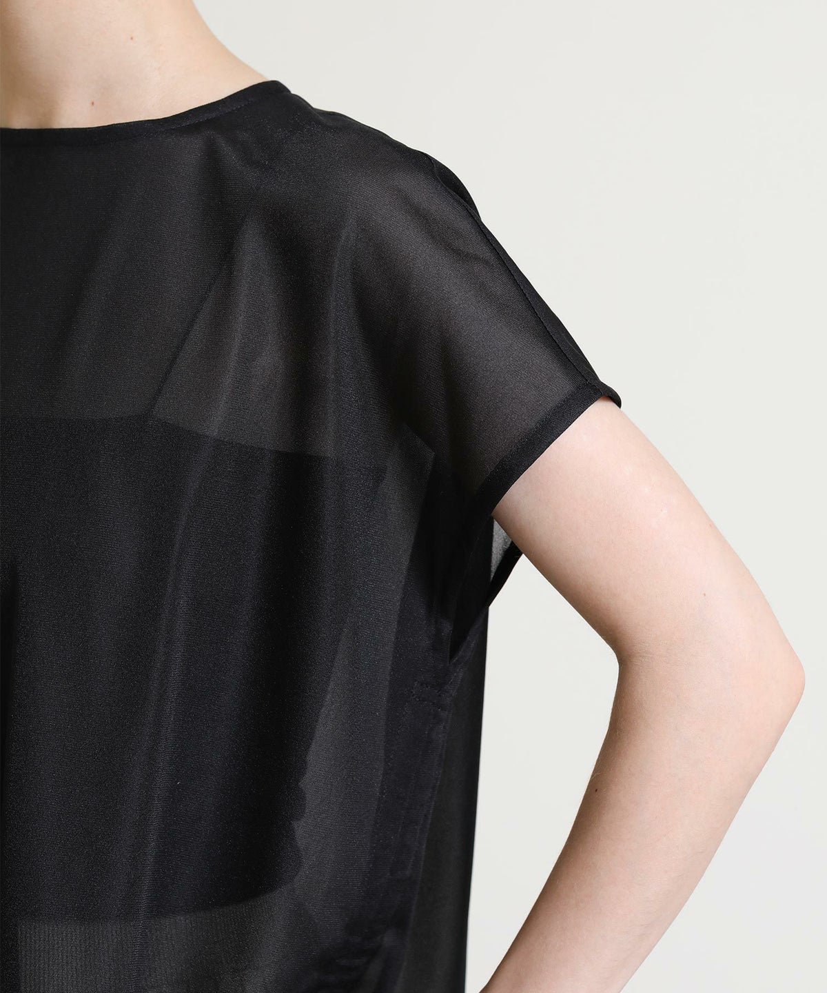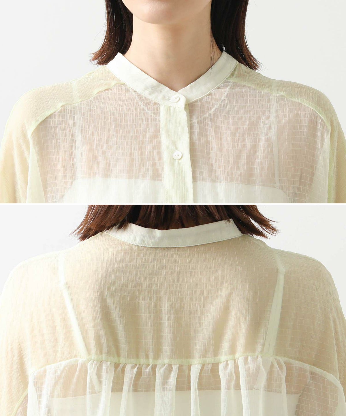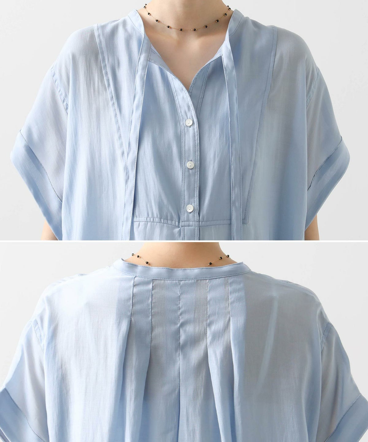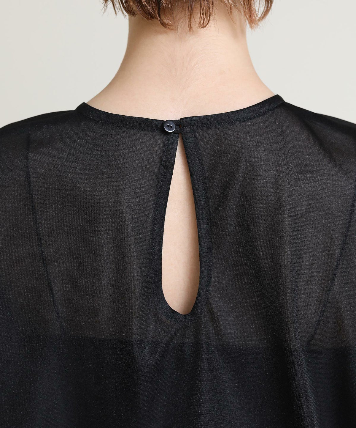 バイカラーシアーバンドネックブラウス