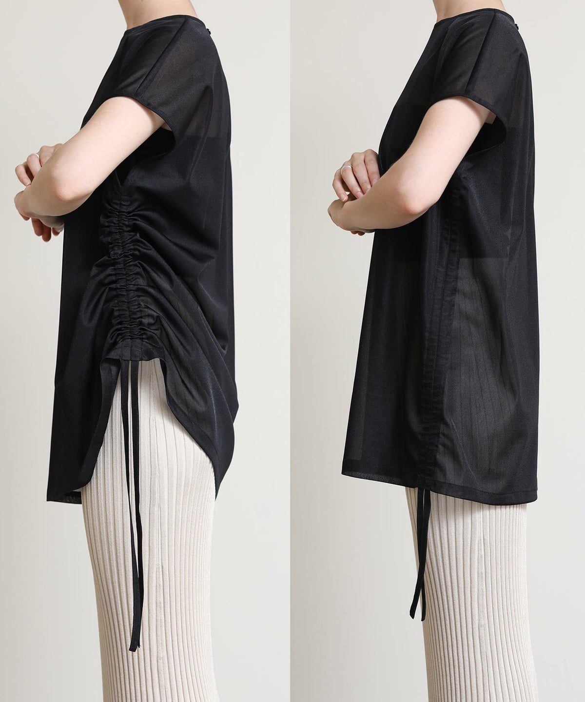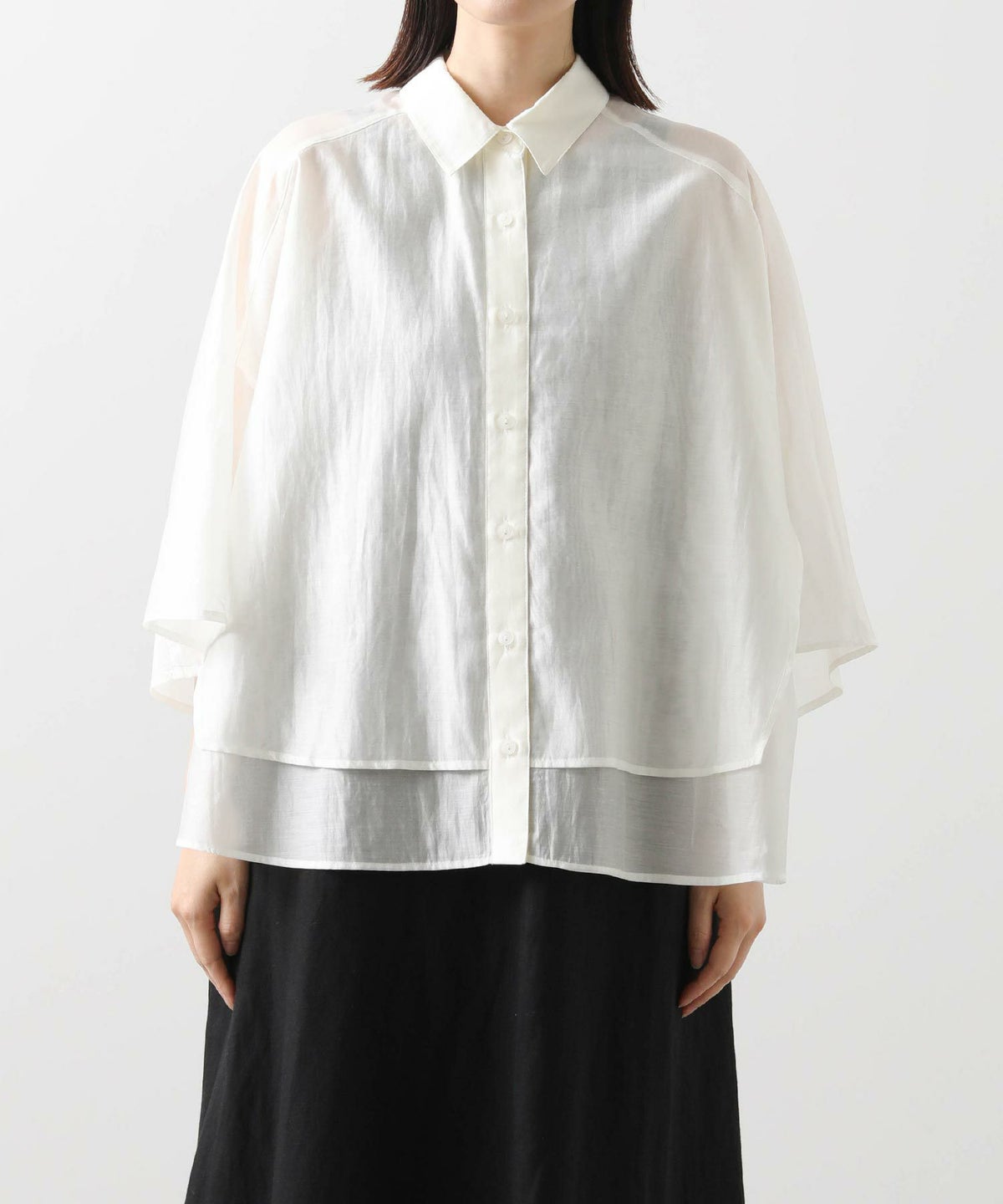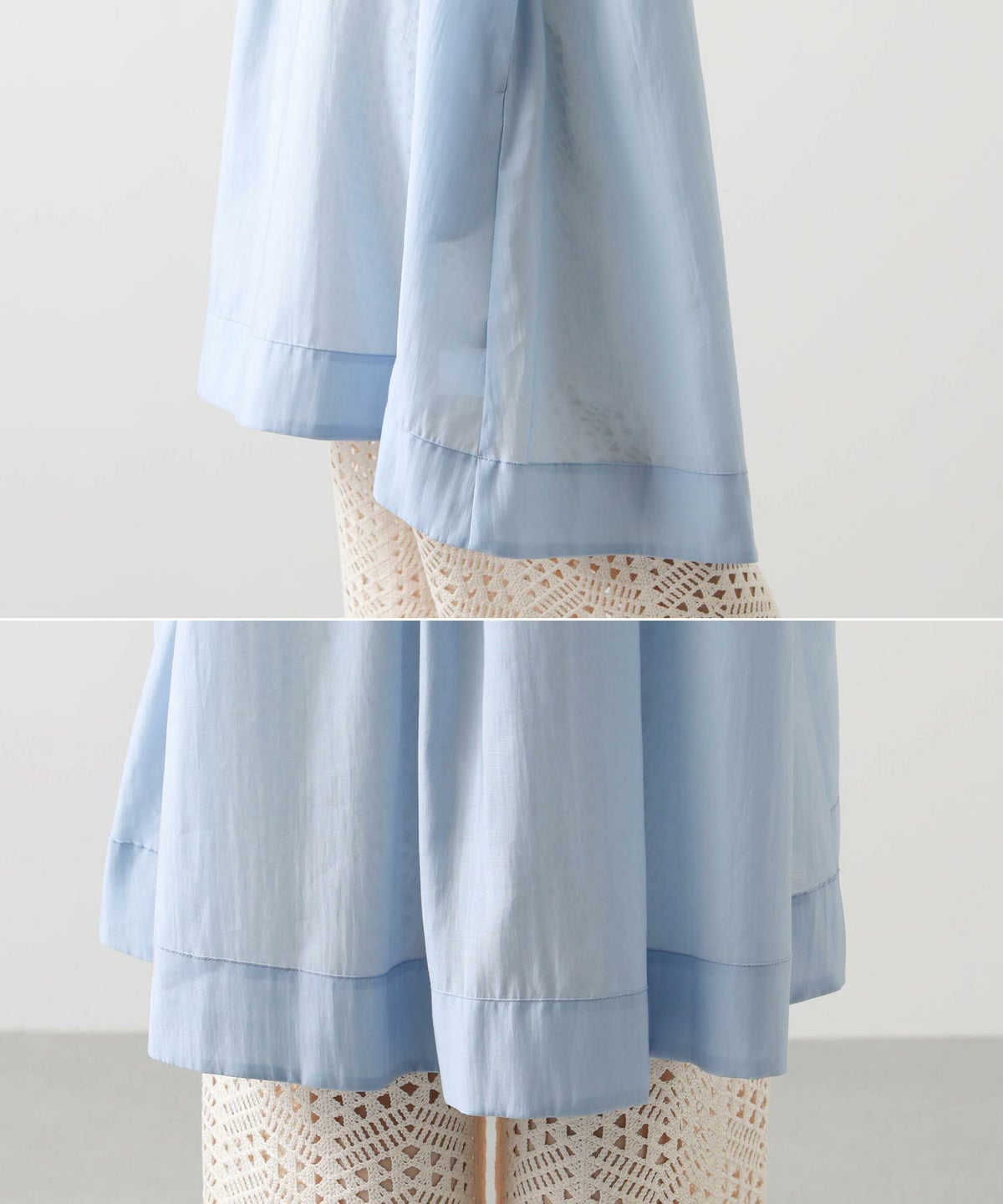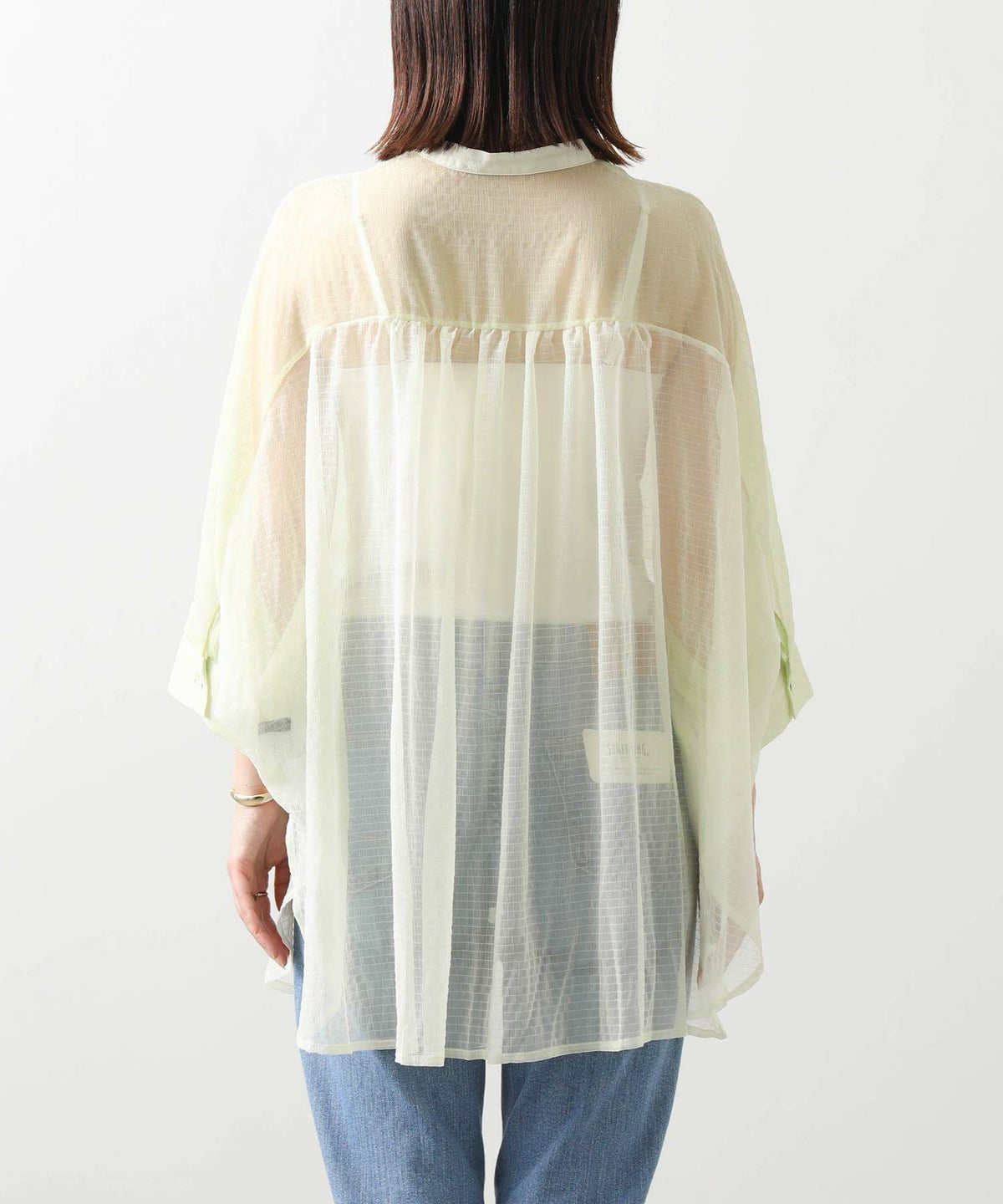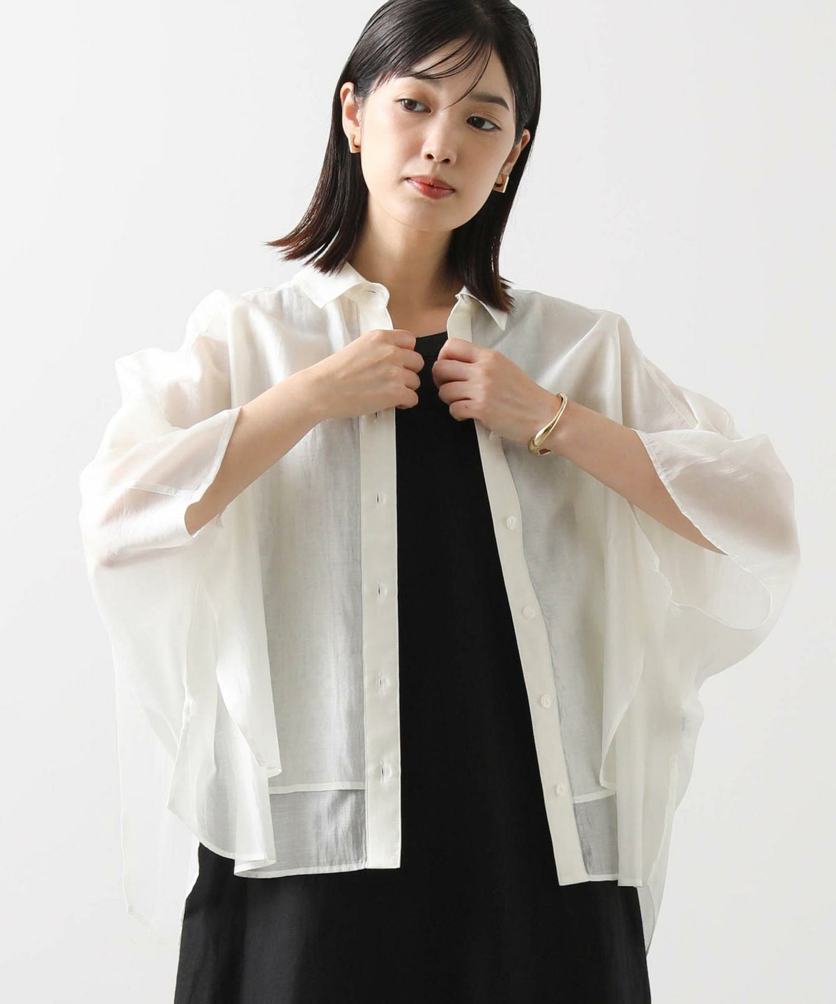 バイカラーシアーバンドネックブラウス