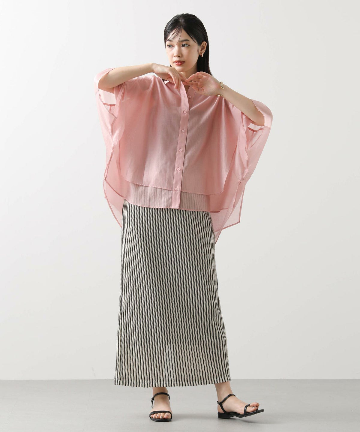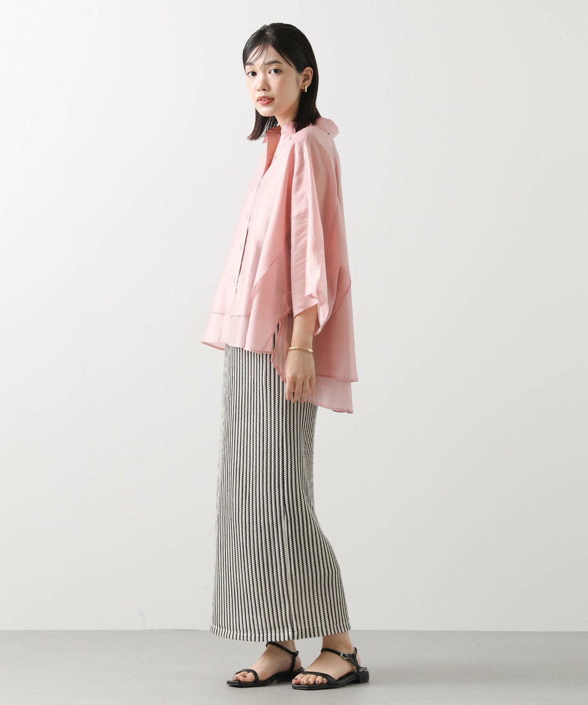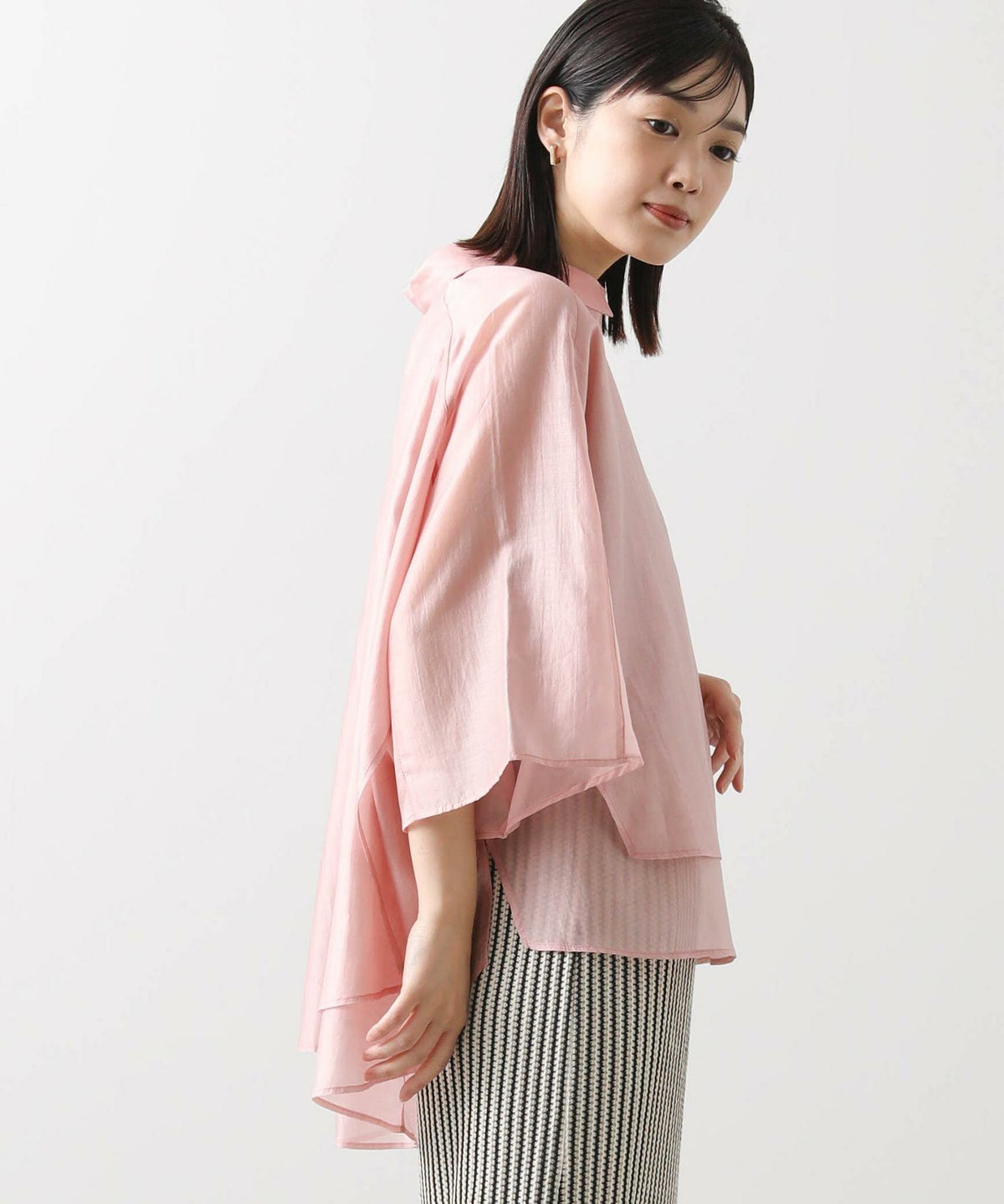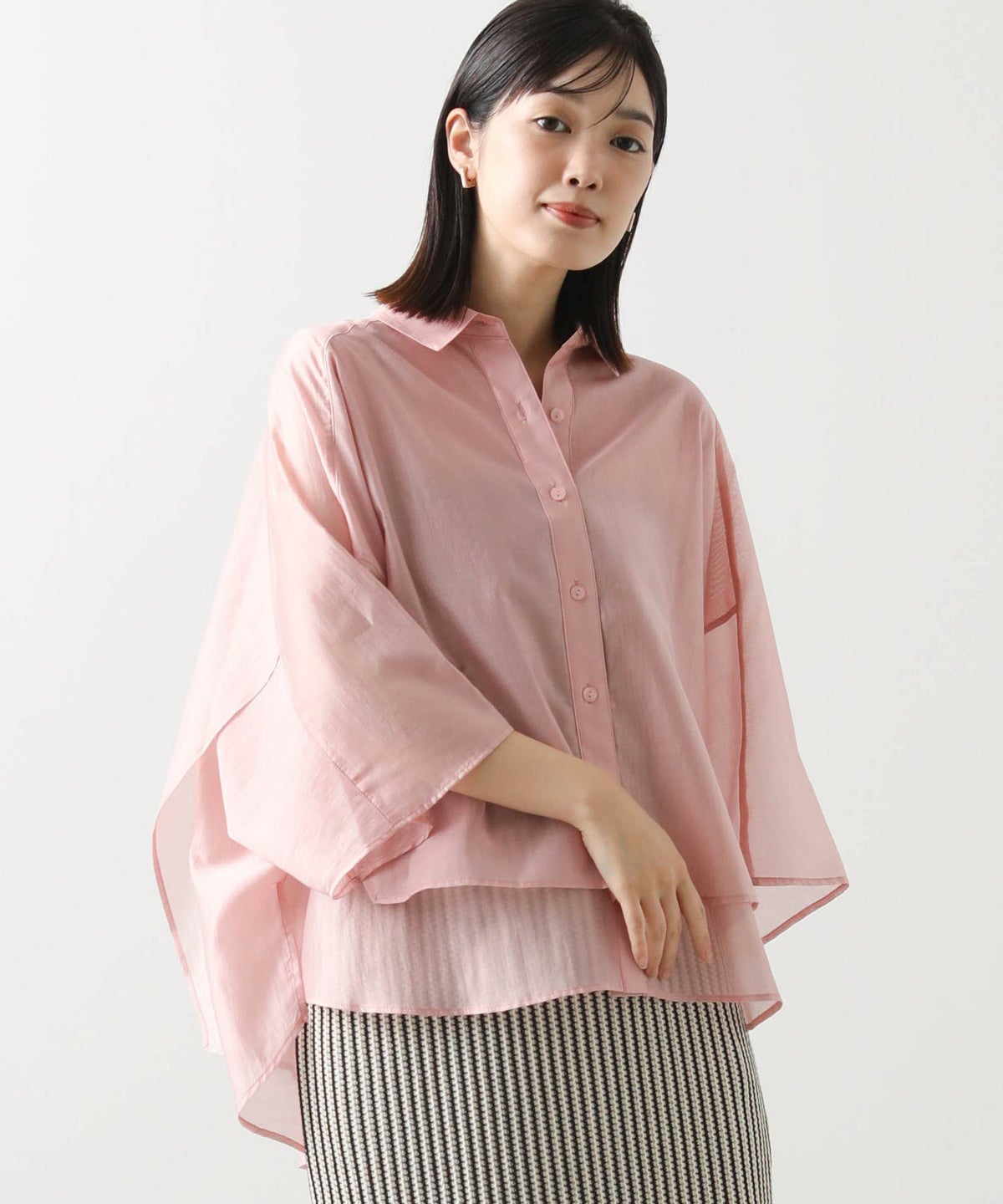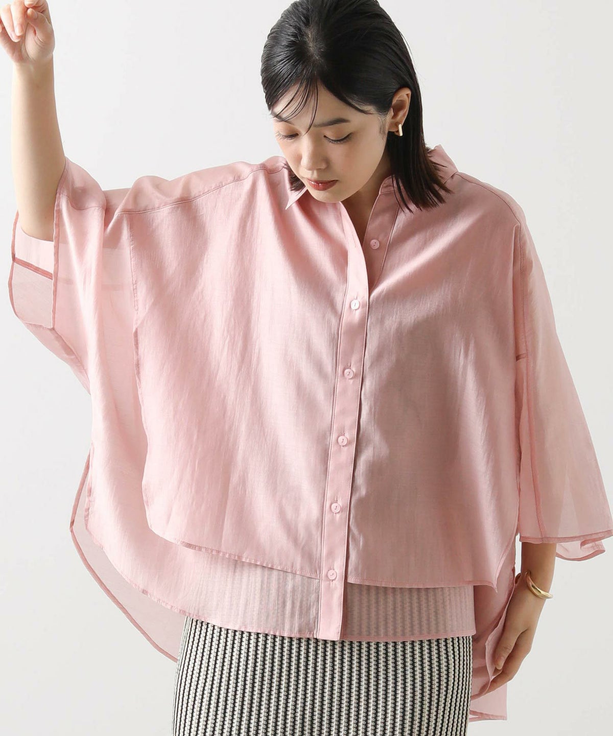 s.幾何カットジャガードフレンチスリーブシャツ