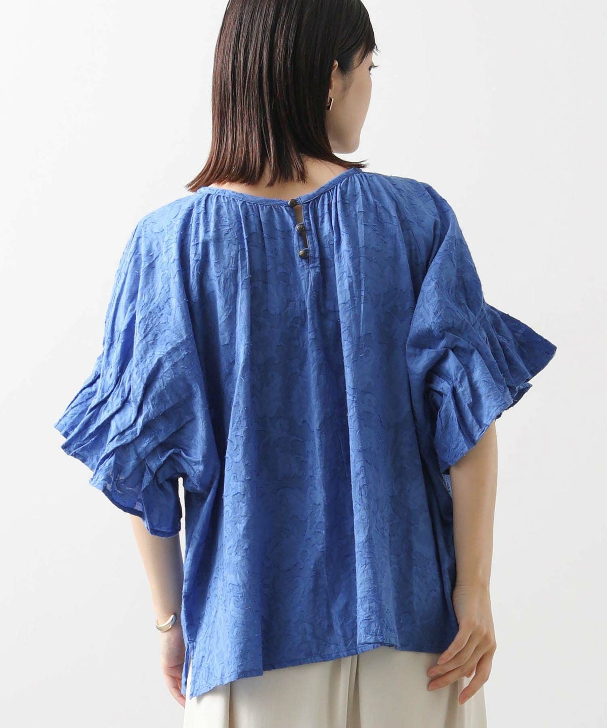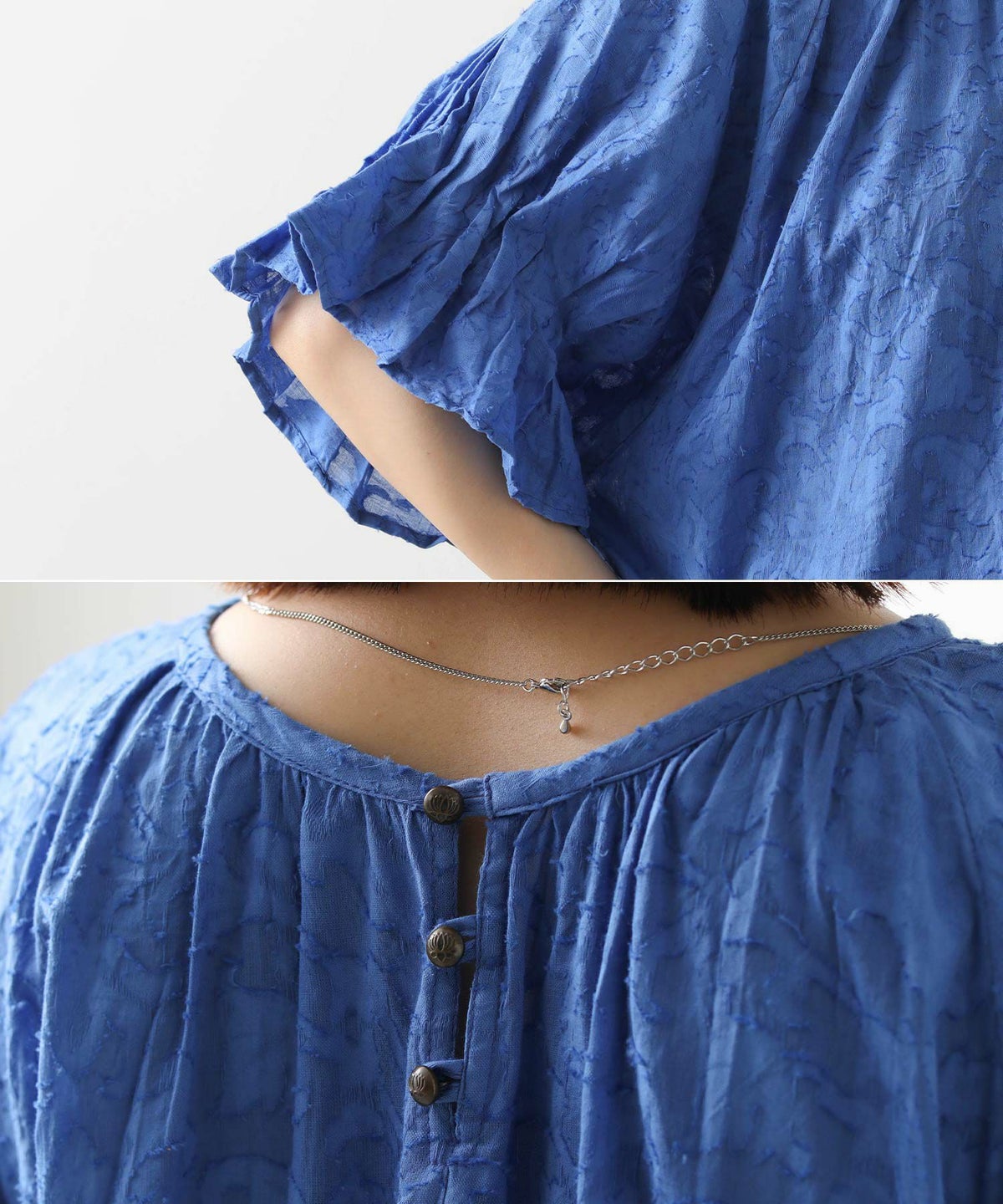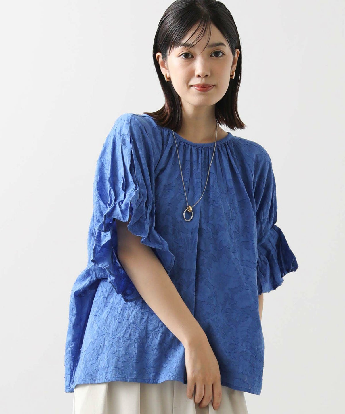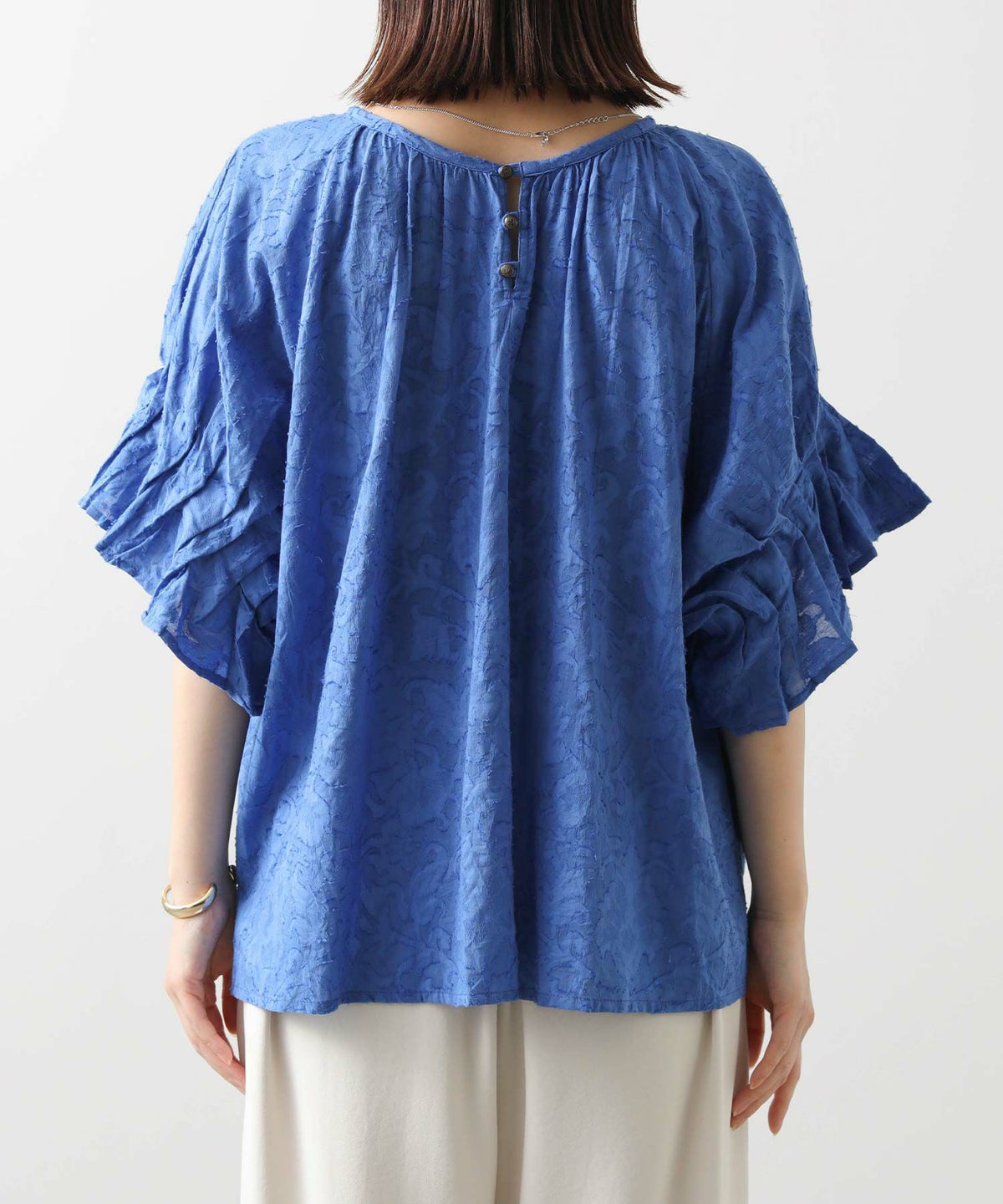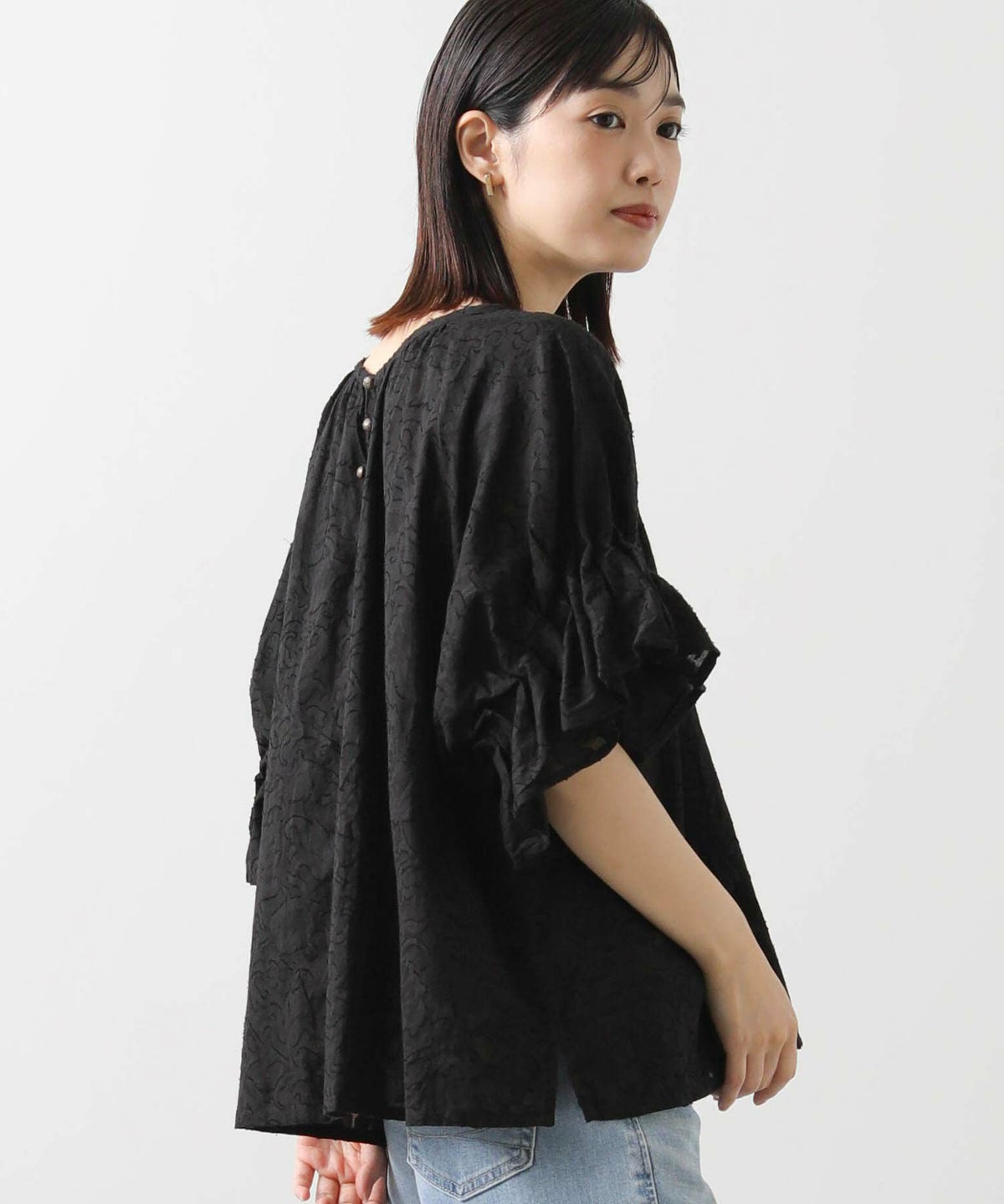 s.モール刺繍レイヤードフレンチスリーブブラウス