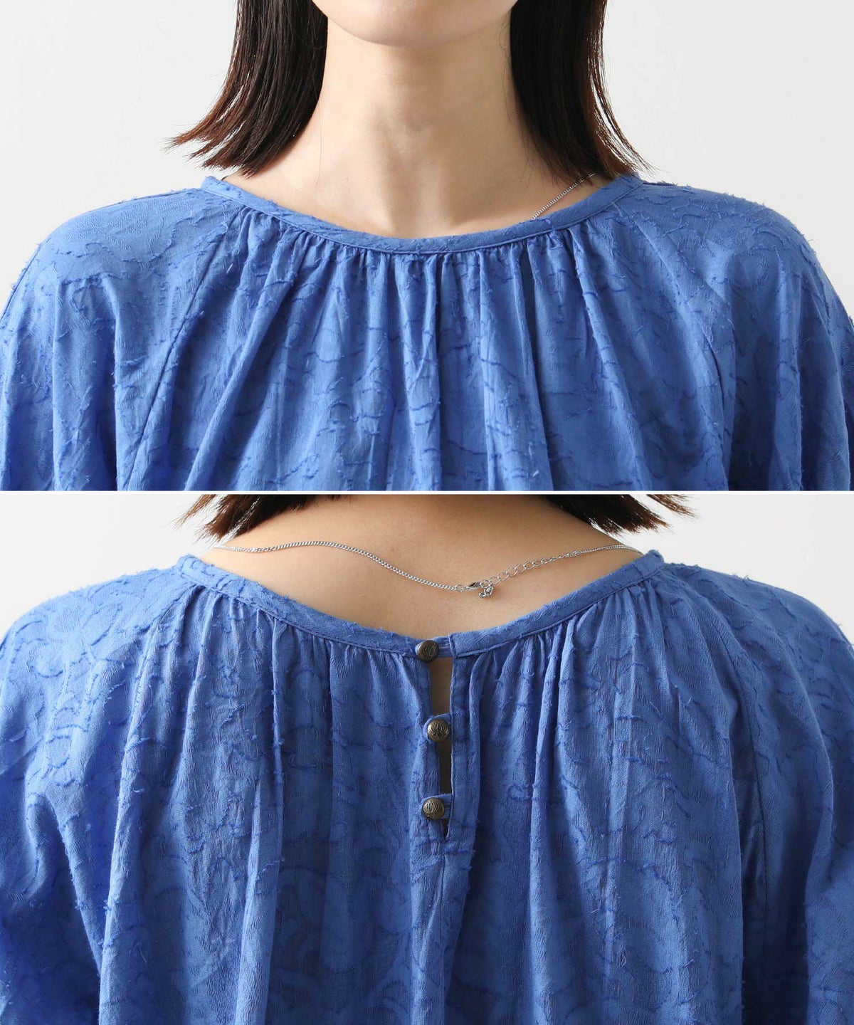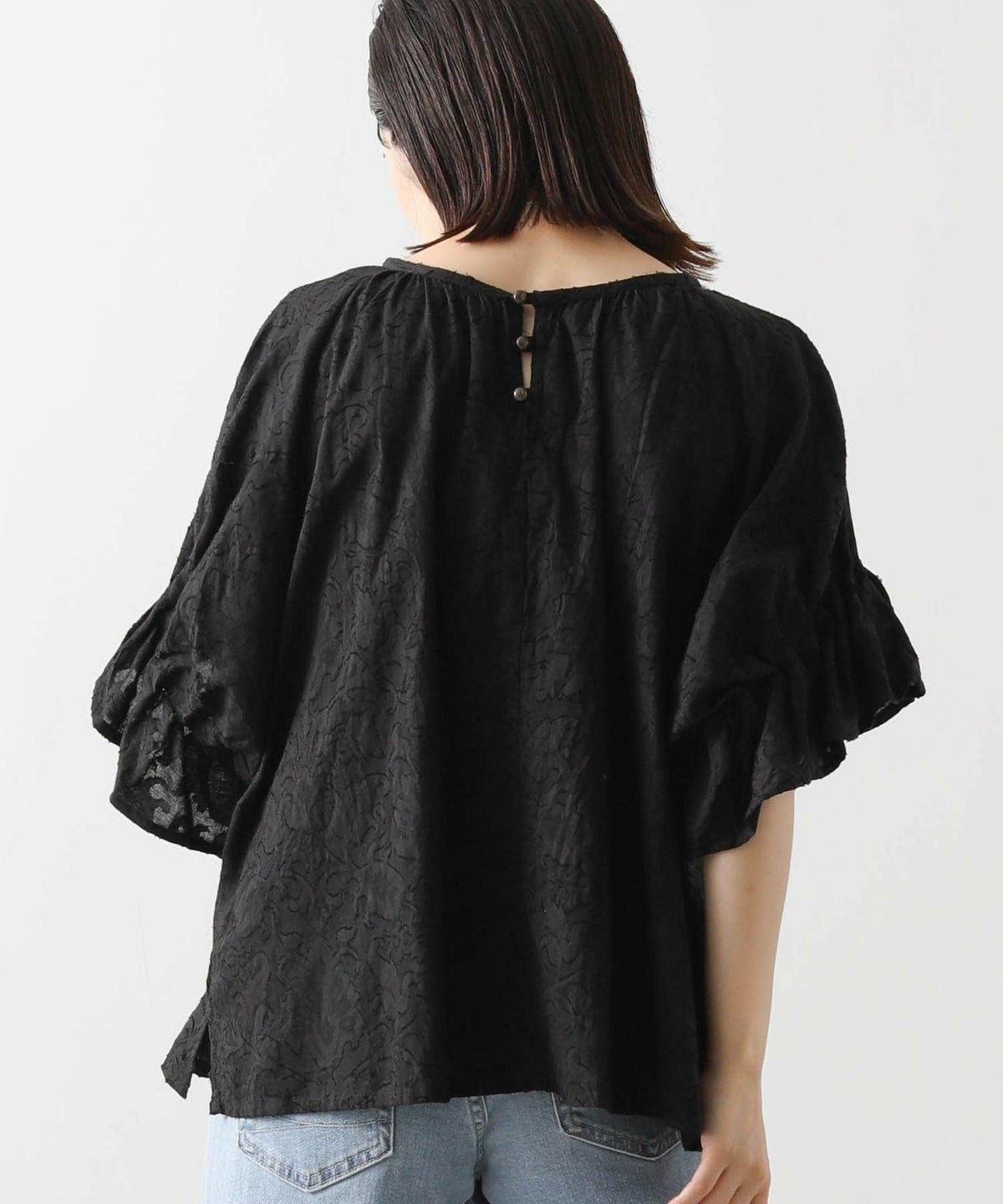 フラワージャガードタックスリーブブラウス