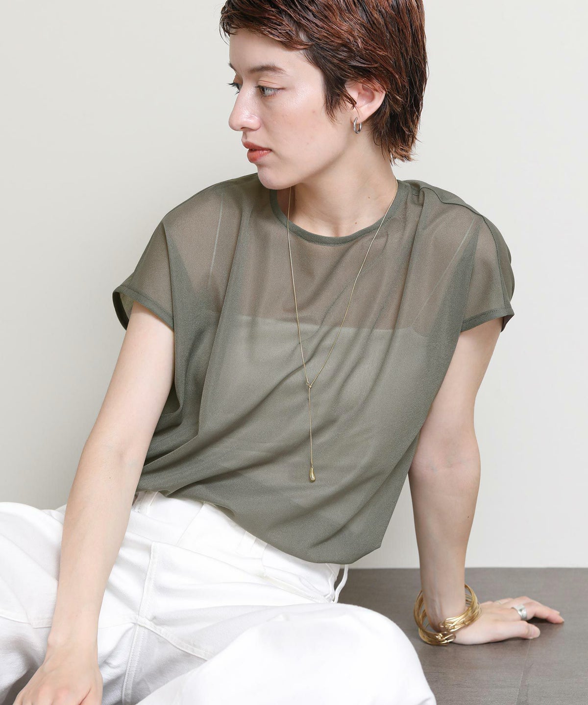 シアーロングレイヤードカットソー