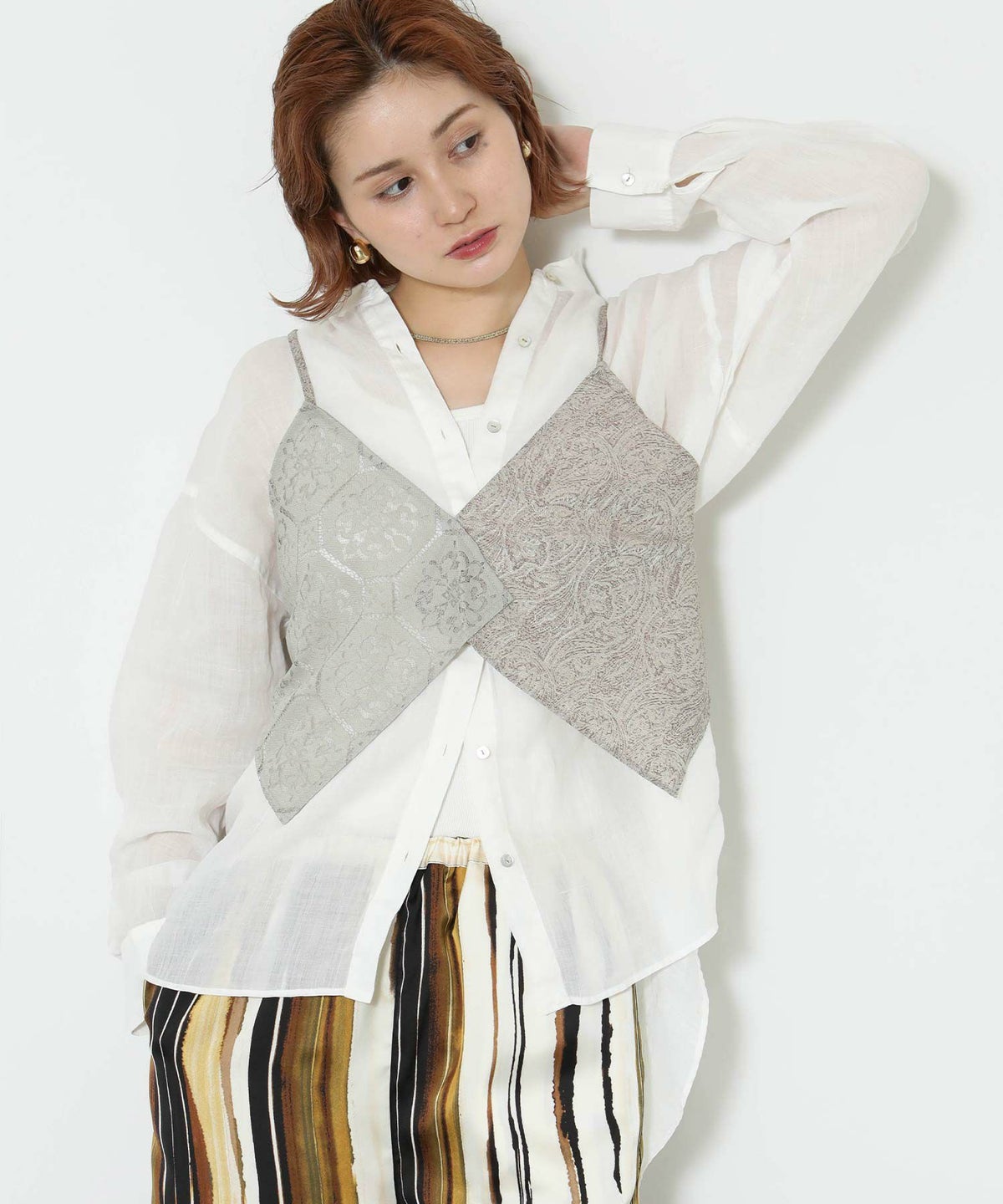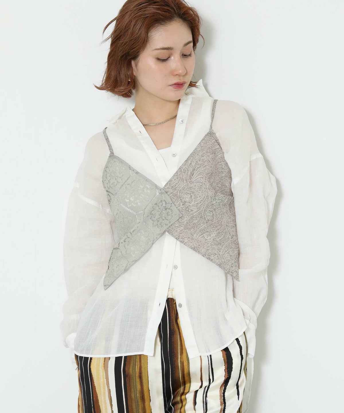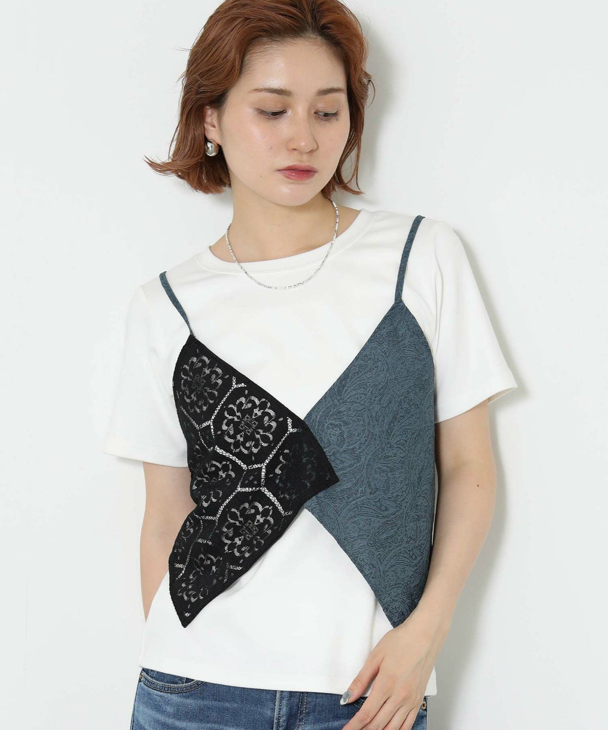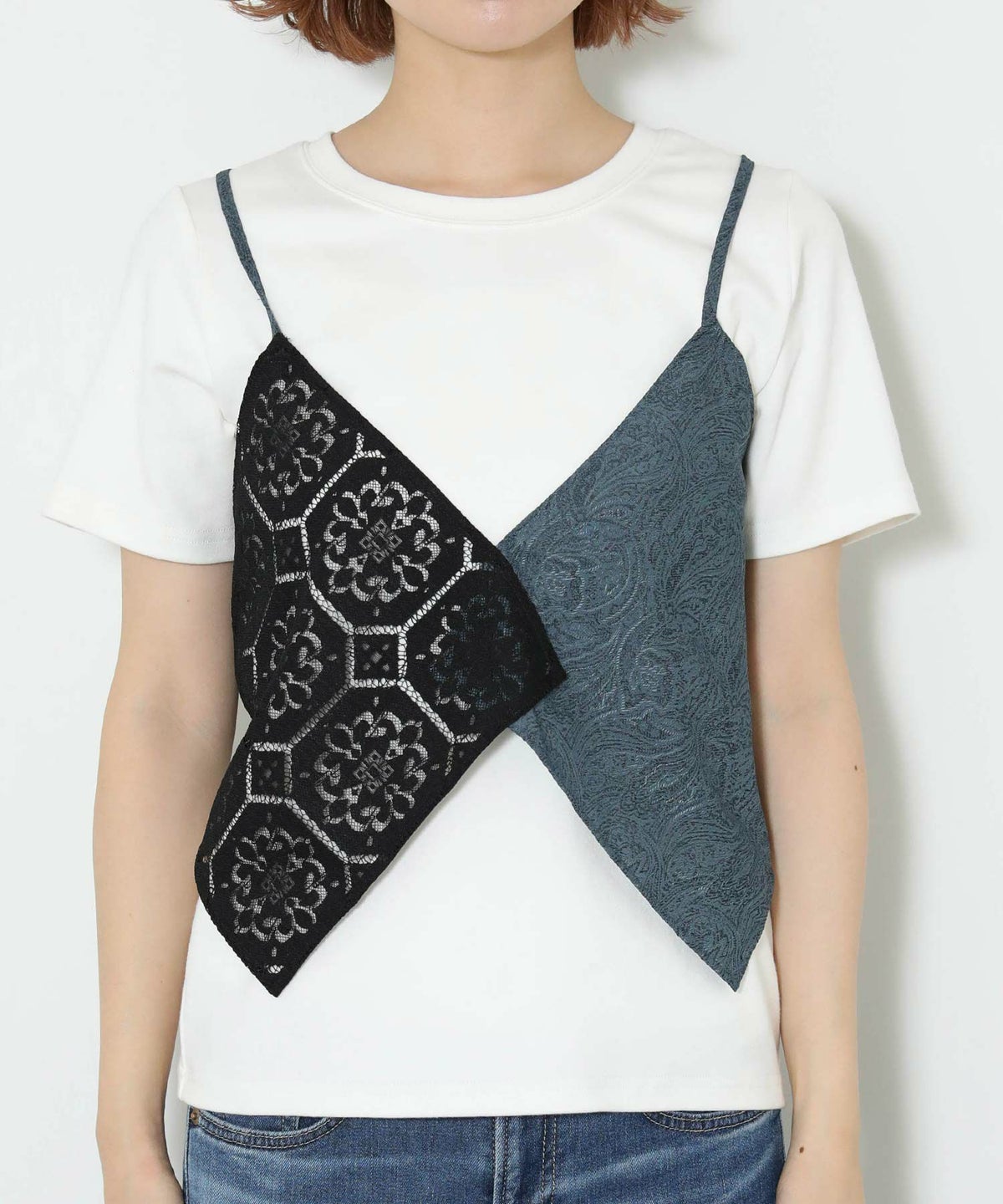 レース×ジャガードビスチェ