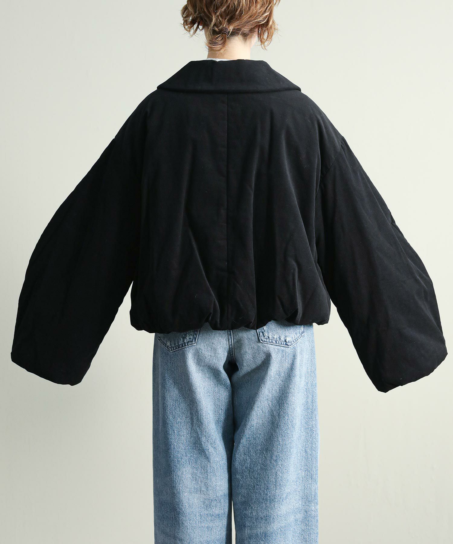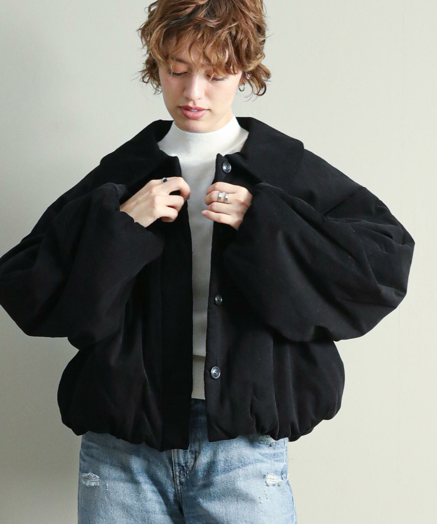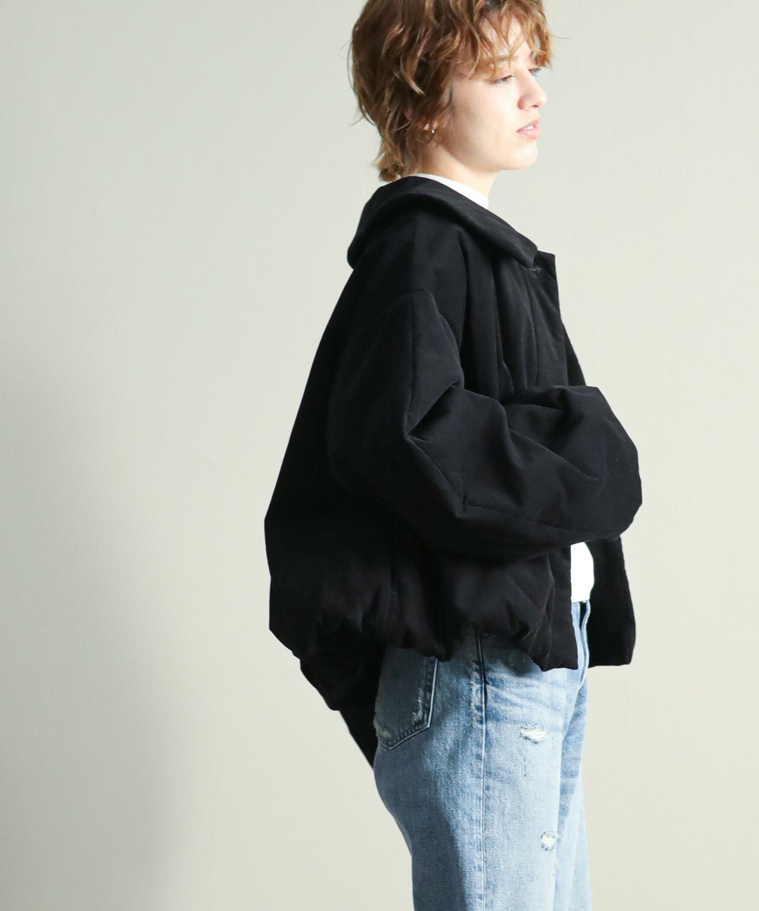 中綿入りなので軽量かつ通気性もありながら保温性にも優れており、気温の下がるこれからの季節にぴったりです。顔まわりを華奢に見せる大きめの襟と、MANOFらしいラウンドした袖のシルエットがポイント。裾と袖口のギャザーがニュアンスあるディテール。比翼仕立てで可愛らしくなりすぎず、大人っぽいスタイリングにマッチするデザインです。ショート丈なのでボリュームのあるワイドパンツやカーゴパンツ、ワンピースにも合わせやすいバランスで、ロングシーズン着用していただける一着です。
