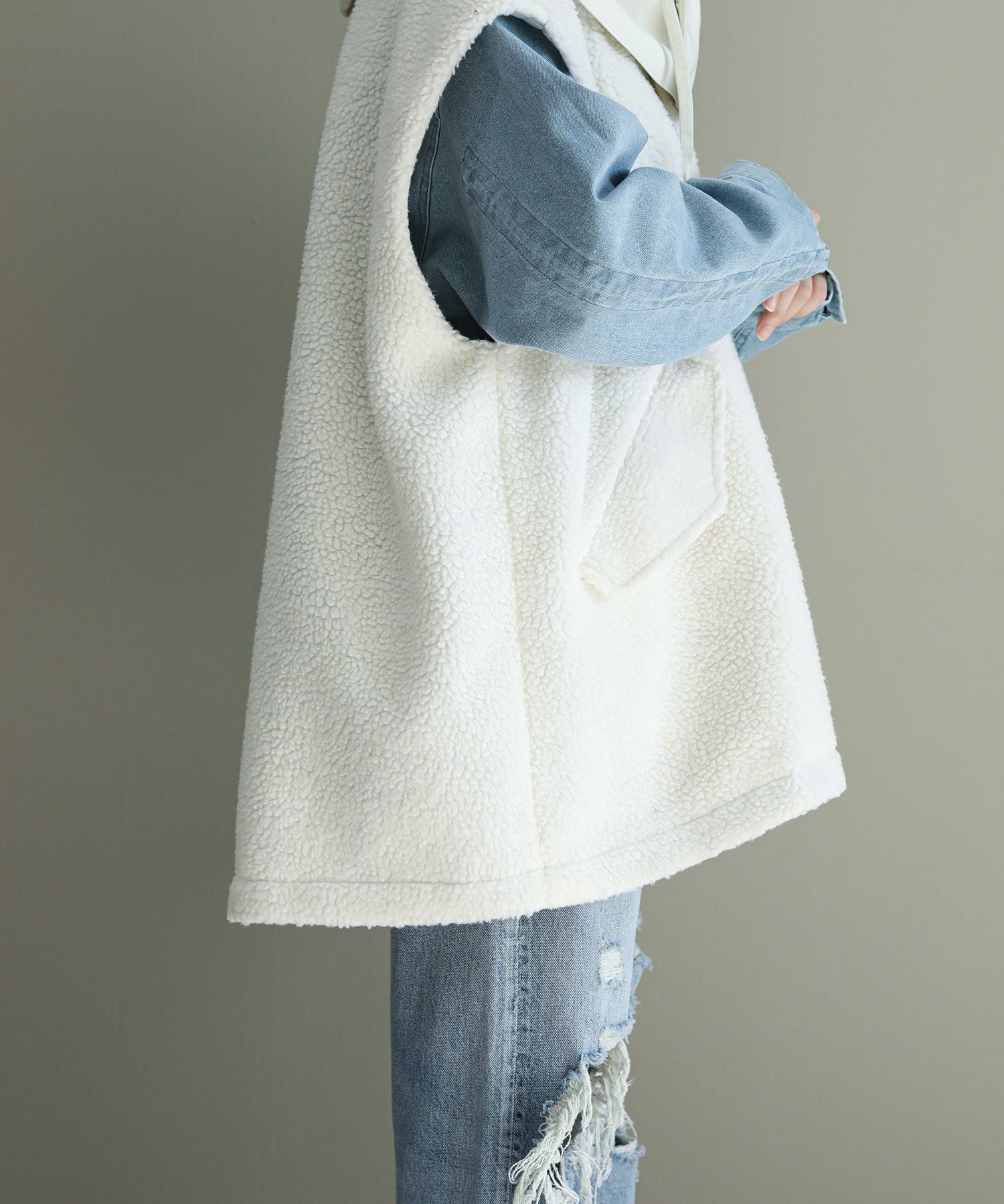 ボアとタフタのドッキングジレ。