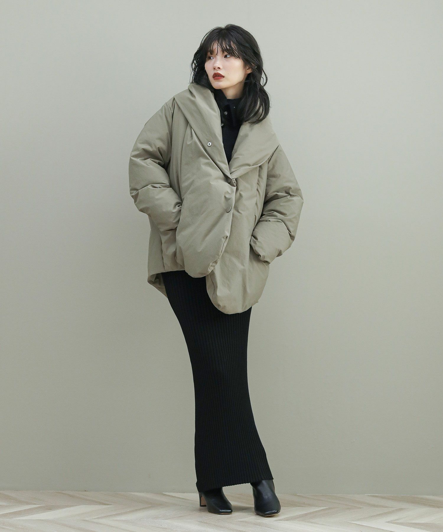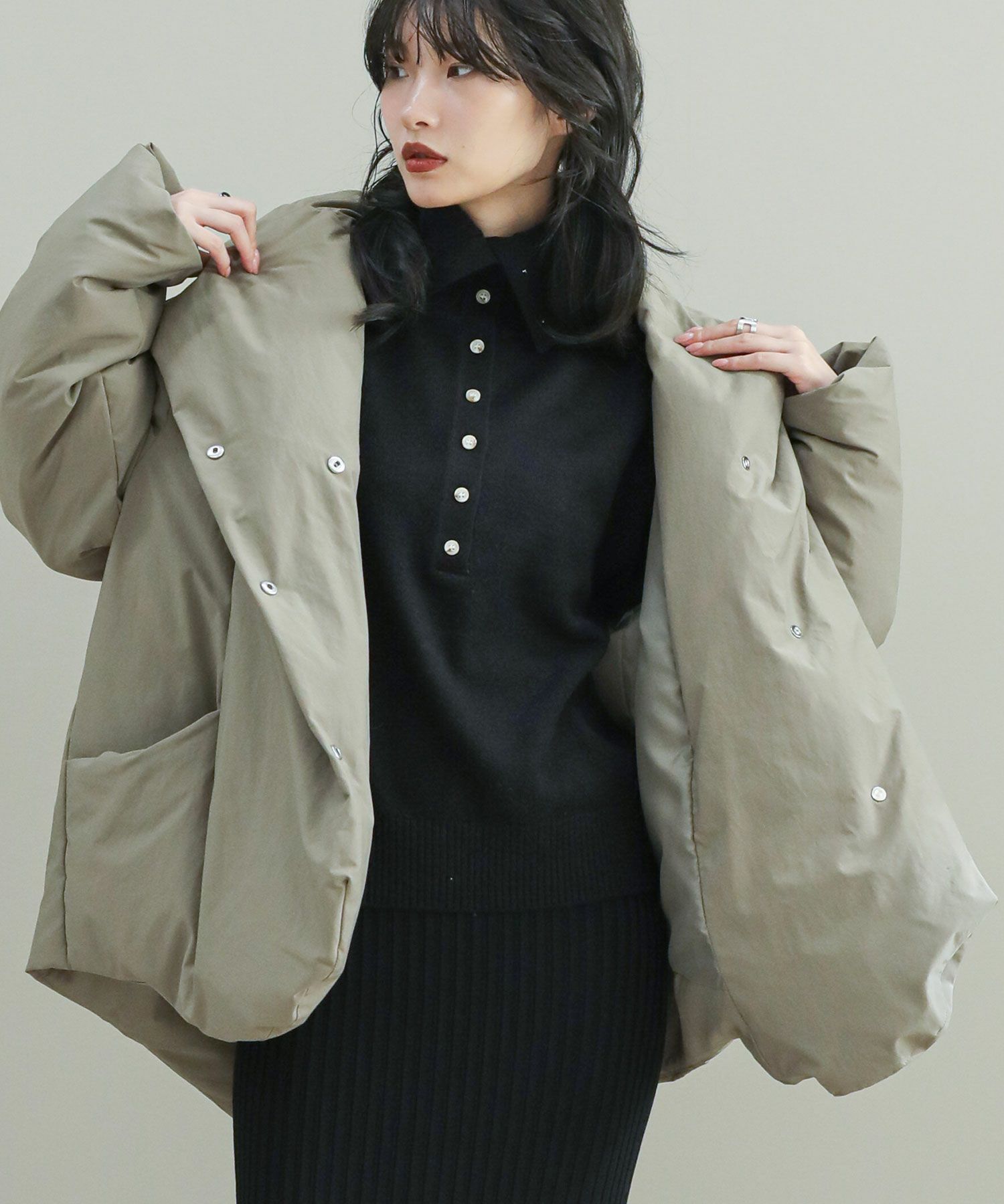 腰回りをカバーするミディ丈で防寒性も◎前後でダウンのステッチを変化させ、ベーシックながらも遊びのあるデザインがポイントです。マットな素材感がスポーティさを抑え、きれいめスタイルとも好相性の1着です。