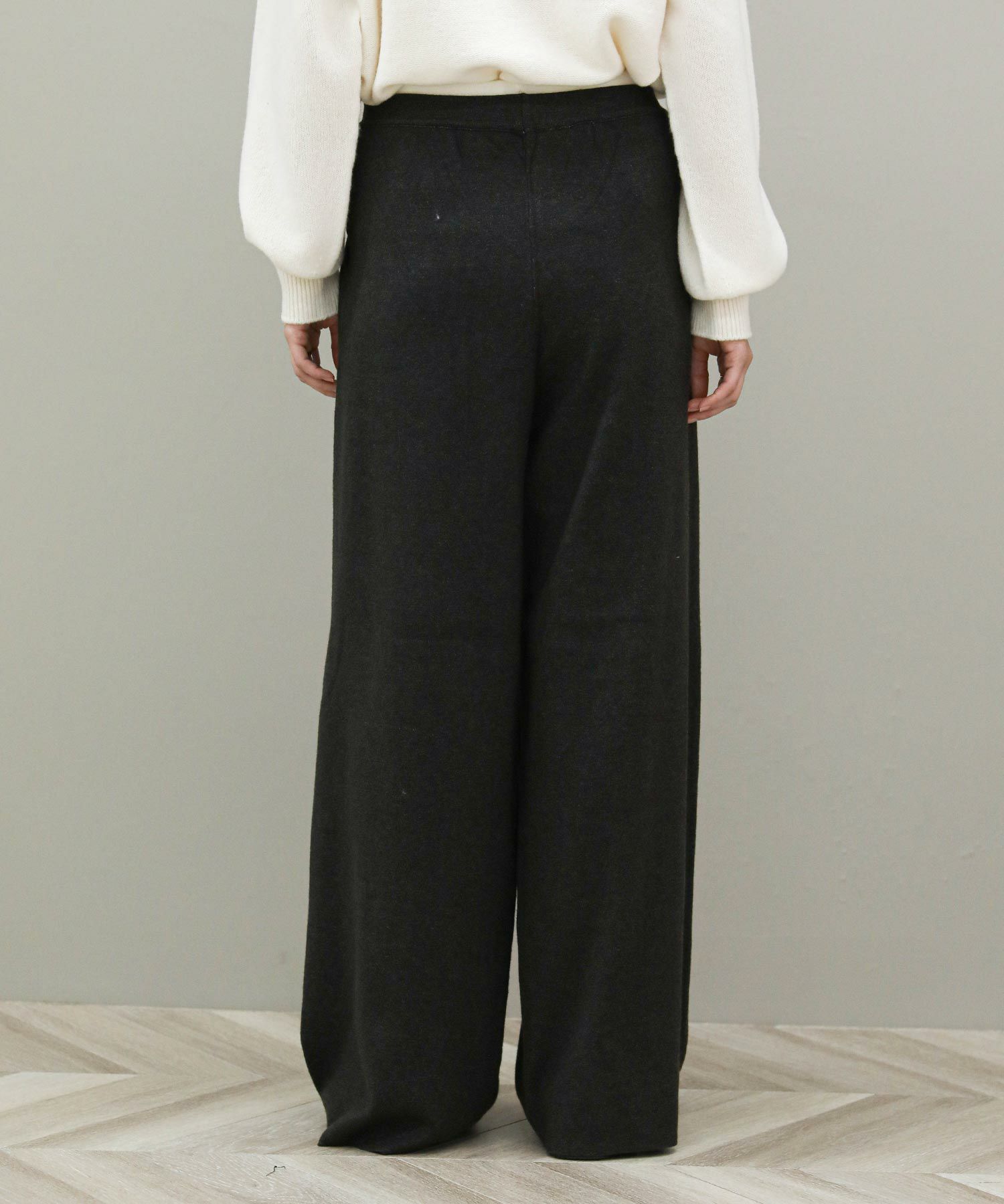 二重になったウエストのデザインがポイントのニットパンツ。