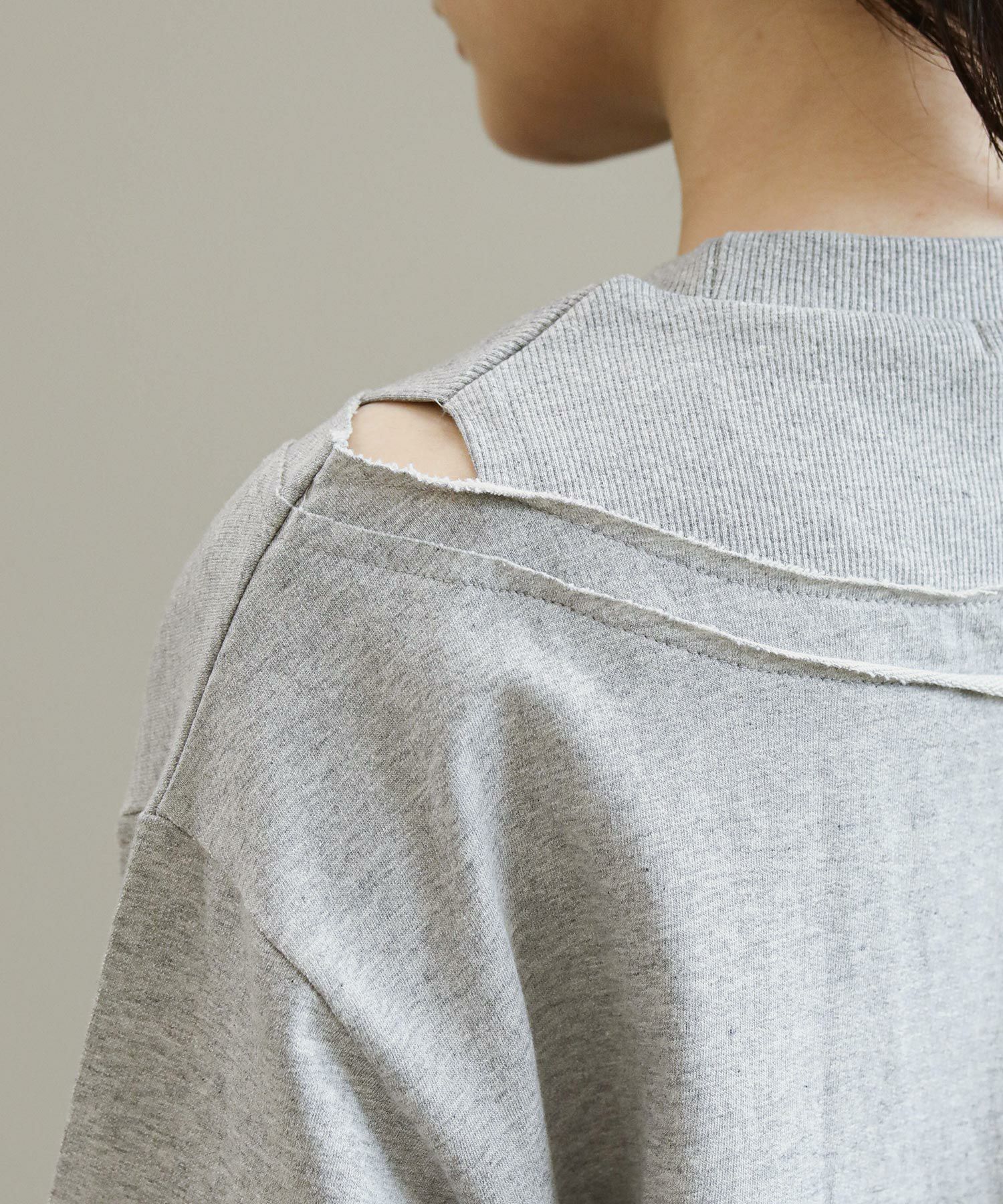 肩部分のさりげない肌見せがポイント。刺繍のエンブレムとロゴがカジュアルすぎず大人ぽい雰囲気に。ベーシックなボトムと合わせてもスタイルが決まるデザイントップスです。