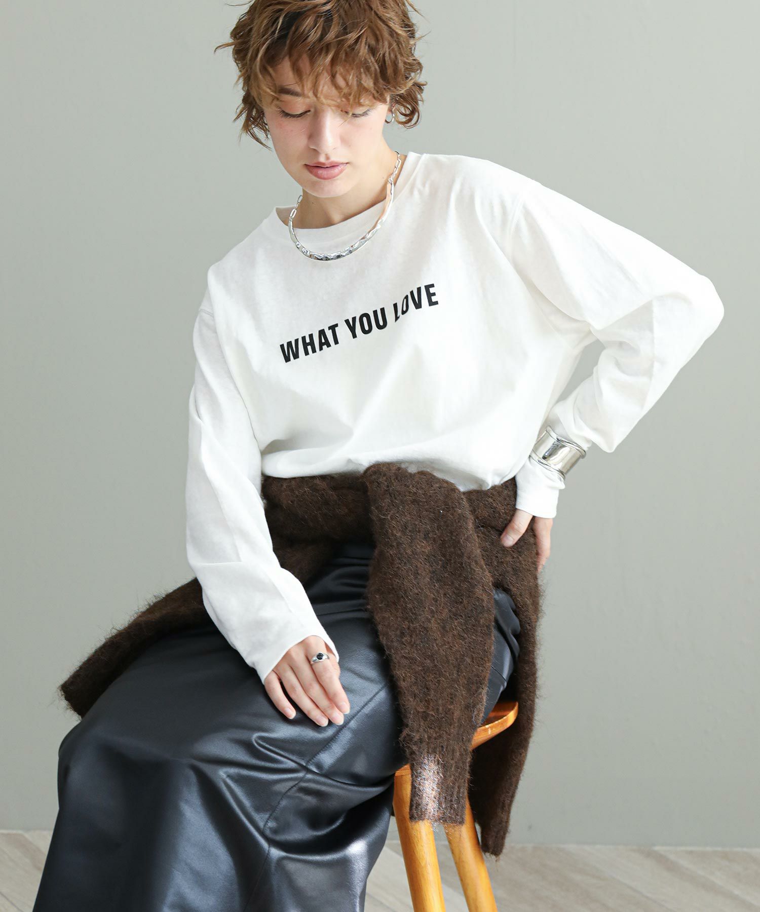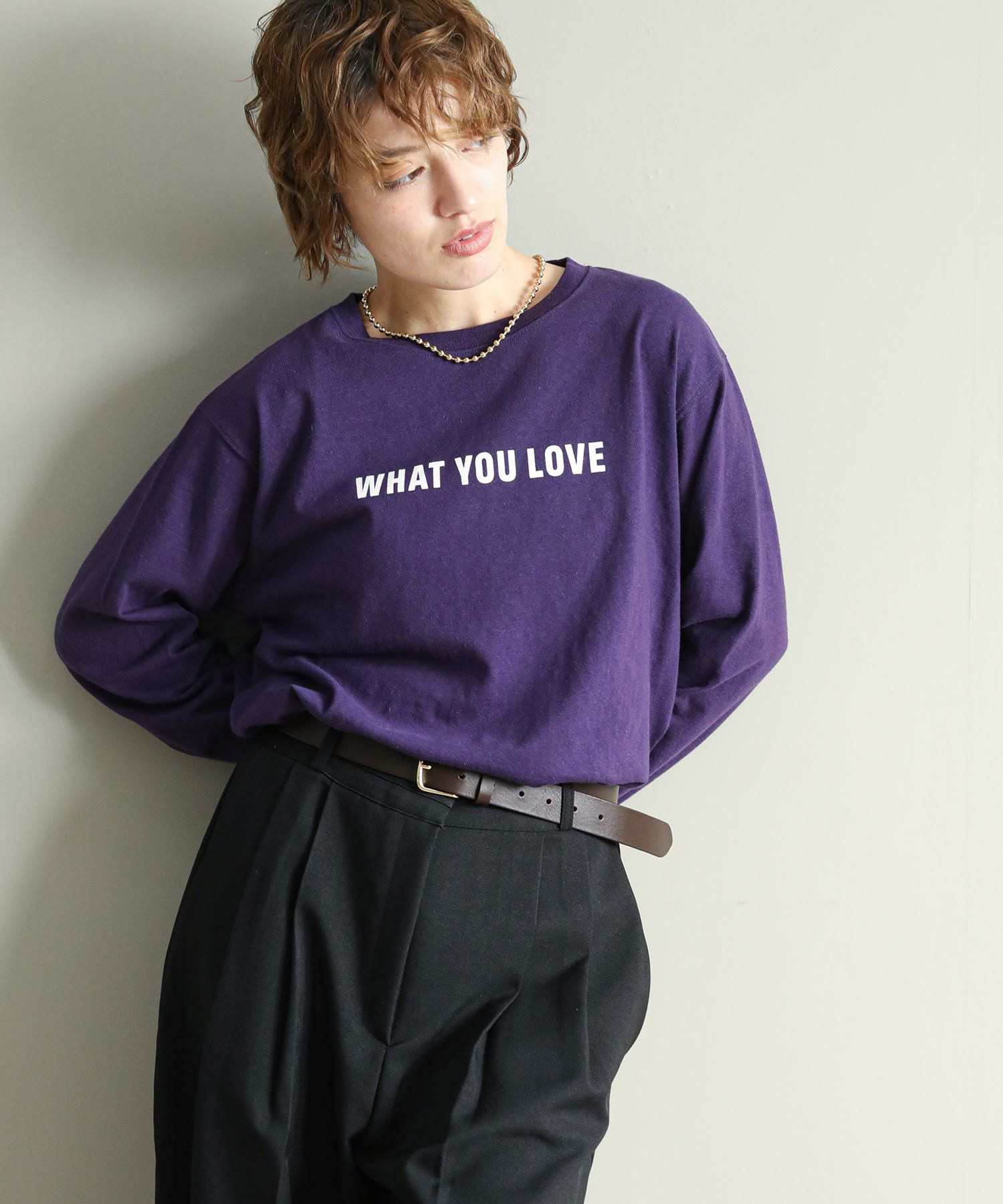 ヴィンテージライクな柔らかい生地を使用しています。裾をラウンドにしているのでニットやスウェットとレイヤードして裾から覗かせても◎今シーズンのロゴテーマは80’Sニューヨーク。フロントのロゴの「あなたの好きなもの教えて」の問いに架空のニューヨーカーの女の子がバックプリントで答えています。