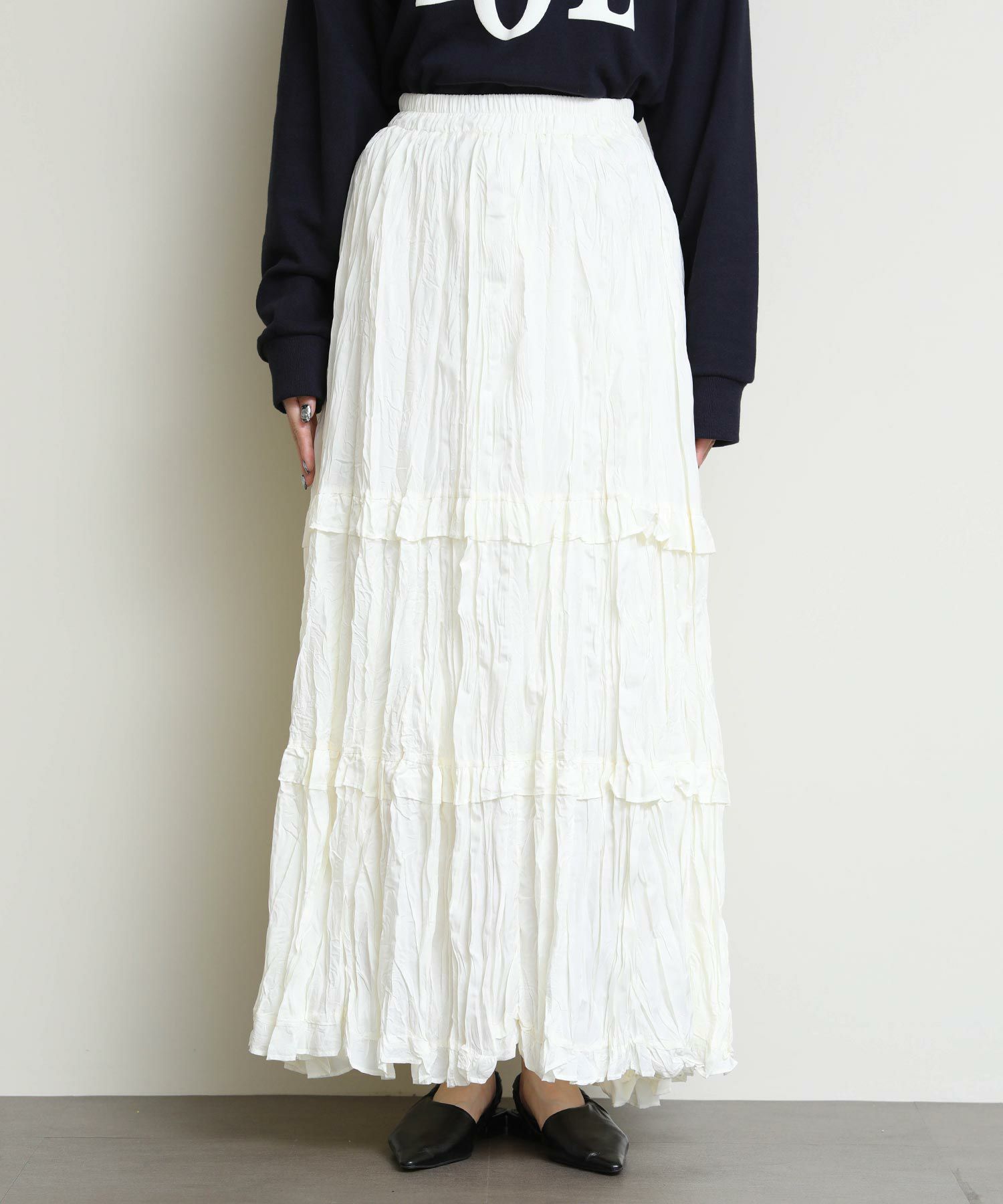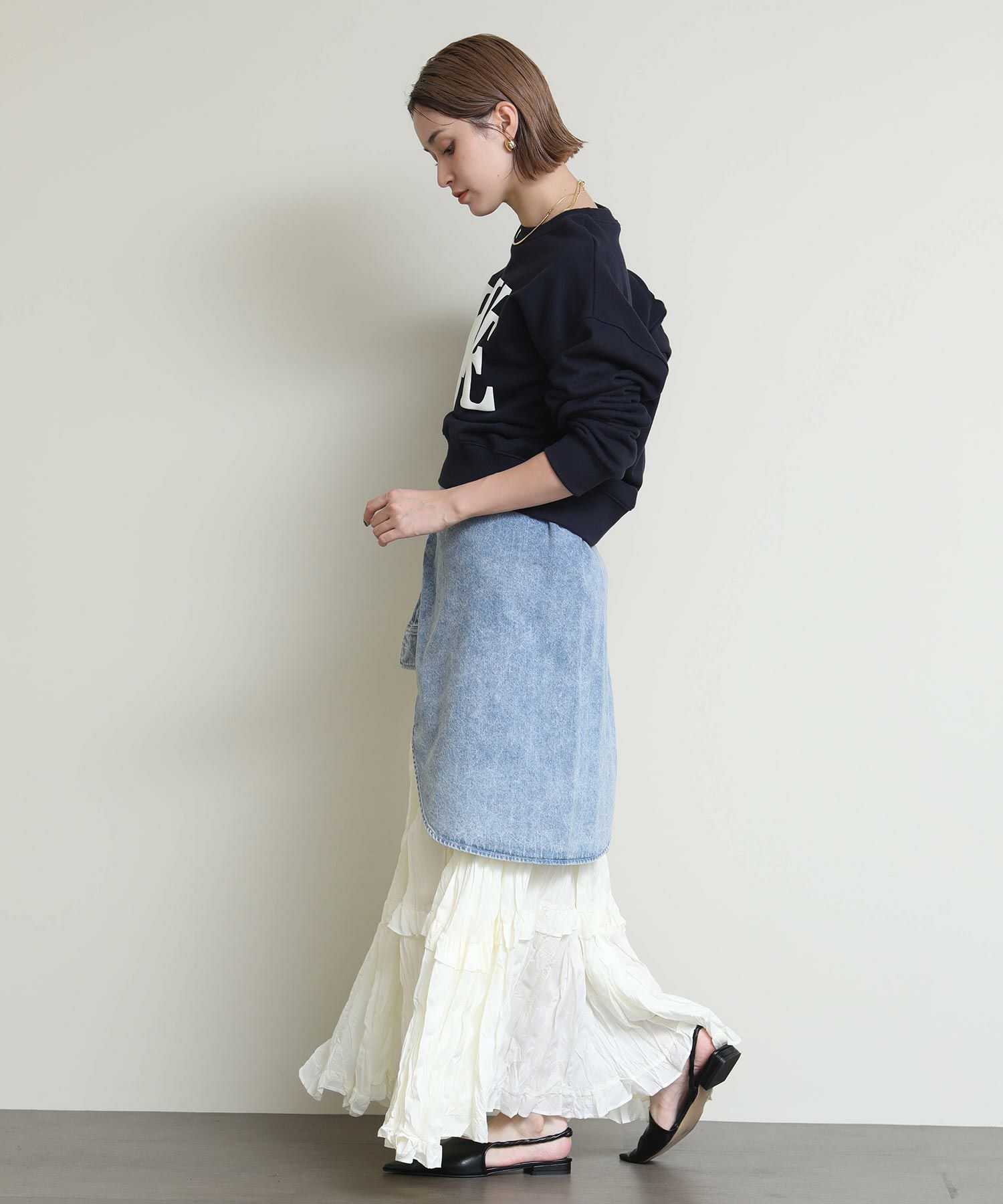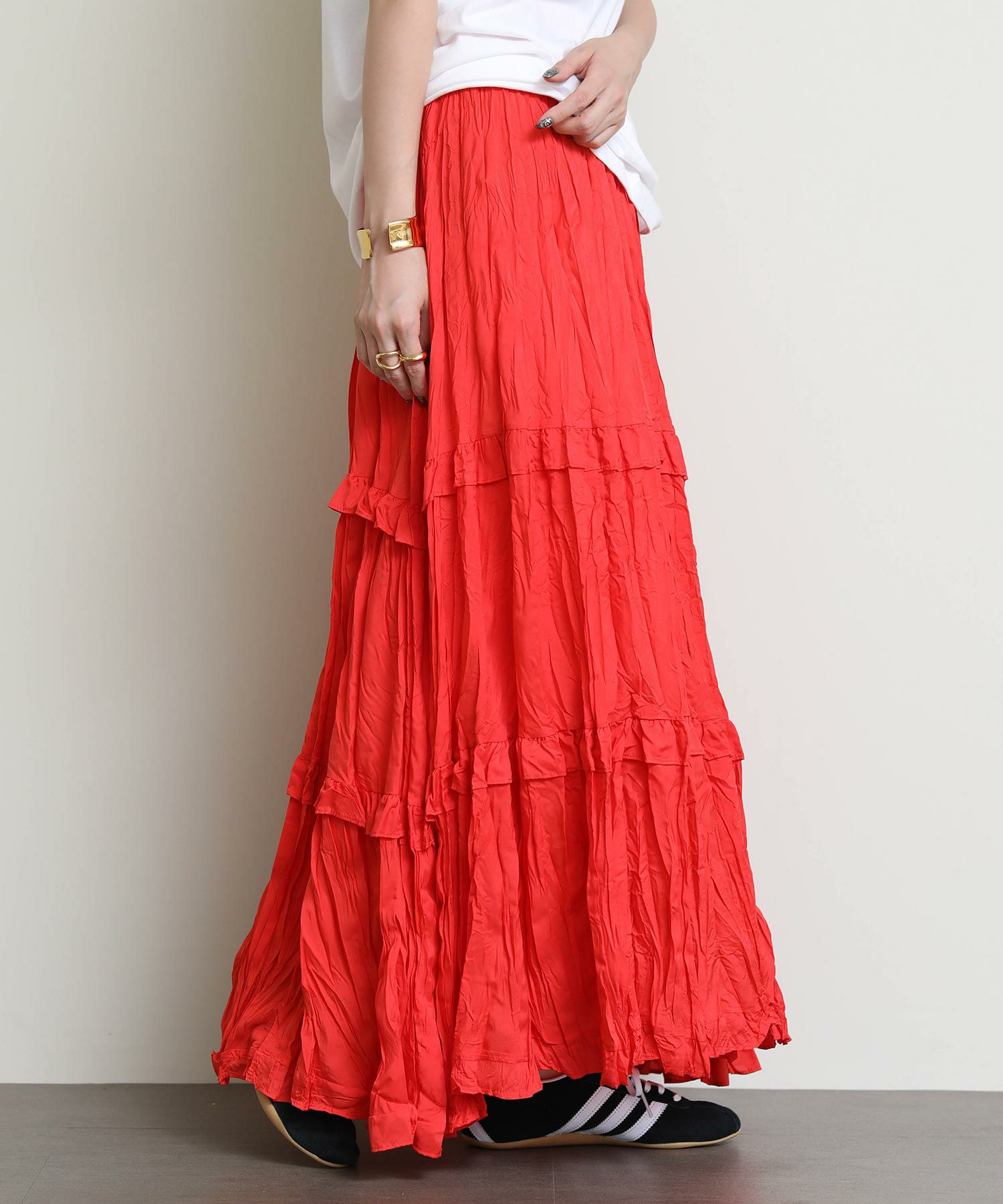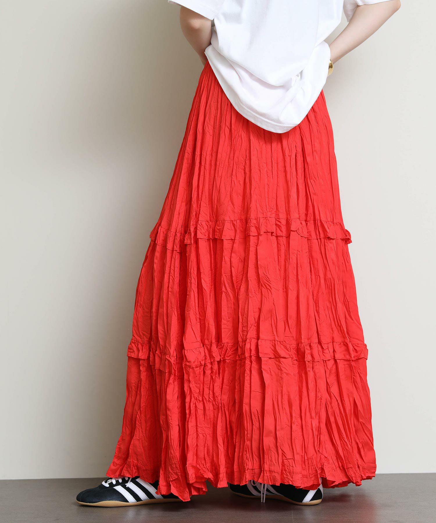 ふわりと軽やかに広がるシルエットが、スタイリングに華やかな印象を与えてくれます。