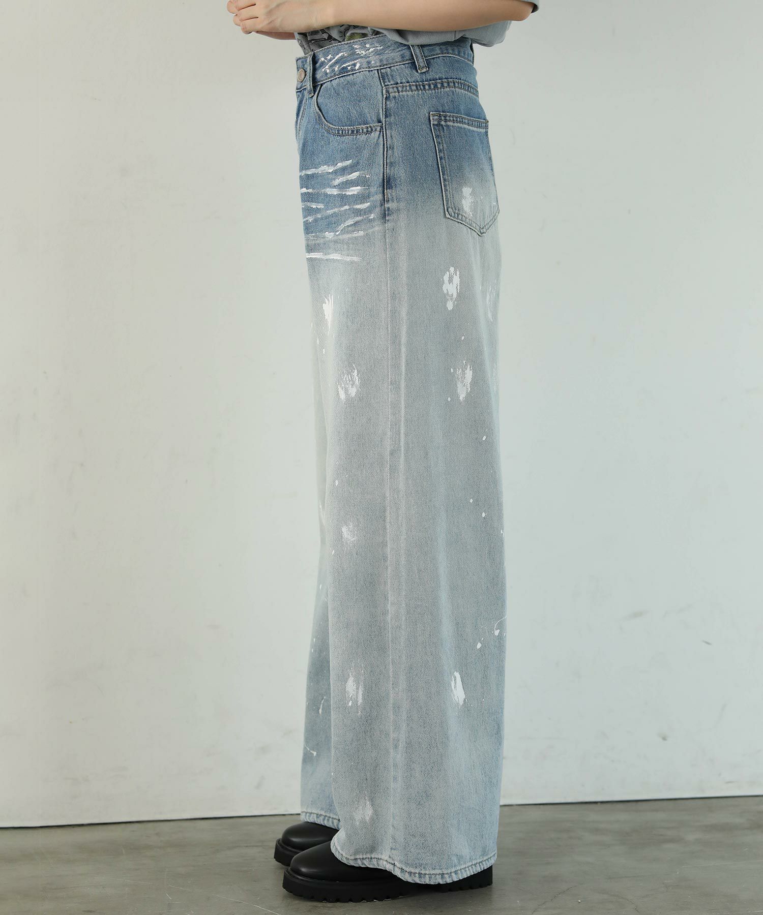 大胆なペイントデザインが目を引くデニムパンツ