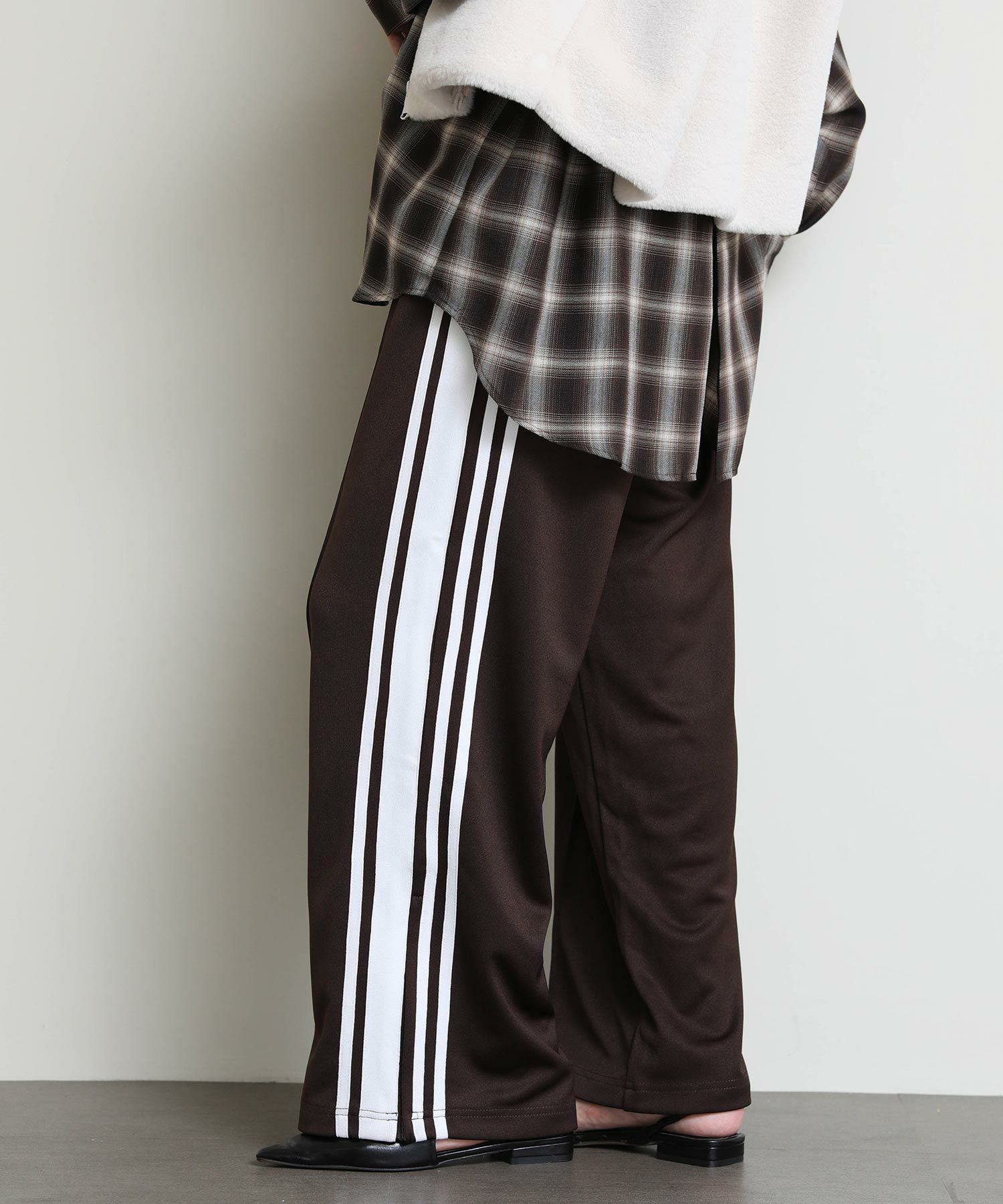 90年代のトラックパンツをインスピレーション源にデザインしたルーズパンツ。