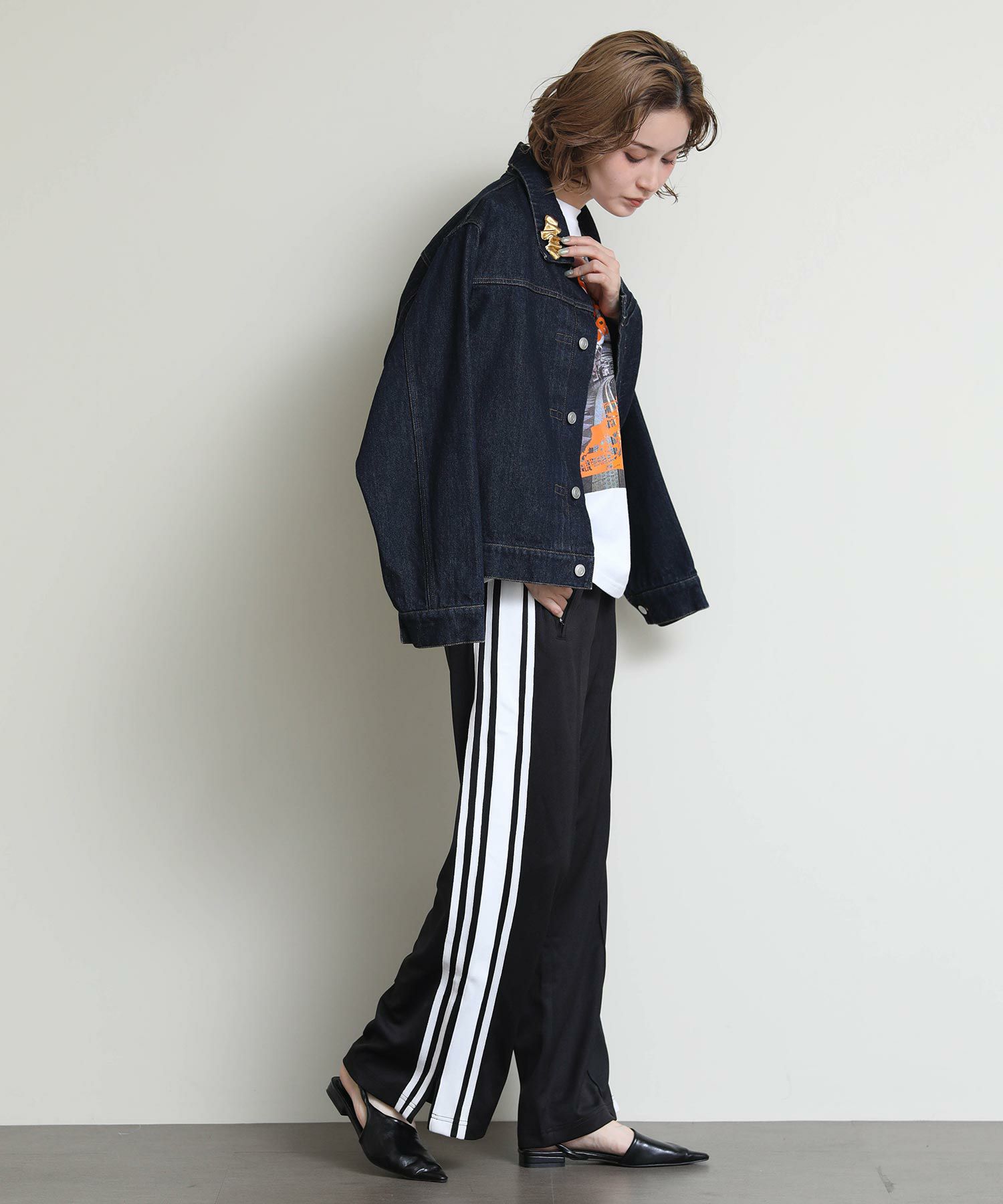 レトロな雰囲気とルーズなシルエットが魅力のアイテムとなっており、ルーズ過ぎず、よりシルエットにこだわった一着で、サイドラインをあえて大きく見せることでスタイルアップ効果も◎