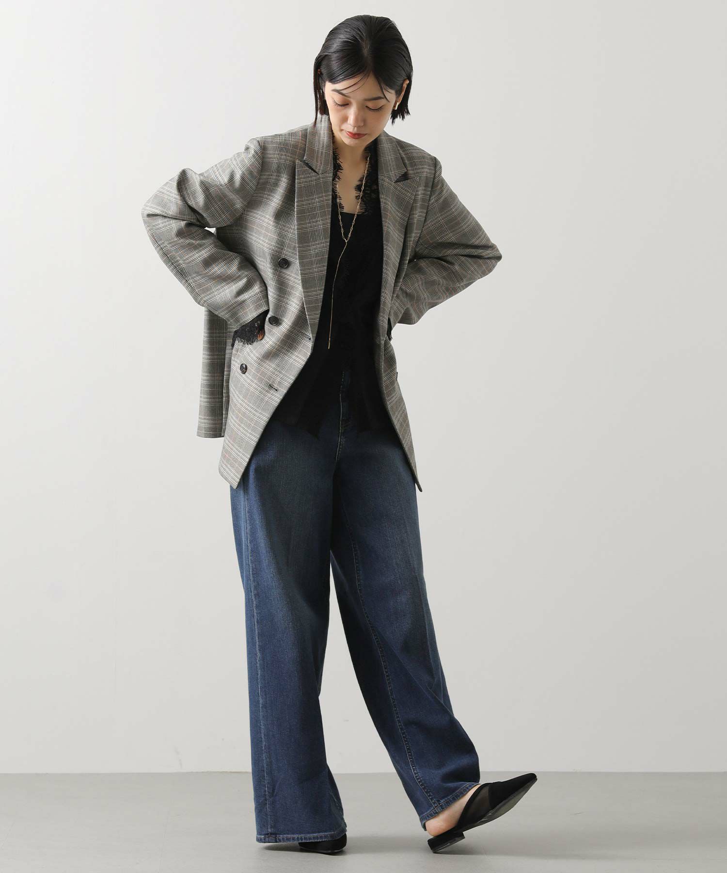 ※着用画像は撮影状況、光の当たり具合で色みが違って見える場合がございます。実際の色みについては、画像一覧の最後に掲載している詳細画像をご参照ください。